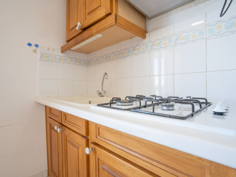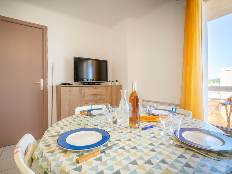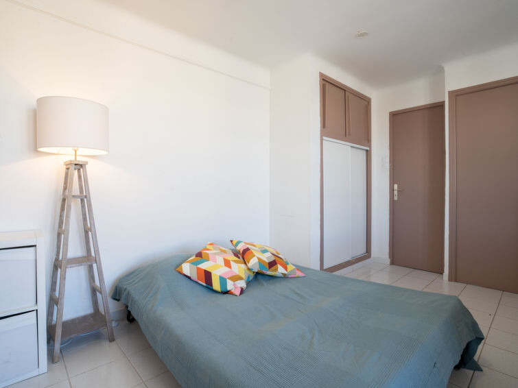 Appartement 2-kamers 30 m2 op de 2e verdieping. Licht, mooi ingericht: woon-/eetkamer met 1 2-pers divanbed (140 cm, lengte 190 cm), TV (Flatscreen TV). Uitgang naar het terras. 1 kamer met 1 2-pers bed (1 x 140 cm, lengte 190 cm). Kookhoek (4-pits kookplaat, broodrooster, waterkoker, magnetron, elektrische koffiemachine). Douche/WC. Elektrische verwarming. Terras 5 m2, overdekt, op het noordwesten gelegen. Terrasmeubelen. Zijdelings uitzicht op zee. Ter beschikking: Internet (Internet (WiFi), extra). Parkeerplaats nr. 10. TV alleen FR. Rookmelders. 83112 000202 TC