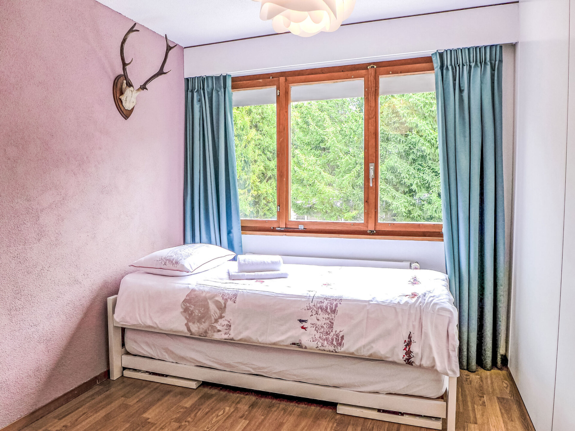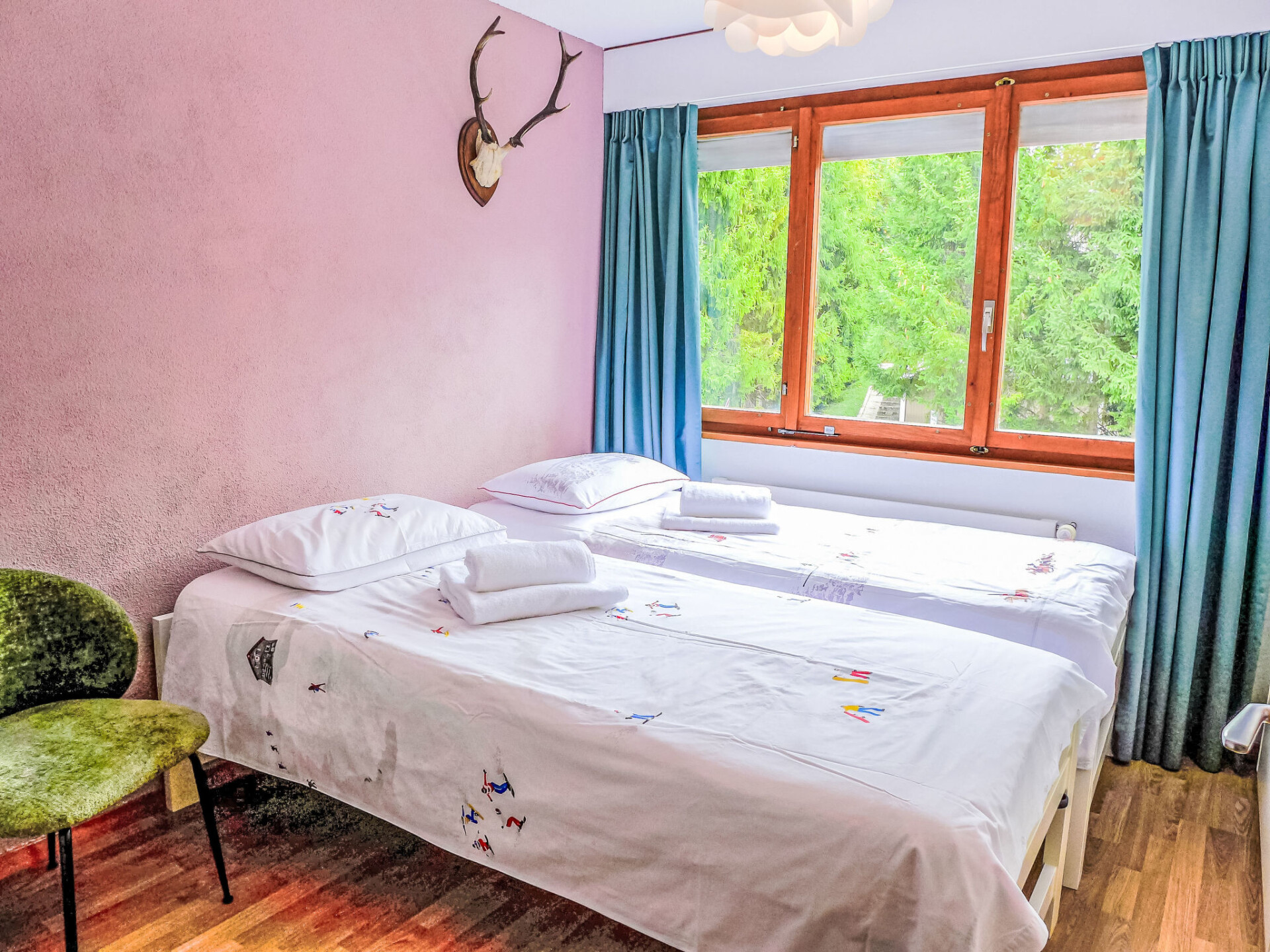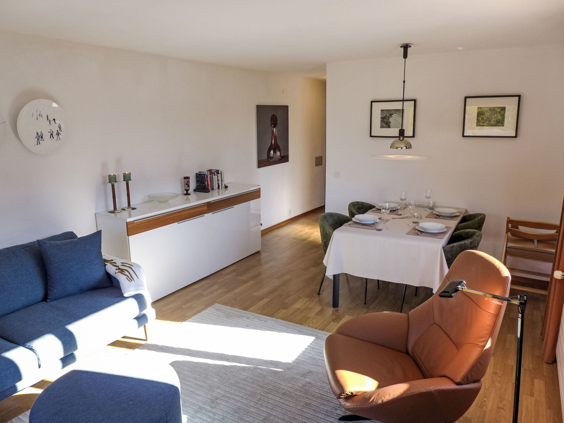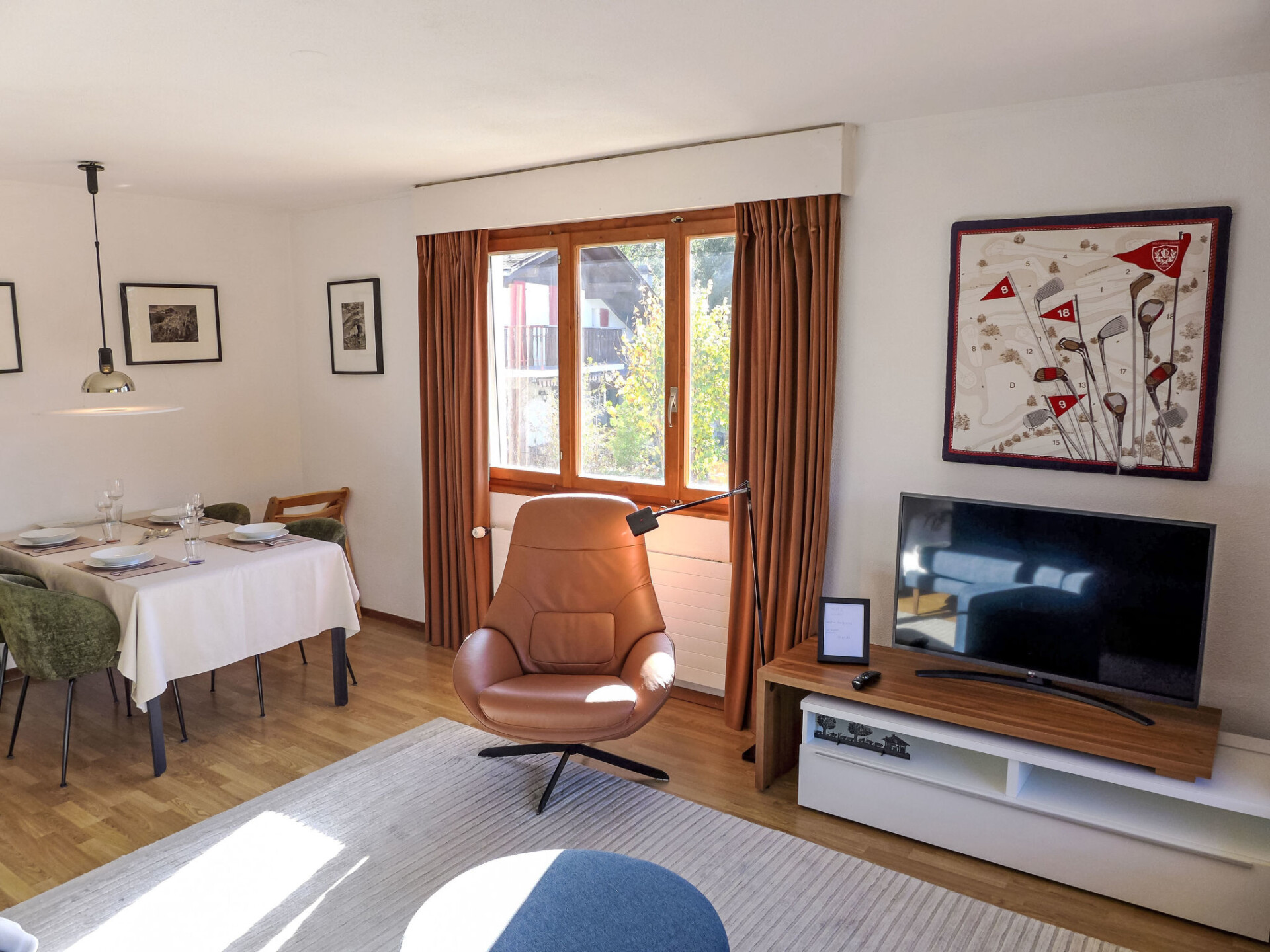"La Verdure Est N°22", appartement 3-kamers 70 m2 op de 2e verdieping, op het zuidwesten gelegen. Licht, gerenoveerd in 2023, zeer mooi en gezellig ingericht: woon-/eetkamer met Kabel-TV en Flatscreen TV. Uitgang naar het balkon. 1 kamer met 1 2-pers bed (180 cm, lengte 200 cm). 1 kamer met 1 uitschuifbaar bed (2 pers. 2 x 90 cm, lengte 200 cm). Keuken (oven, afwasmachine, 4 keramische glas kookplaten, broodrooster, waterkoker, elektrische koffiemachine, pads voor de koffiemachine (Nespresso) extra, raclette oven, fondue Set (kaas)). Aparte WC, bad/douche/WC. Balkon 10 m2, op het zuidwesten gelegen. Balkonmeubilair. Beperkt uitzicht op de bergen en het bos. Ter beschikking: strijkijzer, kinderstoel, haardroger. Internet (WiFi, gratis). Parkeerplaats nr. 22. Niet rokers woning.