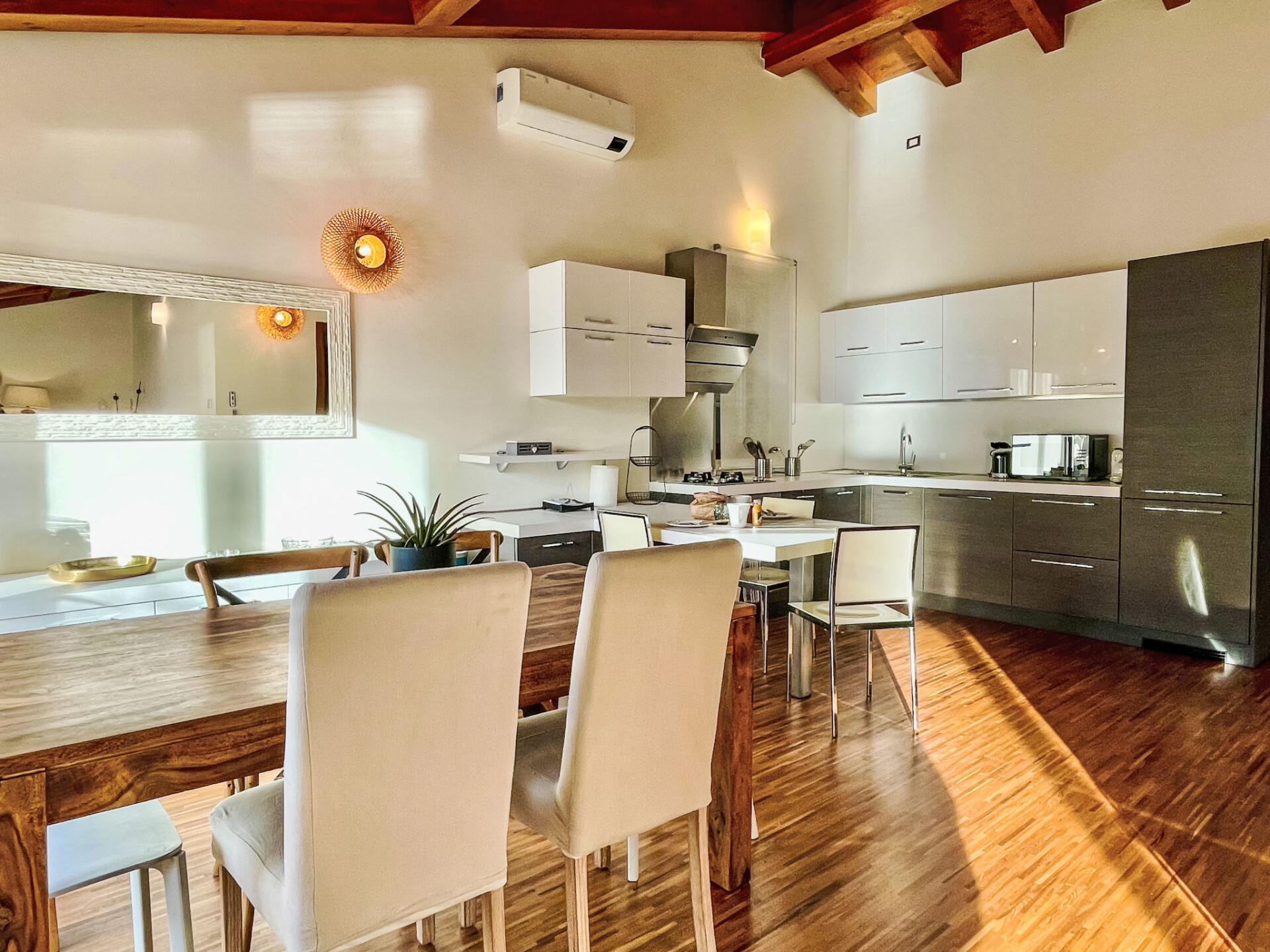 "Lake View Penthouse", dakappartement 3-kamers 120 m2. Comfortabel en smaakvol ingericht: open woon-/slaapkamer met 1 2-pers divanbed, eettafel en TV. Uitgang naar het terras. 1 kamer met 1 2-pers bed en douche/bidet/WC. 1 kleine kamer met 1 2-pers bed. Open keuken (oven, afwasmachine, 4 inductiekookplaten, broodrooster, magnetron, elektrische koffiemachine). Douche/bidet/WC. Gas-verwarming, air-conditioning. Parketvloeren. Terras. Terrasmeubelen. Mooi uitzicht op het meer en de bergen. Ter beschikking: wasmachine, kinderstoel, kinderbed tot 2 jaar, haardroger. Internet (WiFi, gratis). Garage (1 Auto). Niet rokers woning. Rookmelders, brandblusser, geen lift.