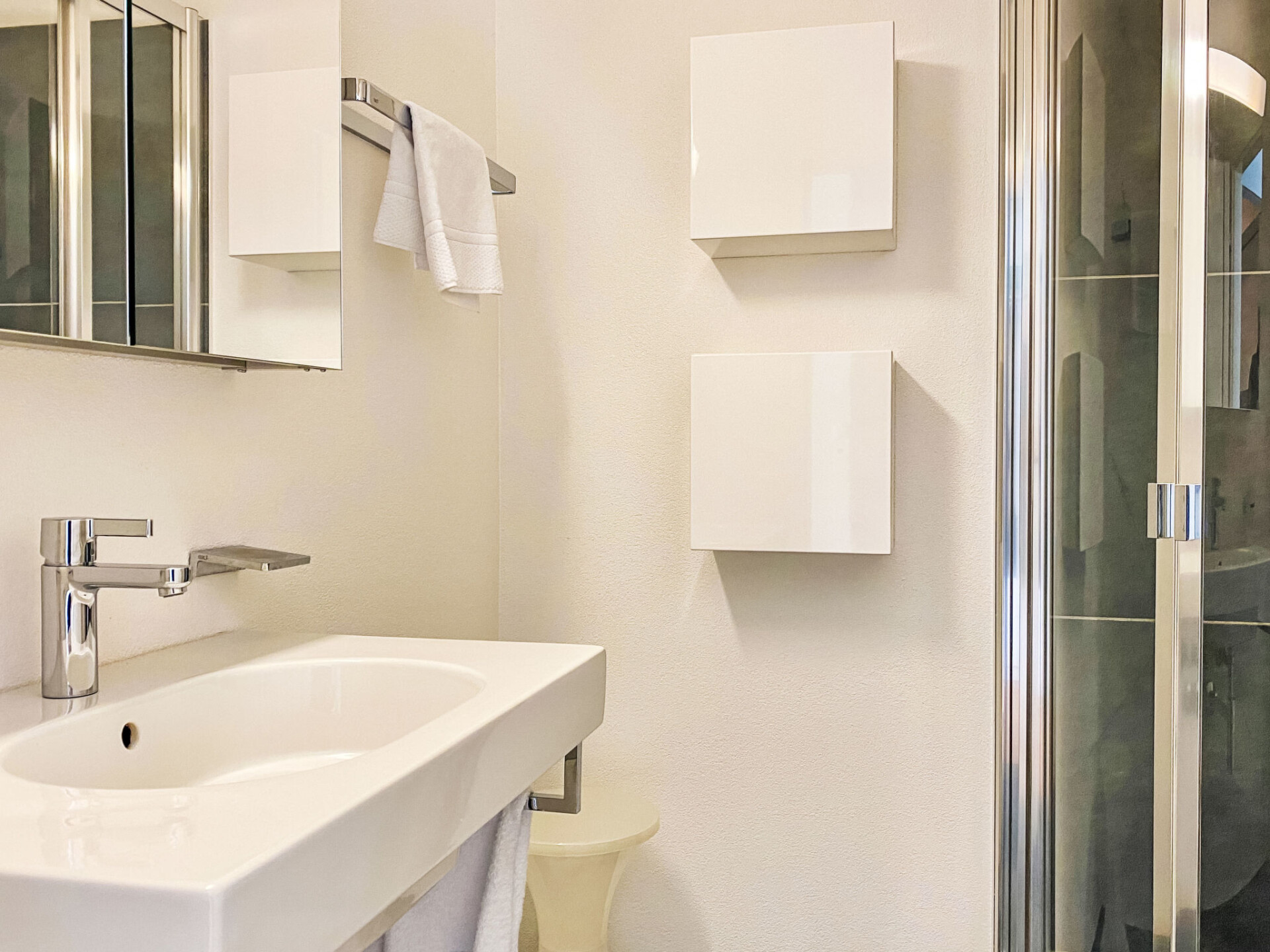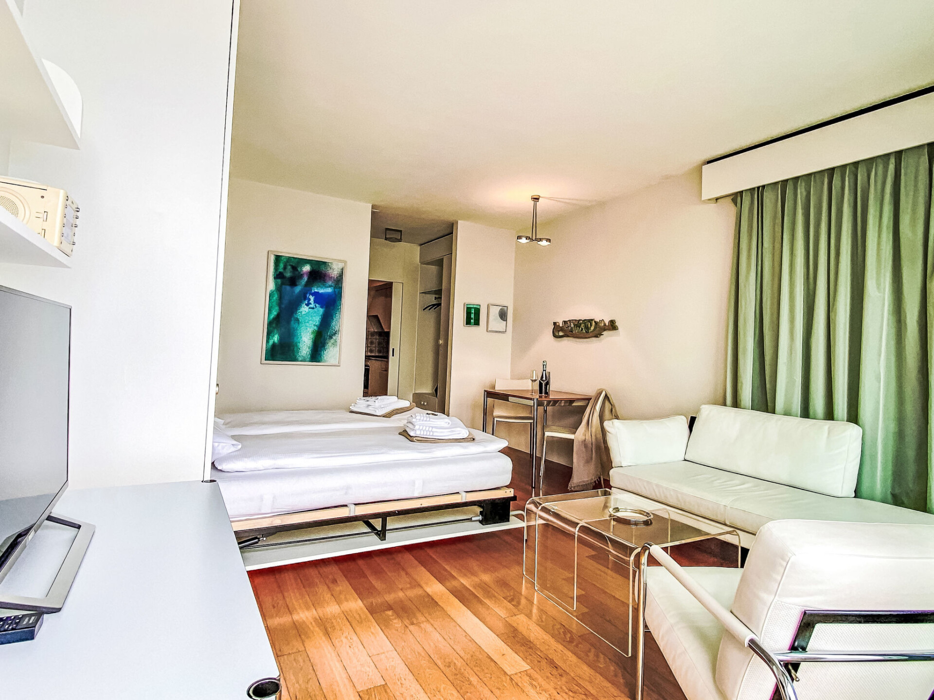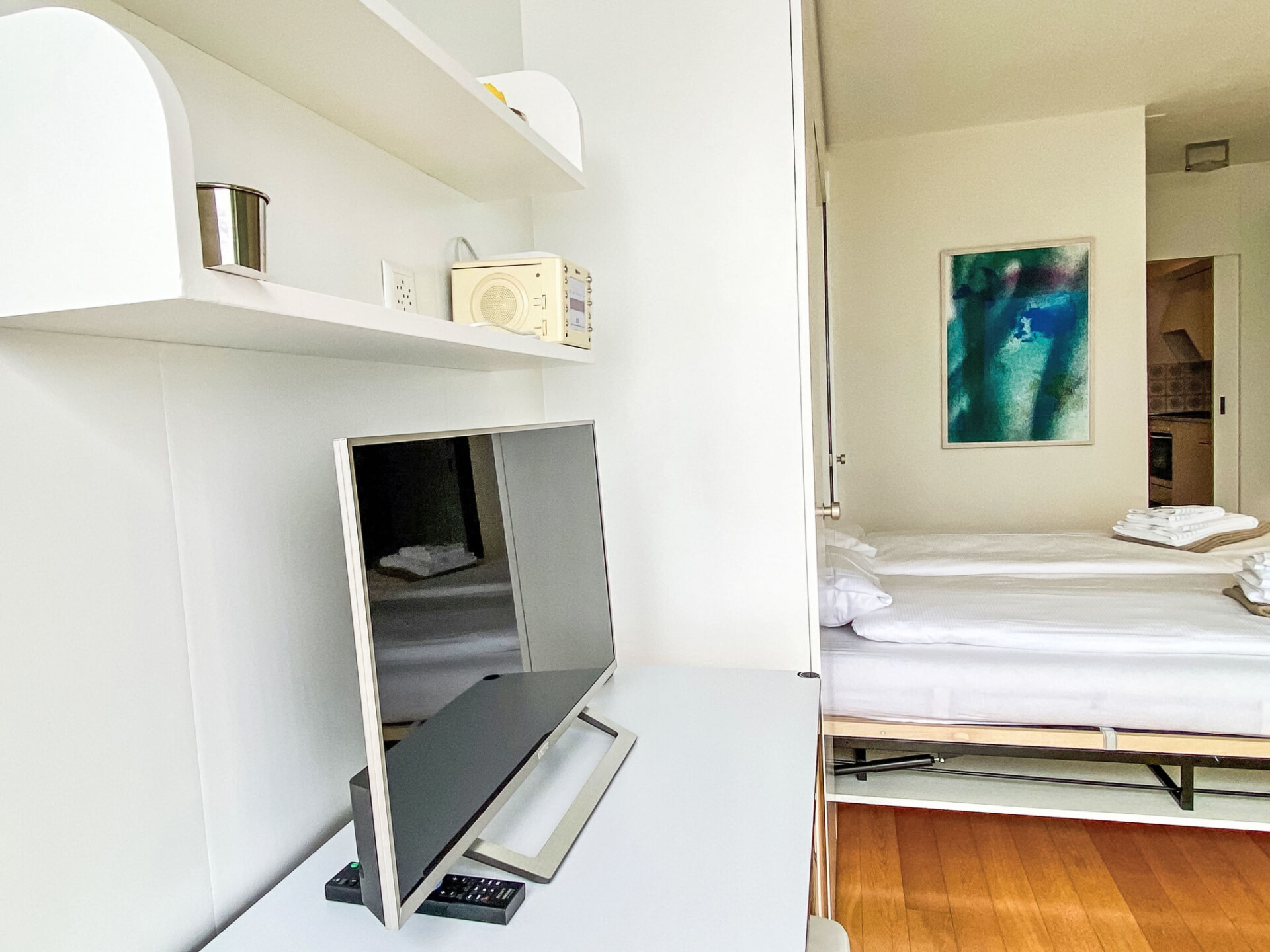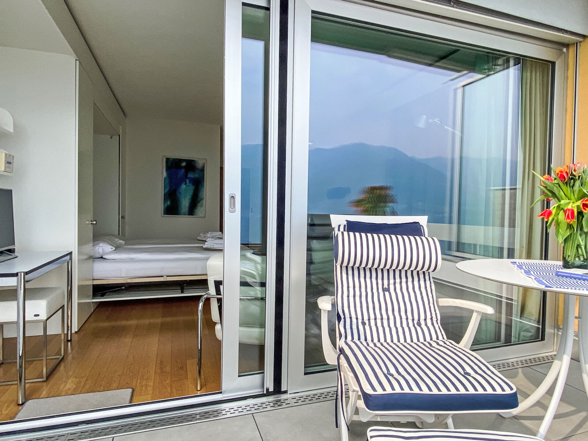 "Lakeview App. 603", appartement 1-kamer 36 m2 op de 6e verdieping, op het zuidoosten gelegen. Licht, comfortabel en smaakvol ingericht: open woon-/eetkamer met panoramavenster met 1 2-pers kastbed (2 x 90 cm, lengte 200 cm), eettafel, Sat-TV, Flatscreen TV, radio en CD-speler. Uitgang naar het terras. Kookhoek in de hal (oven, 4 keramische glas kookplaten, elektrische koffiemachine, pads voor de koffiemachine (Nespresso) extra). Douche/WC. Verwarming. Terras gedeeltelijk overdekt, op het zuiden gelegen en op het oosten gelegen. Terrasmeubelen. Mooi panoramazicht op het meer, de bergen en het landschap. Ter beschikking: haardroger. Parkeerplaats nr. 25. Niet rokers woning. Gemoderniseerde badkamer. NL-00011471