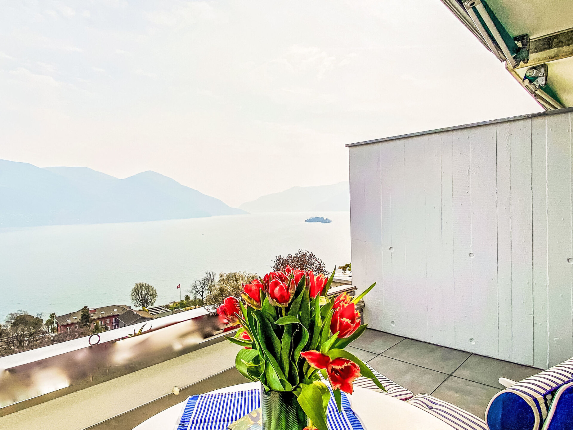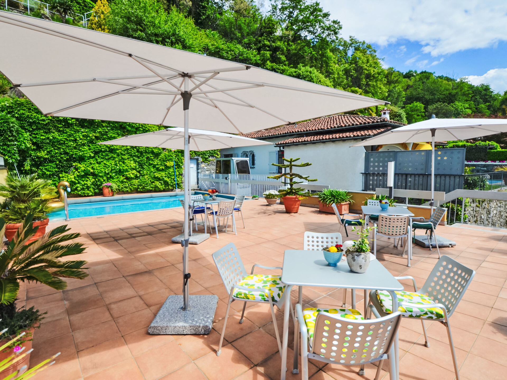 Moscia - Ascona: Mooi residentie "Sollevante". Aan de rand van de plaats, 2.5 km van het centrum van Ascona, rustige, zonnige, verhoogde ligging tegen een helling, op het zuidoosten. Voor medegebruik: openluchtzwembad (7 x 5 m, 190 cm diepte, seizoensgebonden beschikbaarheid: 01.Mei. - 30.Sep.). Buitendouche, terras. In het huis: Internet (WiFi), bergruimte voor fietsen, centrale verwarming. Toegangsweg tot aan het huis. Levensmiddelenwinkel 2.5 km, restaurant 200 m, bushalte "Ascona Moscia Linie 316" 400 m, treinstation "Locarno SBB" 6 km. Golfterrein 4 km, wandelroutes 5 m vanaf het huis. Attracties in de buurt: Madonana del Sasso, Orselina, Locarno-Ascona, Ronco sopra Ascona, Falconeria, Kamelienpark, Piazza Grande. Wandelgebied Cardada, Monte Bré, Monti di Ronco, Vallemaggia - Valle Verzasca. Dieren in de buurt. Terrasgewijs aangelegd, met een prachtig panorama op het Lago Maggiore. Een kabelbaan verbindt de verschillende niveaus. Parkeerplaats in de nabijheid (reserveren bij aankomst). Seniorenkorting 10%.