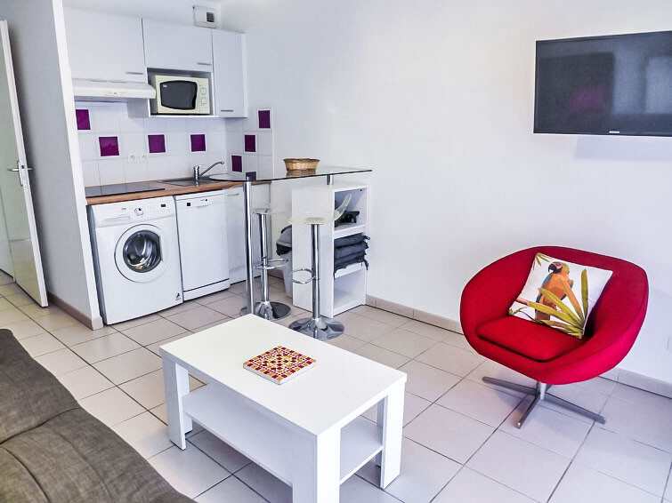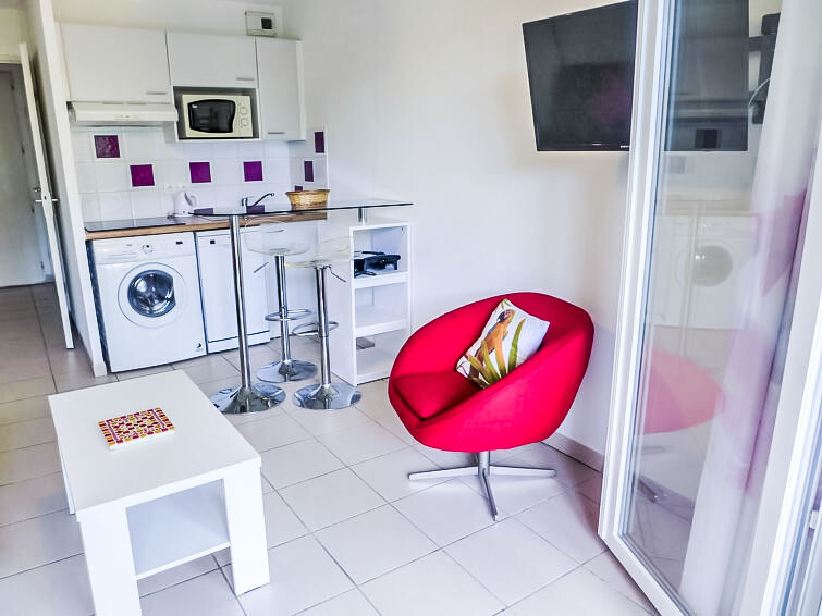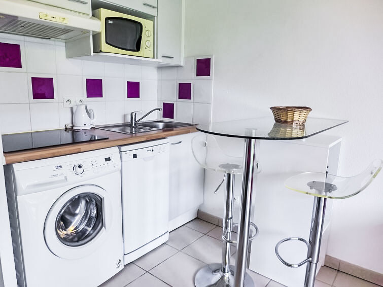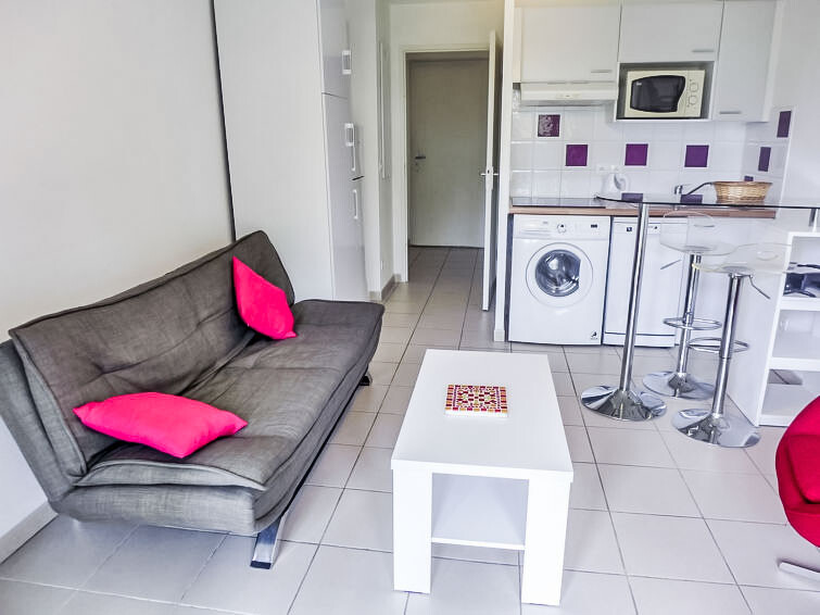 Appartement 2-kamers 30 m2, op de begane grond. Comfortabel ingericht: woonkamer met 1 divanbed (130 cm, lengte 190 cm), TV. Uitgang naar het terras. 1 kamer met 1 2-pers bed (140 cm, lengte 190 cm). Kookhoek (4-pits kookplaat, afwasmachine, magnetron, elektrische koffiemachine). Badkamer, aparte WC. Elektrische verwarming. Terras 10 m2, overdekt. Terrasmeubelen. Ter beschikking: wasmachine. Internet (Internet (WiFi), extra). Parkeerplaats. Geschikt voor families. Niet rokers woning. Rookmelders. 402090000106U
