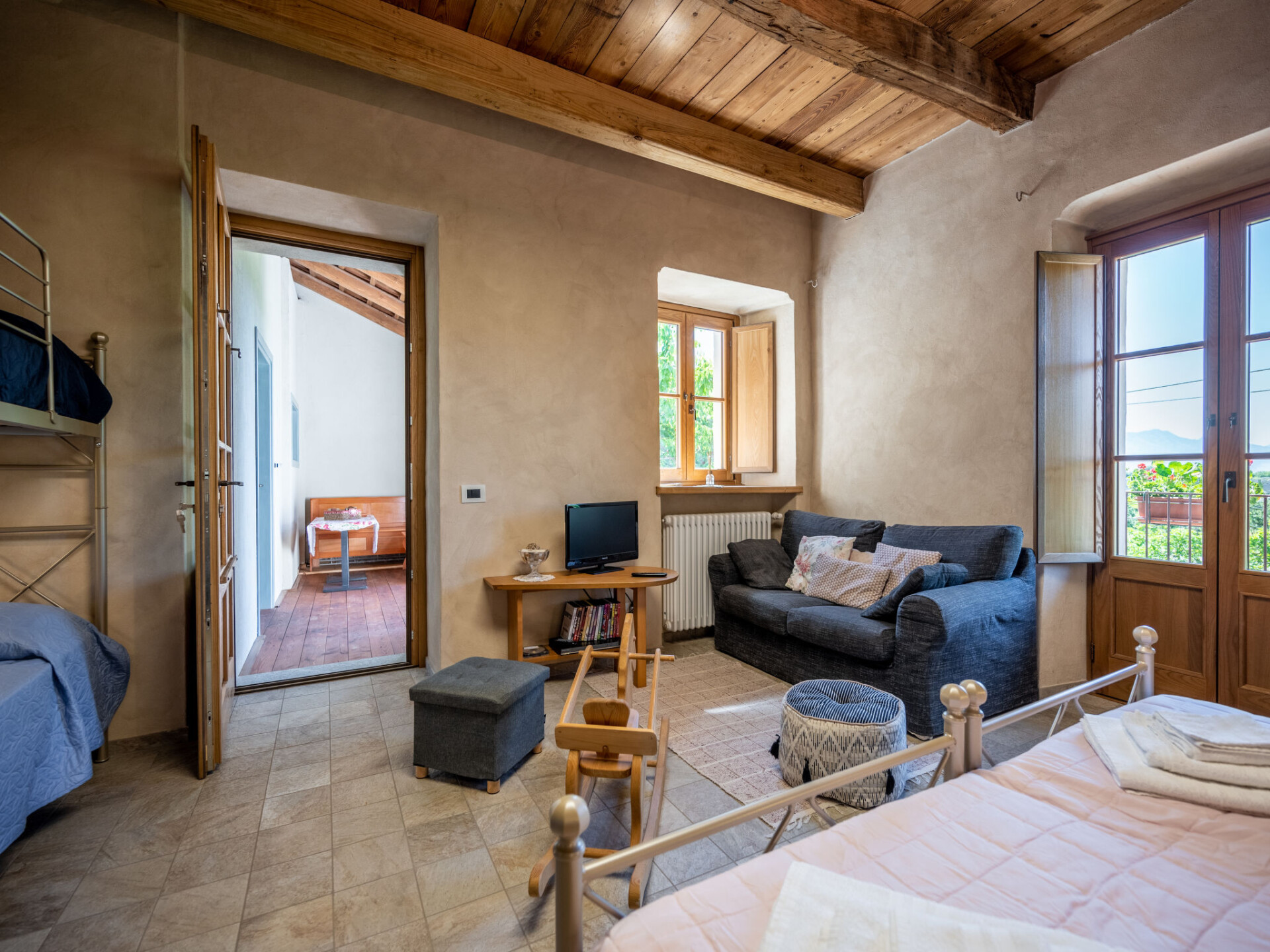 "L'appartamento del Monastero", appartement 2-kamers 66 m2 op de 1e verdieping. Gerenoveerd, comfortabel en modern ingericht: 1 kamer met 1 stapelbedden, 1 2-pers bed, wastafel en TV. Uitgang naar het balkon. 1 kamer met 1 2-pers bed en wastafel. Uitgang naar het balkon, naar de veranda. Keuken (4-pits kookplaat, waterkoker, magnetron) met eettafel. Uitgang naar de veranda. Douche/WC. Balkon 5 m2, terras 7 m2, overdekt. Terrasmeubelen. Ter beschikking: wasmachine, strijkijzer, haardroger. Internet (WiFi, gratis). Maximaal 1 huisdier/hond toegestaan. IT004082B6FL82DVLC