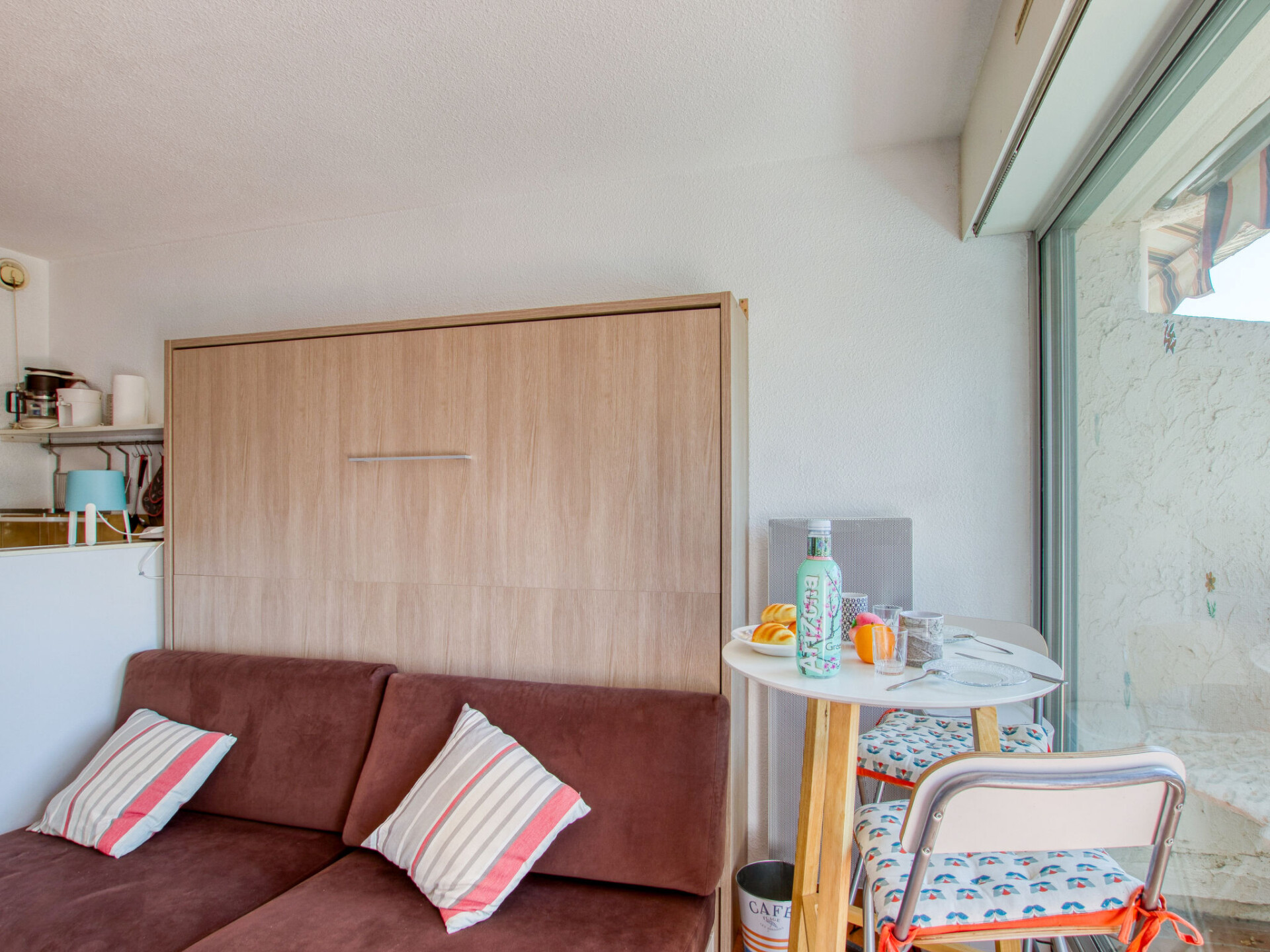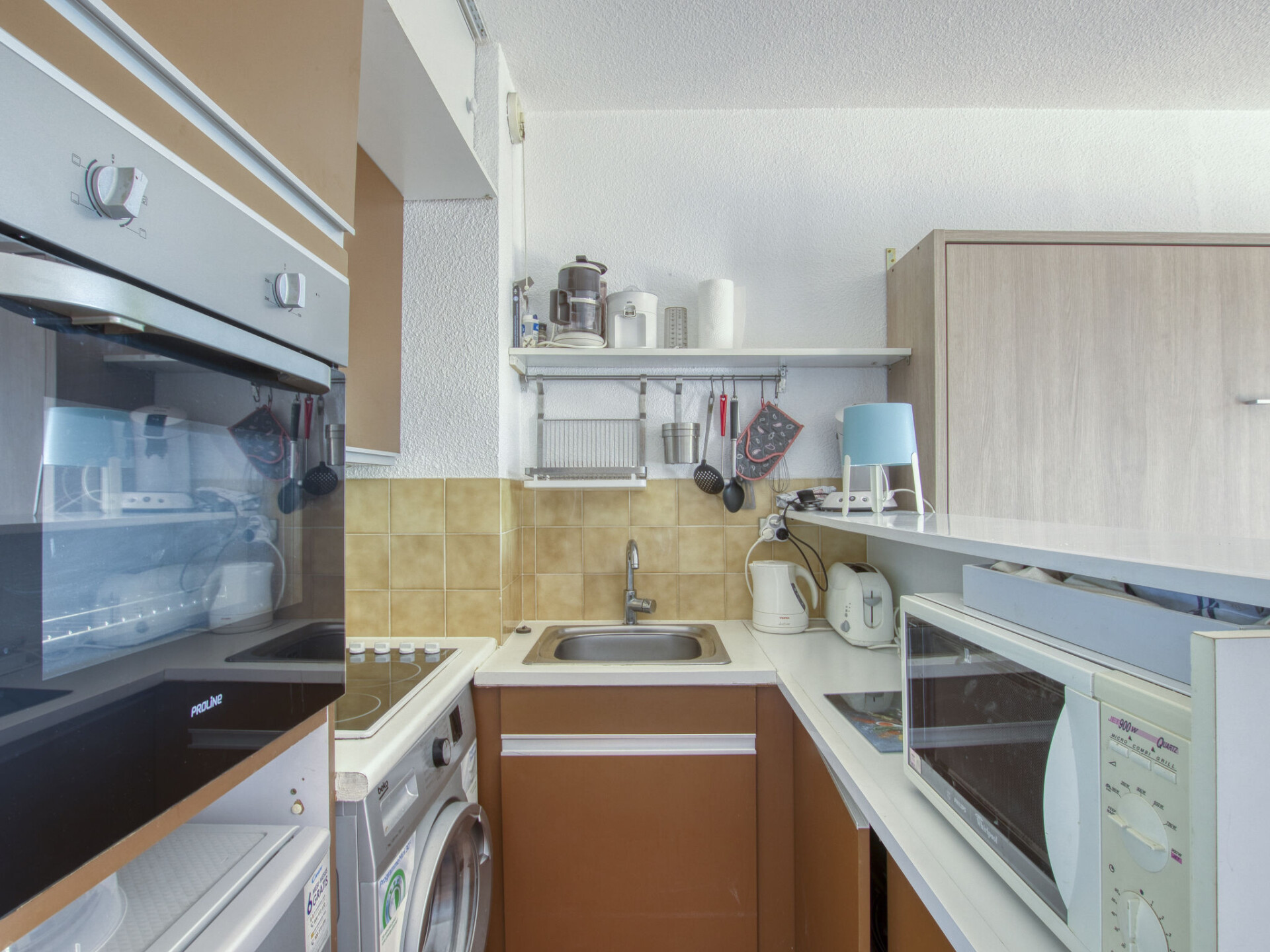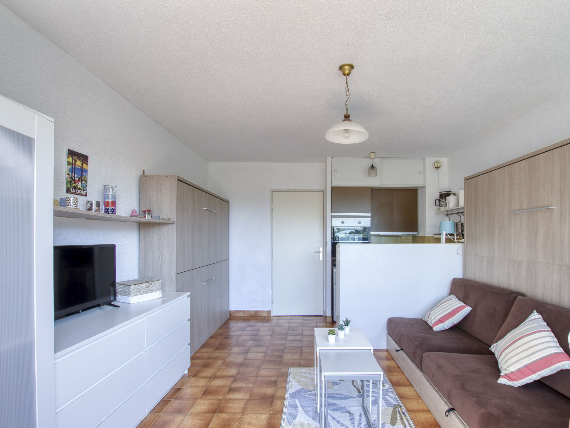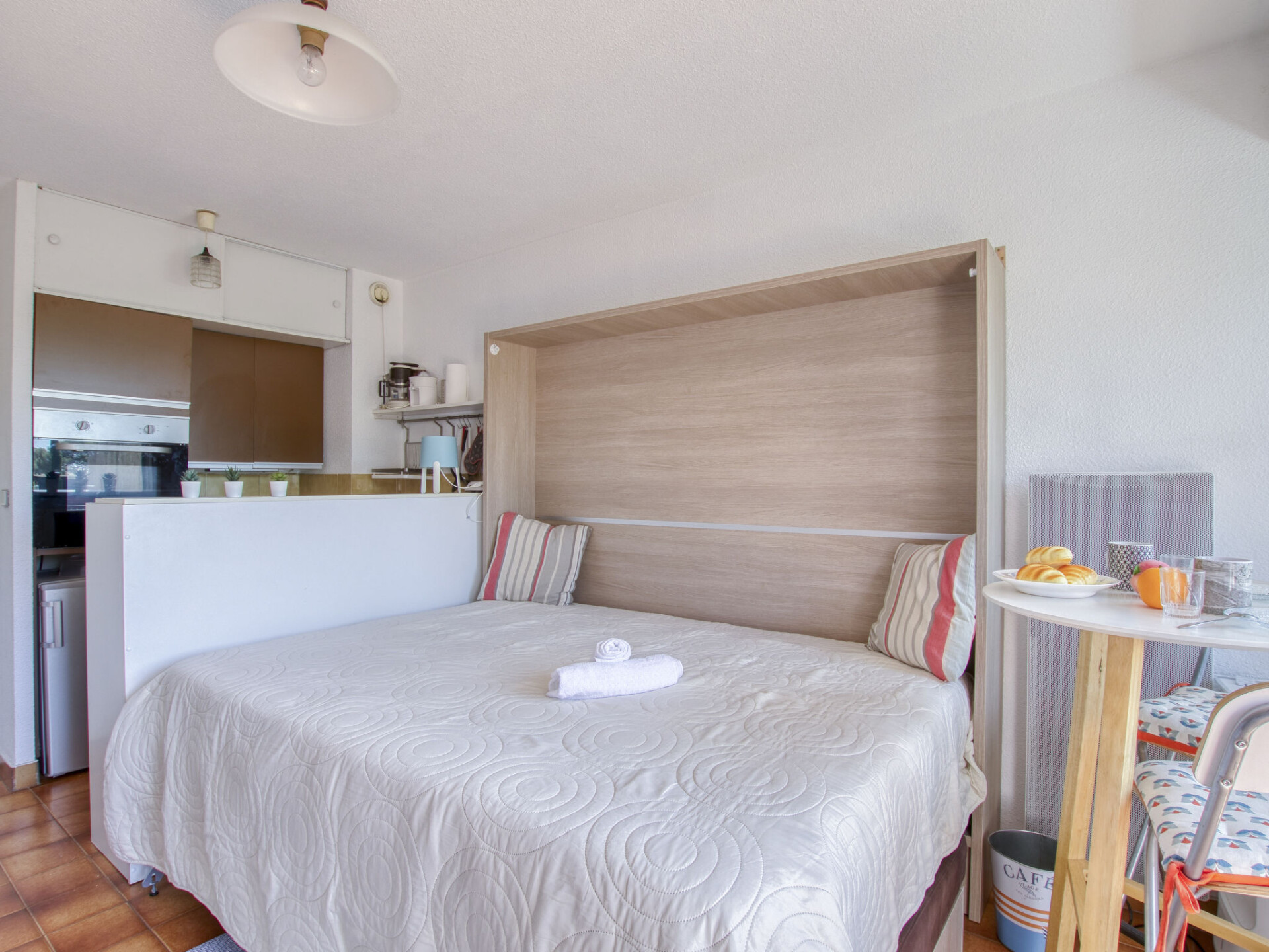 Studio 1-kamer 23 m2 op de 1e verdieping. Comfortabel en mooi ingericht: woon-/eetkamer met 1 bed (80 cm, lengte 190 cm), 1 2-pers kastbed (160 cm, lengte 190 cm), TV (Flatscreen TV). Uitgang naar het terras. Kookhoek (oven, 4 keramische glas kookplaten, broodrooster, waterkoker, magnetron, elektrische koffiemachine, pads voor de koffiemachine (Senséo) extra). Bad/WC. Elektrische verwarming. Terras 9 m2, op het zuiden gelegen. Terrasmeubelen. Ter beschikking: wasmachine. Internet (WiFi, extra). Parkeerplaats nr. 67. 1 klein huisdier/hond toegestaan. TV alleen FR. Rookmelders. Aanbod door een particulier volgens art. 155, IV van CGI. 13028 001699 6B