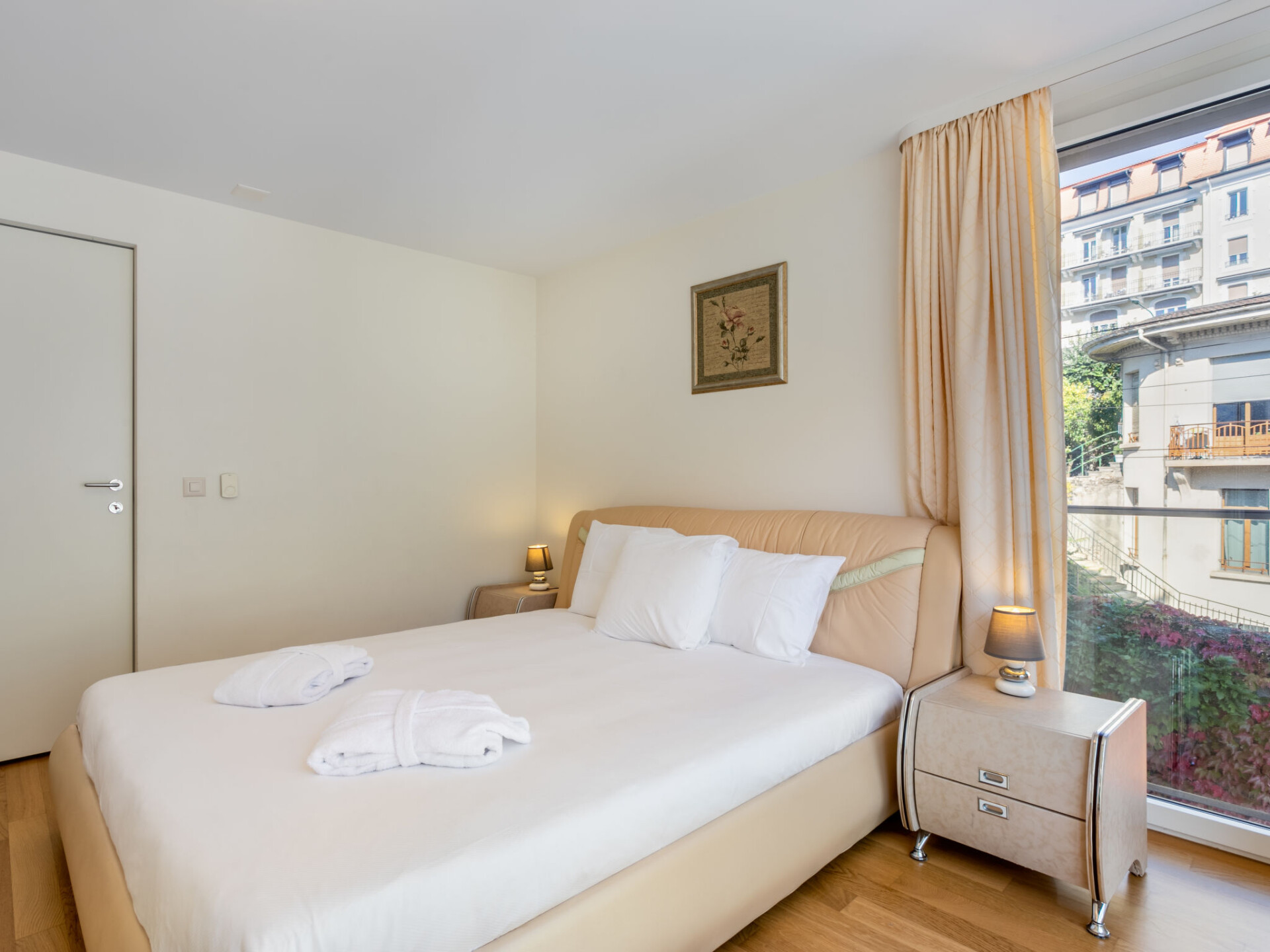 Moderne residentie "Le National Montreux". In de plaats, in het centrum van de stad. Voor medegebruik: openluchtzwembad verwarmd (3 x 10 m, 160 - 160 cm diepte, seizoensgebonden beschikbaarheid: 01.Jan. - 31.Dec. openingstijden zwembad: 07:00-22:00). Douche/WC bij het zwembad. In het huis: sauna, fitnessruimte, ontspanningsruimte hamam, lift, centrale verwarming. Wissel van linnengoed 1 maal per week (extra wissel te betalen). Wissel van handdoeken 1 maal per week (extra wissel te betalen). 1 maal per week schoonmaak op verzoek (extra). Gemeenschappelijke garage. Afmetingen: hoogte 195 cm. Supermarkt 400 m, winkelcentrum 350 m, restaurant 300 m, café 350 m, bushalte "Bon Port" 130 m, treinstation "Montreux", veerboot 700 m, openluchtzwembad 5 km, meer Lac Léman 50 m. Golfterrein (18 holes) 15 km, tennis 950 m, midgetgolf 1.1 km. Attracties in de buurt: Château de Chillon 2.4 km, Montreux Jazz Festival 1.4 km, Musée Olympique Lausanne 27 km, Swissvapeur Parc / Aquaparc Bouveret 16 km, Chaplin's World Vevey 9.3 km. Bekende skigebieden kunnen gemakkelijk worden bereikt: Leysin, Villars, Portes-du-Soleil. Bekende meren kunnen gemakkelijk worden bereikt: Lac Léman. Wandelgebied Rochers de Naye. Bewaakt vakantiecomplex. Gesloten residentie met een elektrische deur. Hoofdstraat in de buurt. De omgeving is gevoelig voor geluidsoverlast. Gelieve geen lawaai te maken en de rust te bewaren.