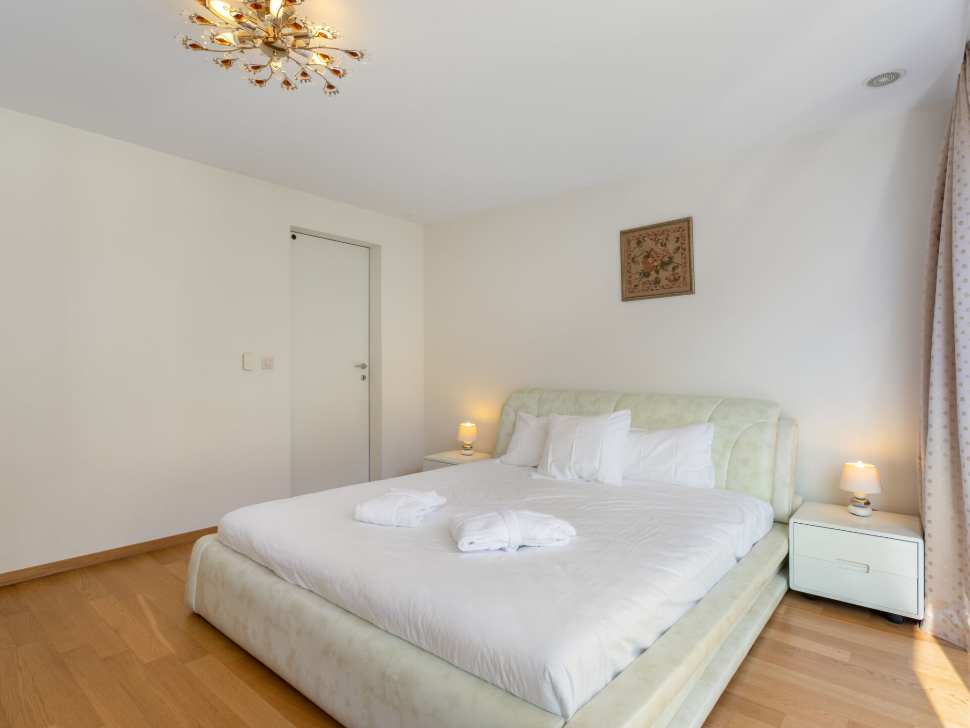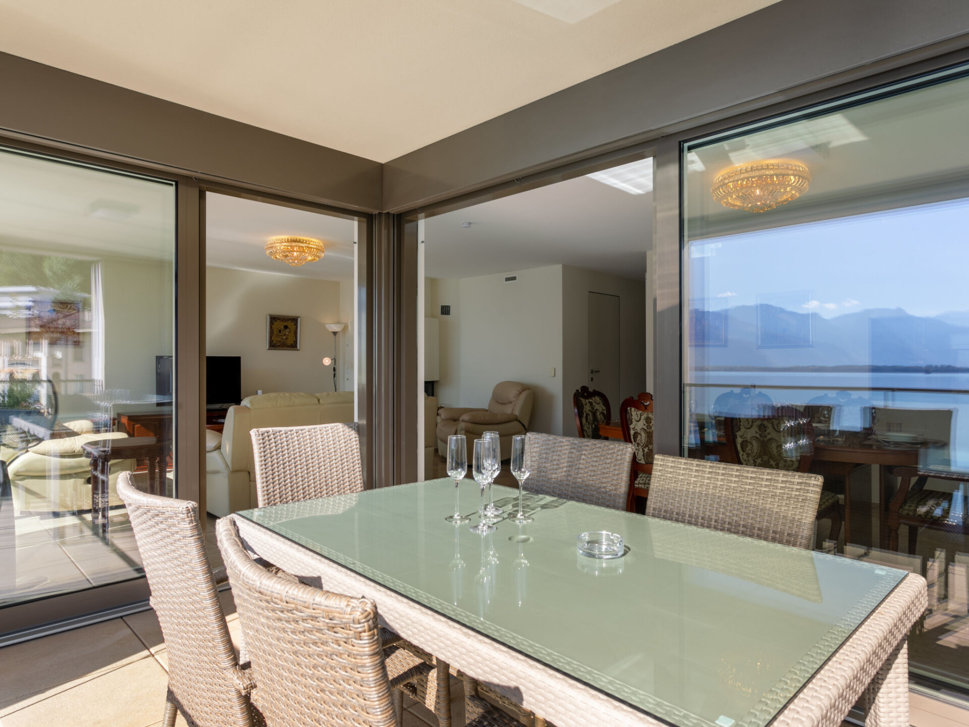 "Le Belvédère D1.4", appartement 4-kamers 120 m2 op de 1e verdieping. Comfortabel en smaakvol ingericht: woon-/eetkamer met open haard (alleen decoratie), Kabel-TV, DVD, gasverwarming, ventilator en elektrische rolluiken. Uitgang naar het balkon. 2 kamers, elke kamer heeft 1 2-pers bed (180 cm, lengte 200 cm), ventilator. 1 kamer met 1 2-pers bed (140 cm, lengte 200 cm), ventilator. Keuken (oven, afwasmachine, 4 keramische glas kookplaten, broodrooster, waterkoker, magnetron, elektrische koffiemachine, pads voor de koffiemachine (Nespresso) extra). Bad/WC, douche/WC, aparte WC. Balkon 14 m2. Balkonmeubilair. Mooi uitzicht op het meer, de bergen, het landschap en de plaats. Ter beschikking: wasmachine, droger, strijkijzer, haardroger. Internet (WiFi, gratis). Garage nr. 146 + 147 op het terrein (2 Auto's). Niet rokers woning.