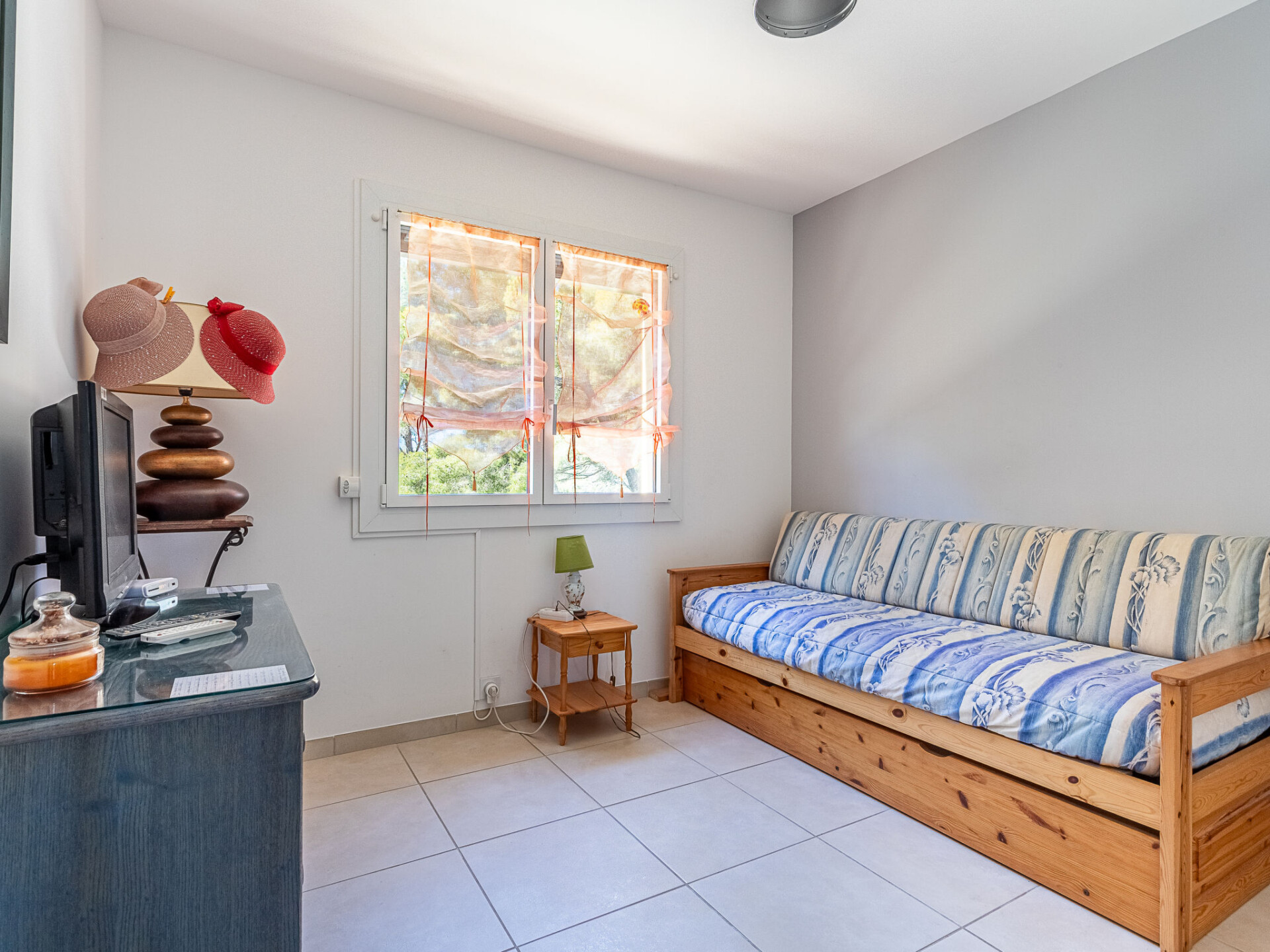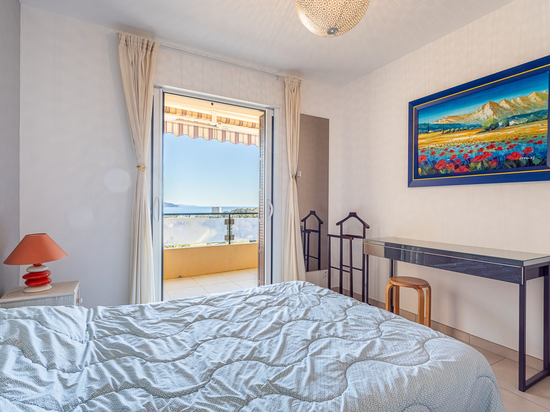 Appartement 3-kamers 67 m2 op de 1e verdieping, op het oosten gelegen. Mooi ingericht: woon-/eetkamer met TV (Flatscreen TV). Uitgang naar het terras. 1 kamer met 1 2-pers bed (160 cm, lengte 200 cm), air-conditioning. Uitgang naar het terras. 1 kamer met 2 uitschuifbare bedden (1 pers. 2 x 90 cm, lengte 190 cm), TV (Flatscreen TV), air-conditioning. Open keuken (oven, afwasmachine, 4 keramische glas kookplaten, broodrooster, waterkoker, magnetron, elektrische koffiemachine). Douche, aparte WC. Terras 10 m2, op het oosten gelegen. Terrasmeubelen. Uitzicht op zee. Ter beschikking: wasmachine, strijkijzer, haardroger. Internet (WiFi, extra). Parkeerplaats. Niet rokers woning. TV alleen FR. Rookmelders. Aanbod door een particulier volgens art. 155, IV van CGI. 83070001102KX