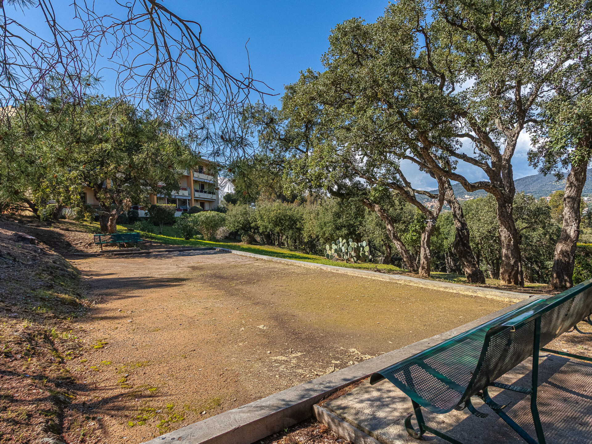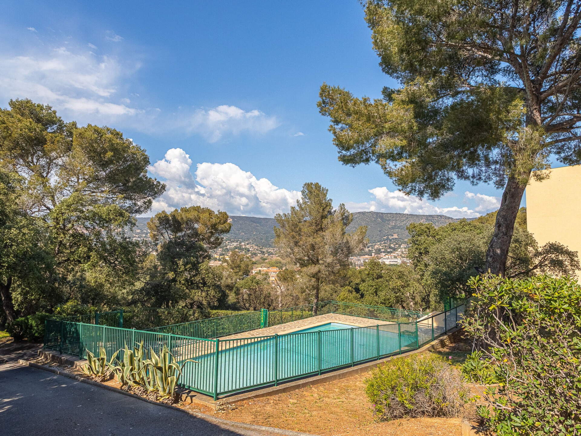 Residentie "Le Bois du Coteau", van 2 verdiepingen. In de wijk La Faviére, in de plaats Bormes Les Mimosas, 1 km van zee, 1 km van het strand. Voor medegebruik: openluchtzwembad hoekig omheind (15 x 7 m, 110 - 190 cm diepte, seizoensgebonden beschikbaarheid: 02.Mei. - 31.Okt.). Jeu de boules. In het complex: bergruimte voor fietsen. Trappenweg (6 treden) naar het huis. Winkel, levensmiddelenwinkel, supermarkt, restaurant, bar, bakkerij, café 900 m, bushalte "Saint pons" 1.8 km, zandstrand "La Favière" 1 km. Jachthaven 1.5 km, golfterrein (18 holes) 15 km, zeilschool 3 km, tennis 3 km, midgetgolf 3.5 km. Gesloten residentie met een elektrische deur. De sleuteloverdracht vindt plaats bij het agentschap Interhome in Le Lavandou.