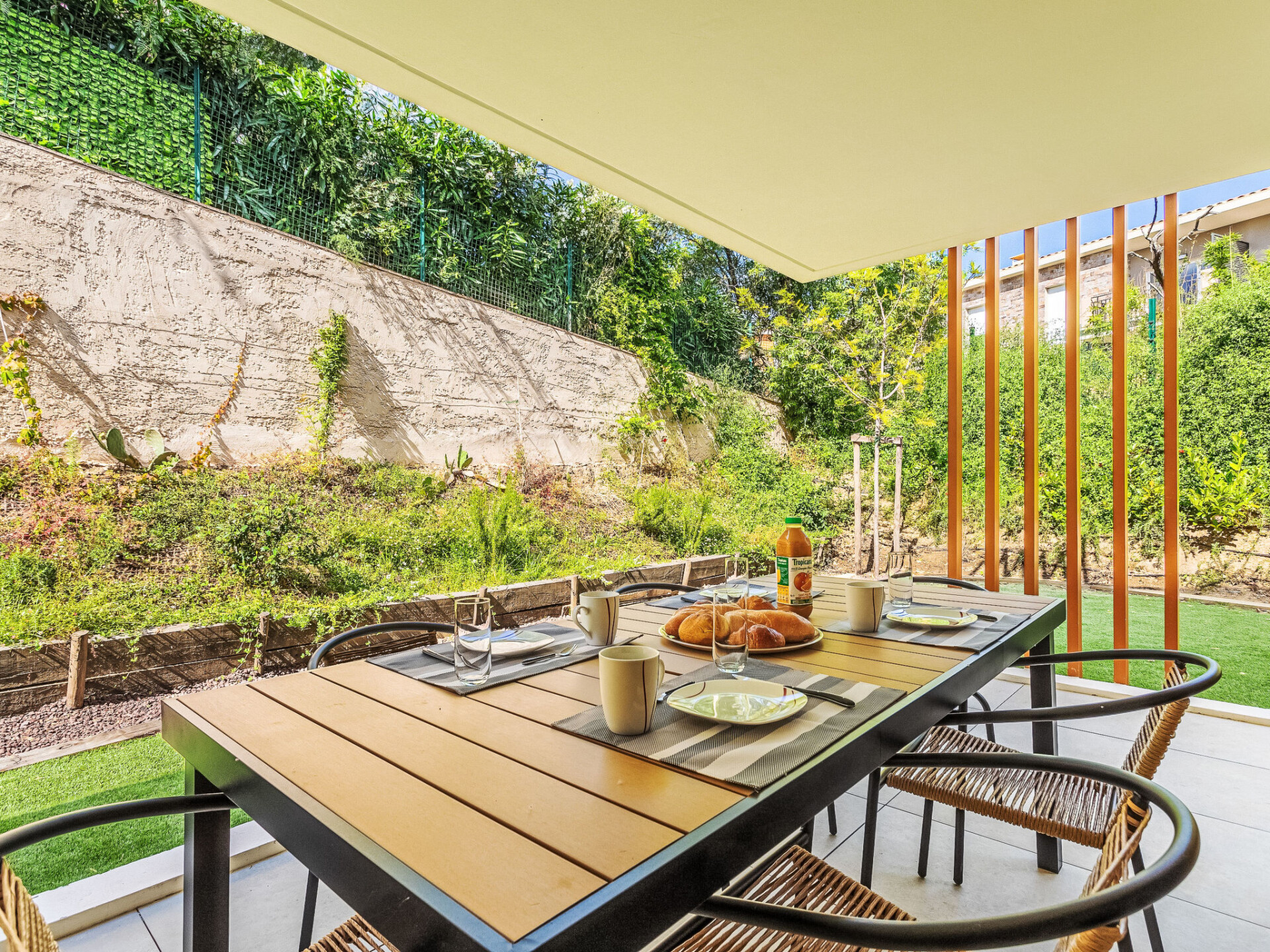 "Le Clos des Restanques 1", appartement 3-kamers 72 m2, op verhoogde begane grond. Ruim, gezellig ingericht: woon-/eetkamer met TV (Flatscreen TV). Uitgang naar het terras. 2 kamers, elke kamer heeft 1 2-pers bed (160 cm, lengte 200 cm), TV. Open keuken (afwasmachine, 3 inductiekookplaten, broodrooster, waterkoker, diepvriezer, elektrische koffiemachine, pads voor de koffiemachine (Senseo) extra, combimagnetron). Douche, aparte WC, dubbele wastafels. Air-conditioning, heteluchtverwarming. Terras 15 m2, overdekt, op het noordwesten gelegen, tuin 149 m2. Terrasmeubelen, elektrische barbecue. Ter beschikking: wasmachine, haardroger. Internet (WiFi, gratis). Garage nr. 23, hoogte 190 cm, breedte 226 cm. Niet rokers woning. Maximaal 1 klein huisdier/hond toegestaan. Rookmelders. Aanbod door een particulier volgens art. 155, IV van CGI. FR8451.195.1