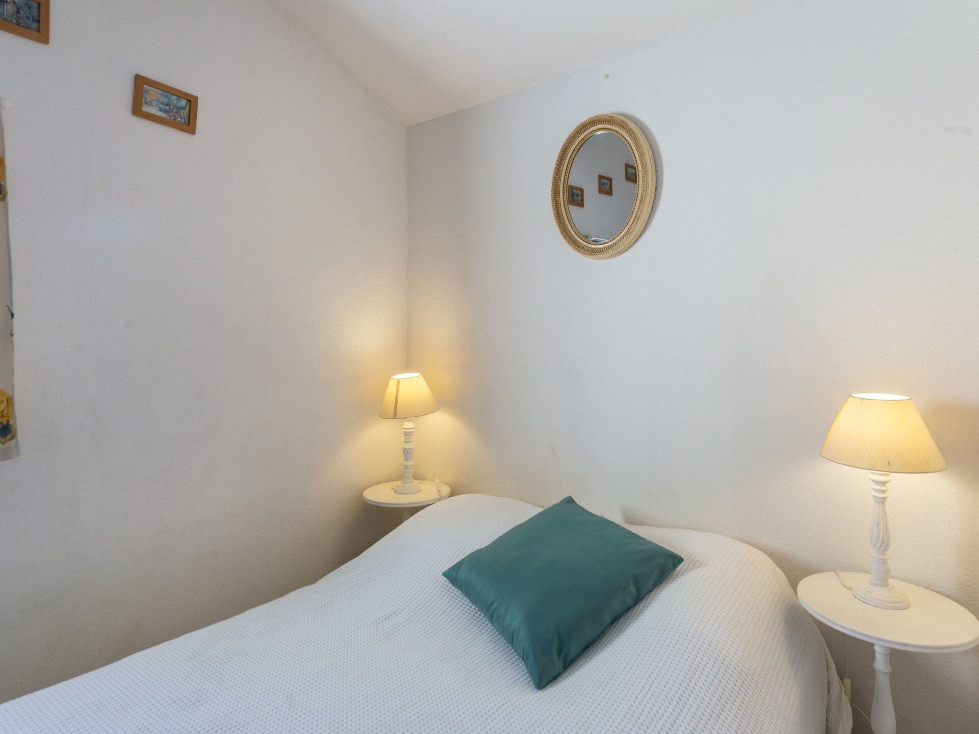 Huis in een rij 3-kamers 33 m2. Eenvoudig en mooi ingericht: woon-/eetkamer met TV. Uitgang naar het terras. 1 kamer met 2 bedden (80 cm, lengte 190 cm). Kookhoek (2-pits kookplaat, oven, broodrooster, waterkoker, magnetron, elektrische koffiemachine). Bad/WC. Elektrische verwarming. Bovenverdieping: (steile trap), 1 kleine kamer met 1 2-pers bed (140 cm, lengte 190 cm). Terras 40 m2, op het zuidwesten gelegen. Terrasmeubelen. Ter beschikking: wasmachine. Internet (Internet (WiFi), extra). Woning aan de straatzijde. Geen parkeerplaats. Maximaal 1 huisdier/hond toegestaan. TV alleen FR. Rookmelders. 83070002919TQ