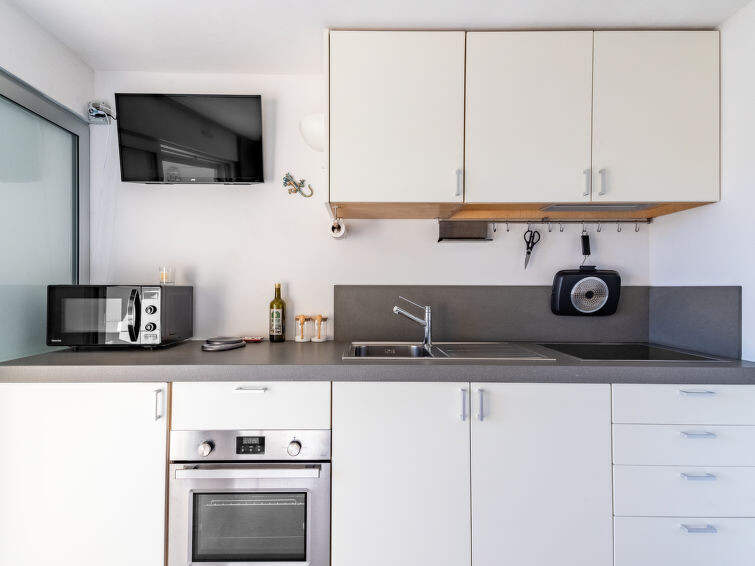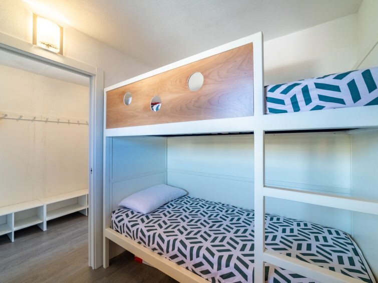 Appartement 2-kamers 36 m2 op de 2e verdieping, op het zuiden gelegen. Licht, comfortabel ingericht: woonkamer met 1 2-pers kastbed (160 cm, lengte 200 cm), TV (Flatscreen TV), air-conditioning. Uitgang naar het terras. 1 kamer 5 m2 met 1 x 2 stapelbedden (90 cm, lengte 200 cm). Kookhoek (2-pits kookplaat, oven, broodrooster, waterkoker, magnetron, elektrische koffiemachine). Douche/WC. Geen verwarmingsmogelijkheid. Klein terras 7 m2, op het zuiden gelegen. Terrasmeubelen. Uitzicht op het landschap. Ter beschikking: wasmachine, haardroger. Internet (WiFi, gratis). Parkeerplaats nr. 226. Woning aan de straatzijde. Niet rokers woning. Maximaal 1 huisdier/hond toegestaan. TV alleen FR. Rookmelders, geen lift. Aanbod door een particulier volgens art. 155, IV van CGI. 83070002676C4