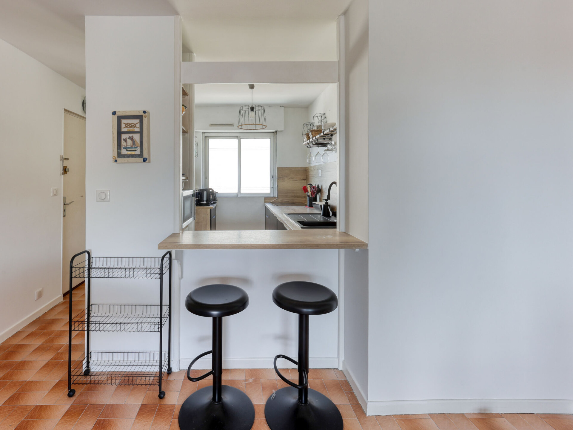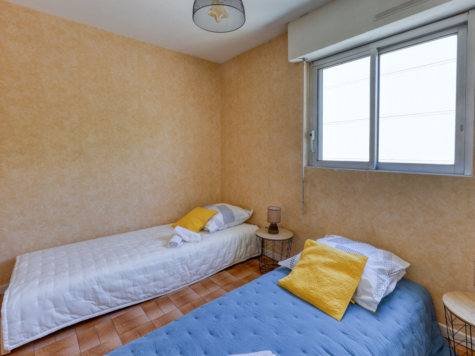 Appartement 3-kamers 50 m2 op de 2e verdieping. Comfortabel en mooi ingericht: woon-/eetkamer met TV (Flatscreen TV), air-conditioning. Uitgang naar het terras. 1 kamer met 1 2-pers bed (1 x 140 cm, lengte 190 cm), air-conditioning. 1 kamer met 2 bedden (80 cm, lengte 190 cm). Open keuken (afwasmachine, 3 inductiekookplaten, broodrooster, waterkoker, magnetron, elektrische koffiemachine, pads voor de koffiemachine (Nespresso) extra). Douche, aparte WC. Heteluchtverwarming. Terras 15 m2. Terrasmeubelen. Zijdelings uitzicht op zee. Ter beschikking: wasmachine, strijkijzer. Internet (WiFi, gratis). Parkeerplaats nr. 680. 1 klein huisdier/hond toegestaan. TV alleen FR. Rookmelders. Aanbod door een particulier volgens art. 155, IV van CGI. 1302800273713