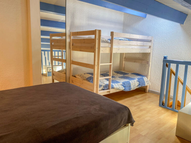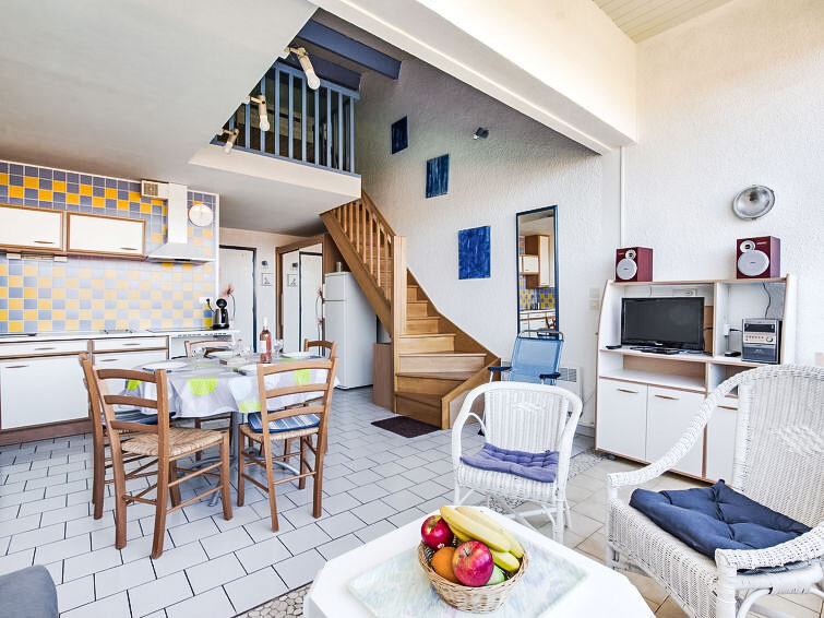 Maisonette 1-kamer 49 m2 op de 1e verdieping. Ruim, doelmatig ingericht: groot, open woonkamer 28 m2 met 1 2-pers divanbed (140 cm, lengte 190 cm), TV (Flatscreen TV), stereo-installatie. Open keuken (4 keramische glas kookplaten, magnetron, diepvriezer, elektrische koffiemachine). Douche, aparte WC. Bovenverdieping: open galerij 16 m2, met afgeschuinde daken met 1 x 2 stapelbedden (90 cm, lengte 190 cm), 1 2-pers bed (140 cm, lengte 190 cm). Ter beschikking: wasmachine. Internet (WiFi, extra). Parkeerplaats (overdekt). Geschikt voor families. Niet rokers woning. Maximaal 1 huisdier/hond toegestaan. Rookmelders. In plaats van een afgesloten slaapkamer bevinden sommige slaapgedeeltes zich in een open ruimte (galerij, nis, etc.).
