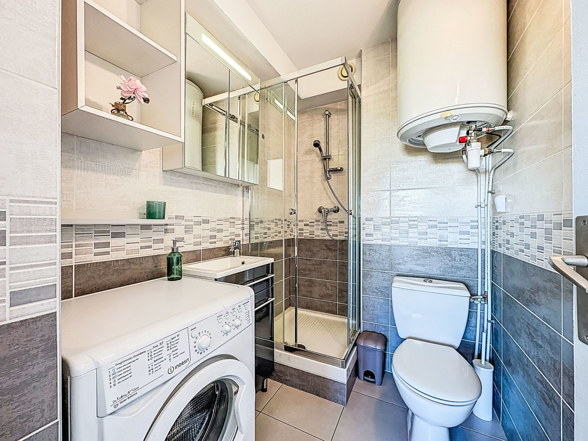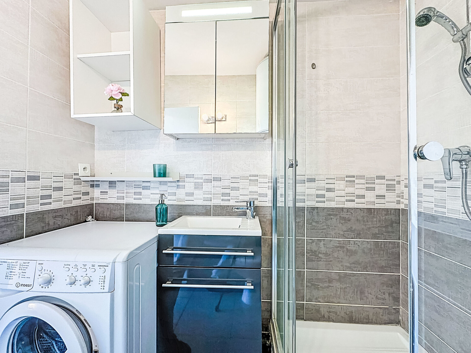 Studio 1-kamer 22 m2 op de 2e verdieping. Woon-/eetkamer met 1 2-pers divanbed (1 x 140 cm, lengte 190 cm), TV (Flatscreen TV). Hal met 1 bed (80 cm, lengte 180 cm). Kookhoek (oven, 2 keramische glas kookplaten, magnetron, elektrische koffiemachine). Douche/WC. Air-conditioning. Terras 5 m2, op het oosten gelegen. Ter beschikking: wasmachine. Internet (WiFi, extra). Parkeerplaats nr. 136. Rookmelders. Aanbod door een commerciële eigenaar volgens art. 155, IV, CGI