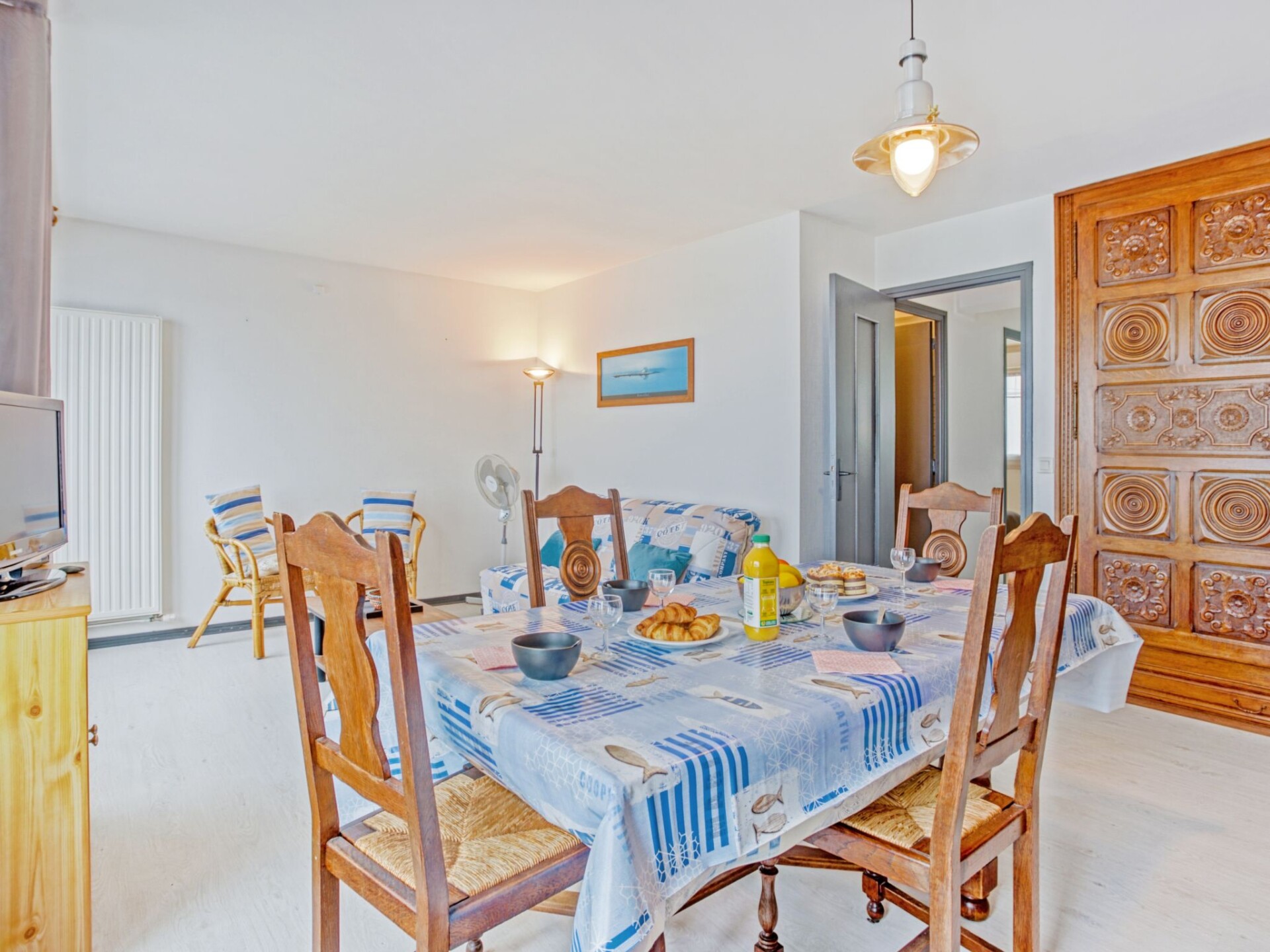 Residentie "Le Grand Large", van 4 verdiepingen. In de plaats, 500 m van het centrum, 10 m van zee, 400 m van het strand. Openbare parkeerplaatsen. Winkel, levensmiddelenwinkel 100 m, restaurant 10 m, centrum te voet bereikbaar in 5 minuten, bushalte 250 m, zandstrand "Grande Plage" 500 m, overdekt zwembad 2.3 km, thermaalbad "Thalassothérapie De Quiberon" 2.7 km. Golfterrein (9 holes) 2.3 km, surfschool 10 km, tennis 2.4 km. Attracties in de buurt: Côte Sauvage de Quiberon 200 m, Carnac, Les Alignements 18 km, Auray 25 km, Vannes 60 km, Casino de Quiberon, Belle ile en Mer, Houat et Hoedic. De sleuteloverdracht vindt plaats bij het agentschap Interhome in Quiberon, 1 km.