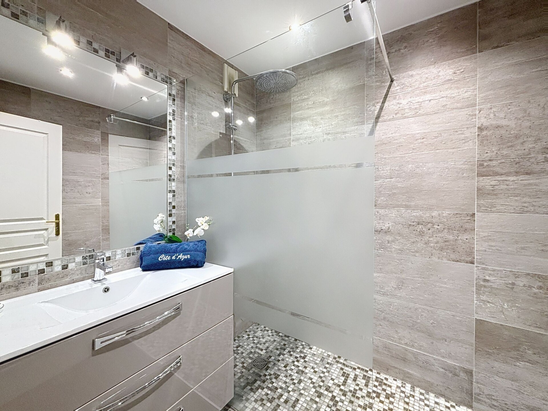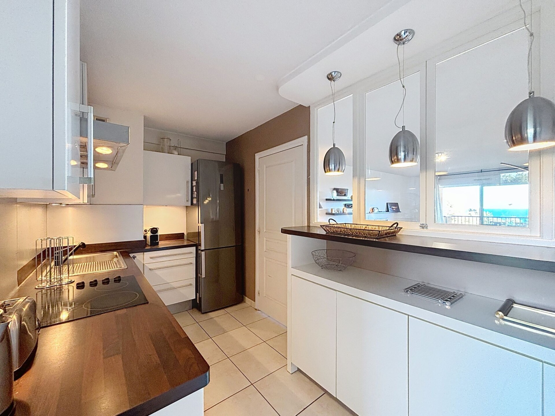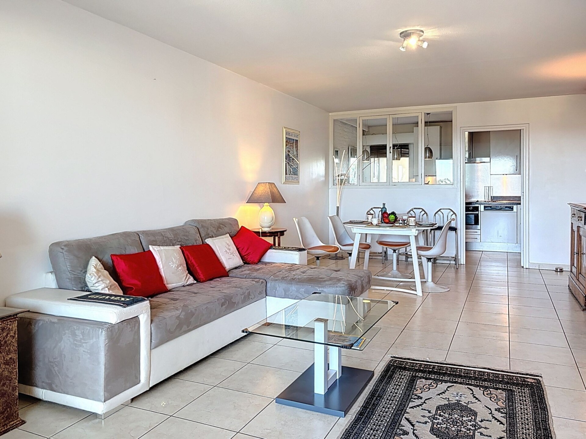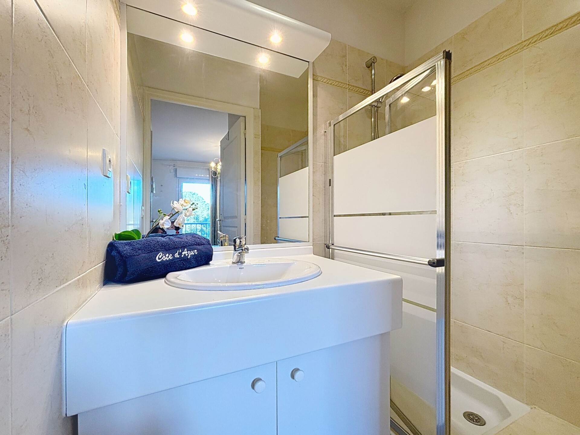 Appartement 3-kamers 79 m2 op de 3e verdieping. Comfortabel en modern ingericht: woon-/eetkamer met panoramavenster met TV (Flatscreen TV), DVD en elektrische rolluiken. Uitgang naar het terras. 1 kamer met 1 2-pers bed (1 x 140 cm, lengte 190 cm), douche. 1 kamer met 2 bedden (90 cm, lengte 190 cm). Groot keuken (afwasmachine, 4 keramische glas kookplaten, broodrooster, waterkoker, diepvriezer, elektrische koffiemachine, pads voor de koffiemachine (Nespresso), combimagnetron). Uitgang naar het balkon. Douche, aparte WC. Air-conditioning. Balkon 8 m2, op het noorden gelegen terras 12 m2, op het zuidoosten gelegen. Terrasmeubelen. Mooi uitzicht op zee, het zwembad en de tuin. Ter beschikking: wasmachine, strijkijzer, haardroger. Internet (WiFi, extra). Garage nr. 34, hoogte 190 cm, breedte 230 cm. Geschikt voor families. Maximaal 1 huisdier/hond toegestaan. TV alleen FR. Rookmelders. Aanbod door een particulier volgens art. 155, IV van CGI. GOARHM