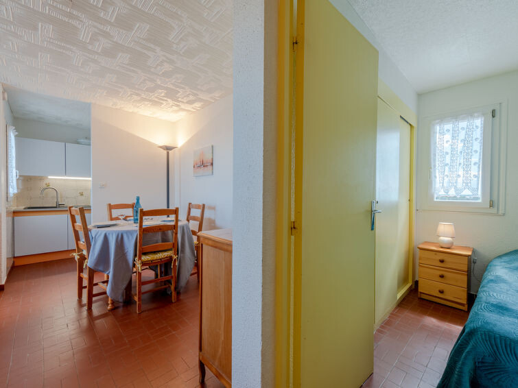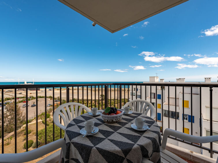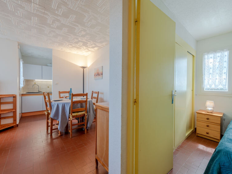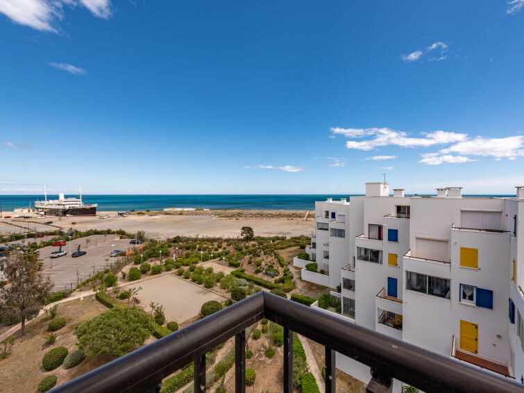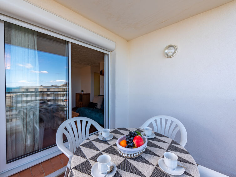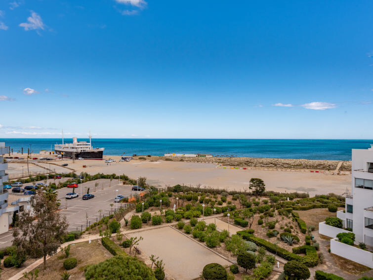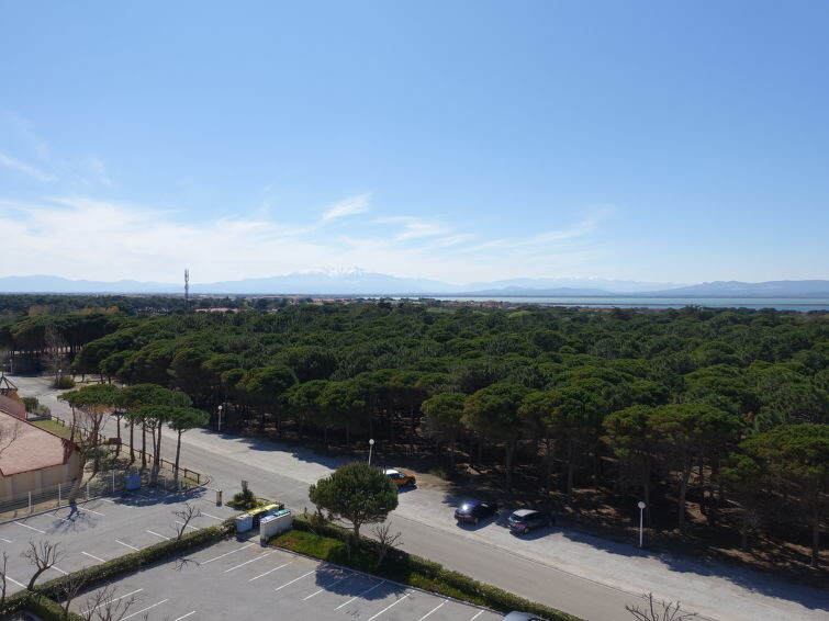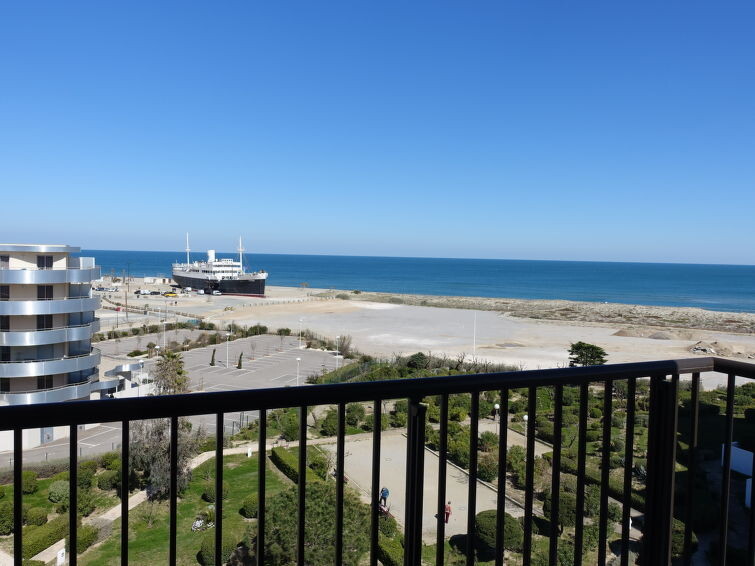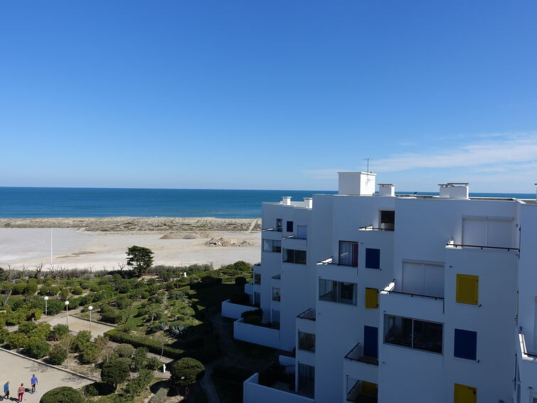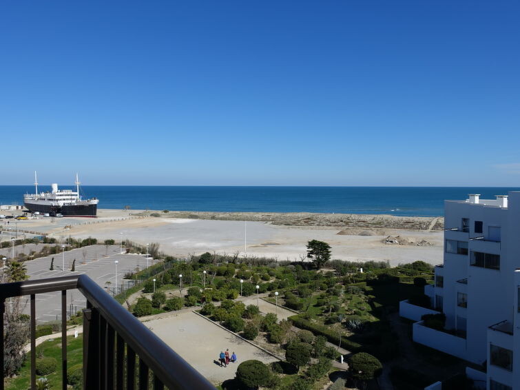 Residentie "Le Grand Pavois", van 6 verdiepingen. In de wijk la Grande Plage, 250 m van zee, 100 m van het strand. In het complex: lift. Parkeerplaats nr. 123. Winkel 1 km, supermarkt 5 km, restaurant 1 km, bakkerij 1 km, café 500 m, fietsverhuur 3 km, bushalte "Roussillon" 550 m, treinstation "Perpignan" 22 km, zandstrand "le barcares" 100 m, duikschool 5 km, openluchtzwembad 7 km, fKK-strand 10 km. Zeilschool 3 km, tennis 3 km, midgetgolf 3 km, manege 12 km, fietspad 6 km. Attracties in de buurt: Aqualand Port Leucate 7 km, Réserve Africaine de Sigean 41 km, Forteresse de Salses 20 km, téléski nautique 3 km, Spot de windsurf 3 km, Cinéma 5 km. Bekende meren kunnen gemakkelijk worden bereikt: Etang de Leucate ou de Salses 950 m, Lac de Villeneuve de la Raho 28 km. Wandelgebied Sentier du guetteur 8 km, La forteresse de salses 15 km, Sentier du littoral Collioure 40 km. Auto noodzakelijk. De sleuteloverdracht vindt plaats bij het agentschap Interhome in Barcarès, 2 km. Autobaan 18 km van het huis. Vliegveld 20 km van het huis.