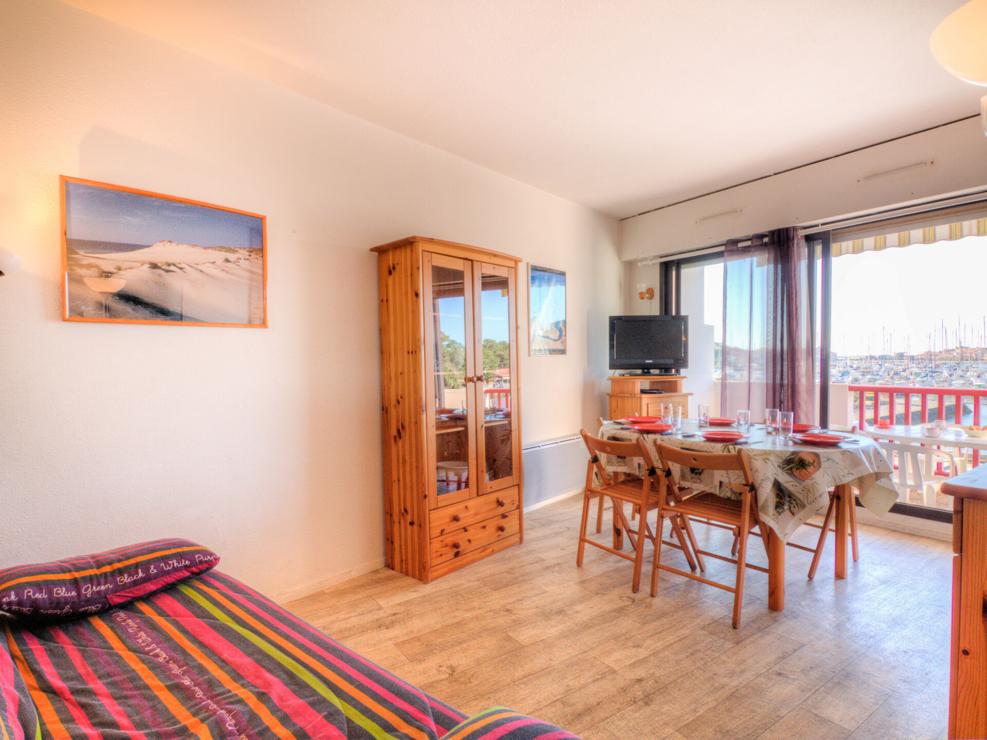 Appartement 2-kamers 35 m2 op de 1e verdieping. Woon-/eetkamer met TV. Uitgang naar het terras. Hal met 1 x 2 stapelbedden (90 cm, lengte 190 cm). 1 kamer met 1 2-pers bed (140 cm, lengte 190 cm). Kookhoek (4 keramische glas kookplaten, magnetron). Bad/WC. Elektrische verwarming. Terras. Terrasmeubelen. Uitzicht op de haven. Ter beschikking: Internet (Internet (WiFi), extra). Parkeerplaats. Rookmelders. 4006500003644
