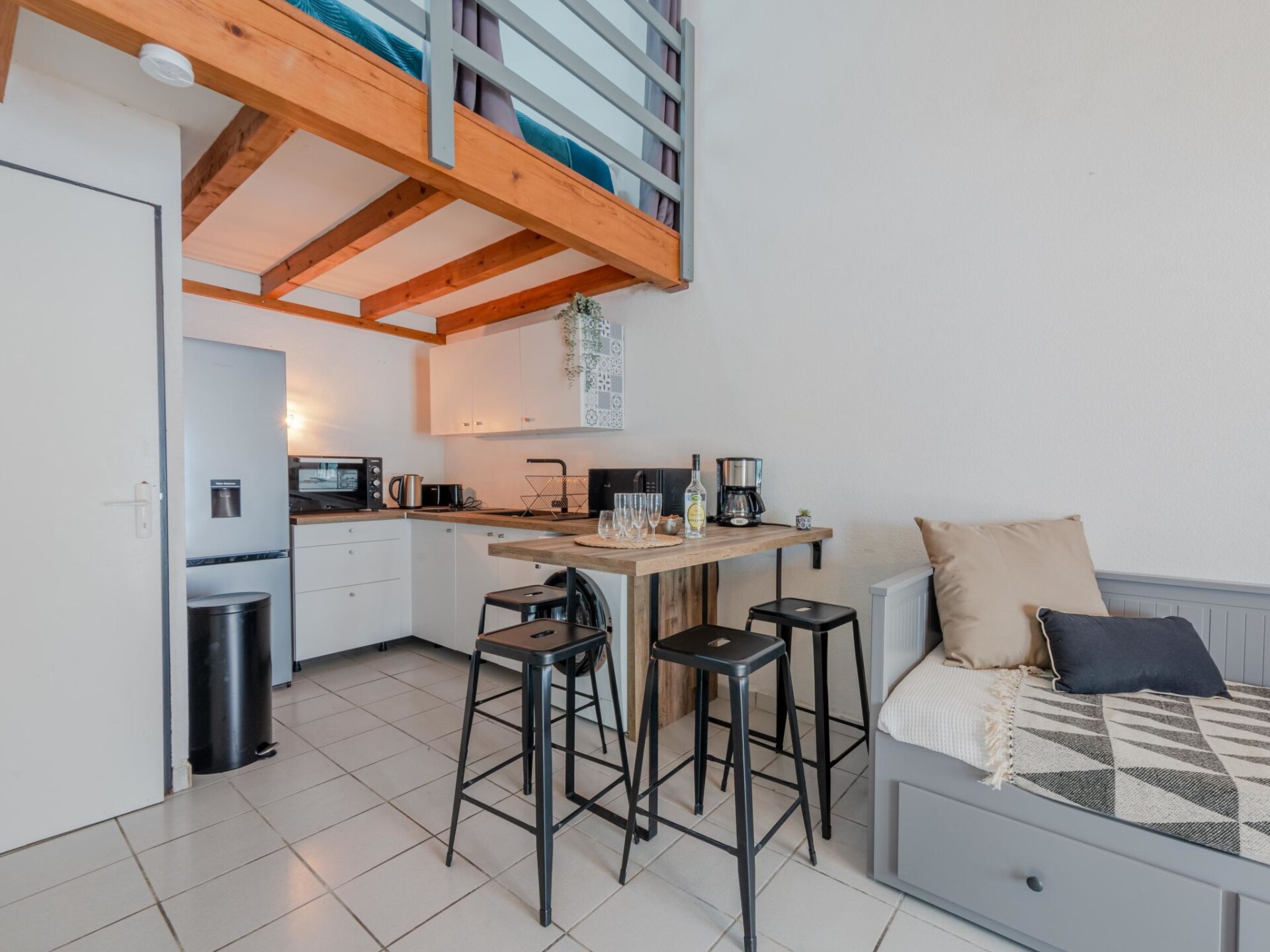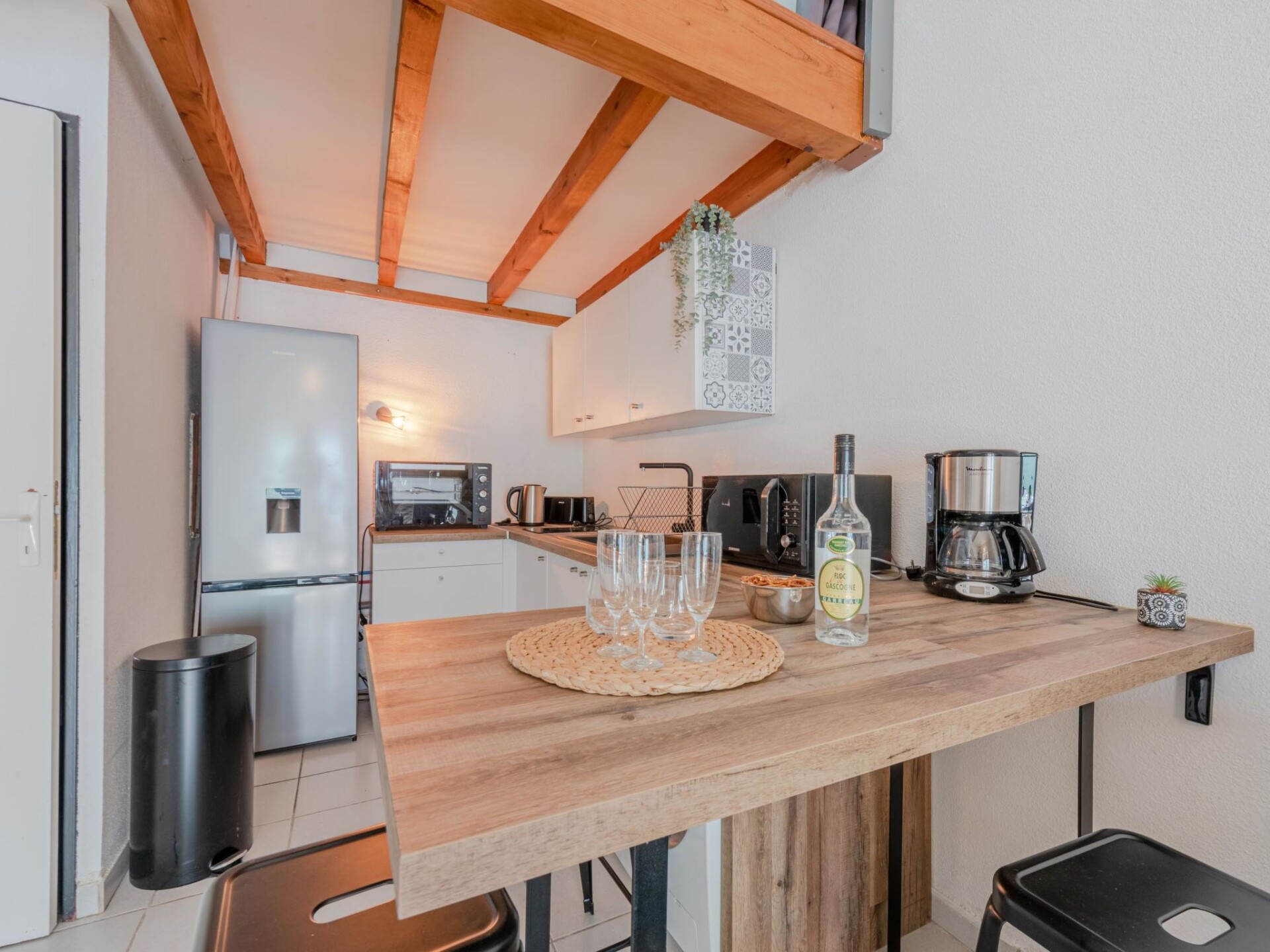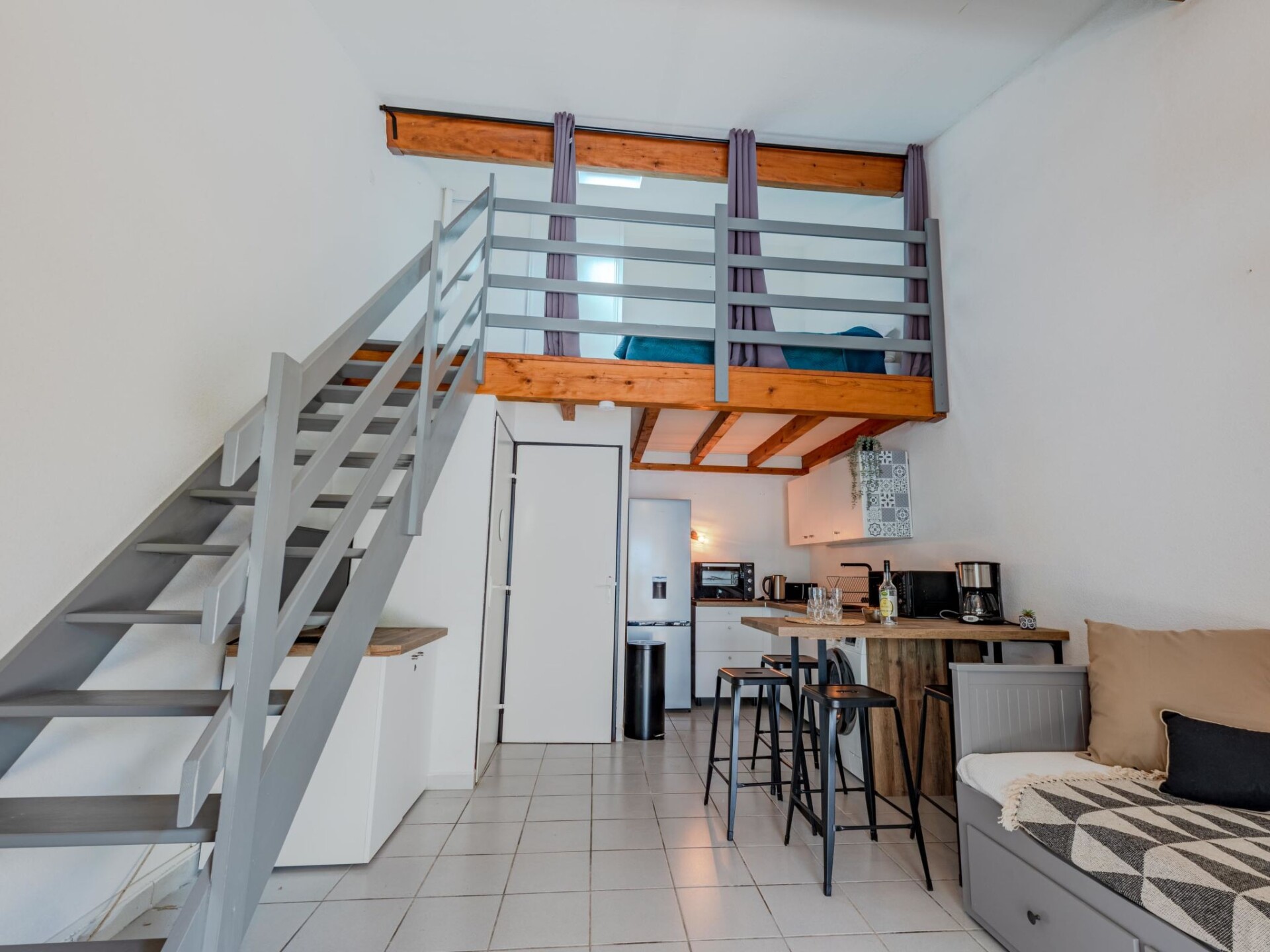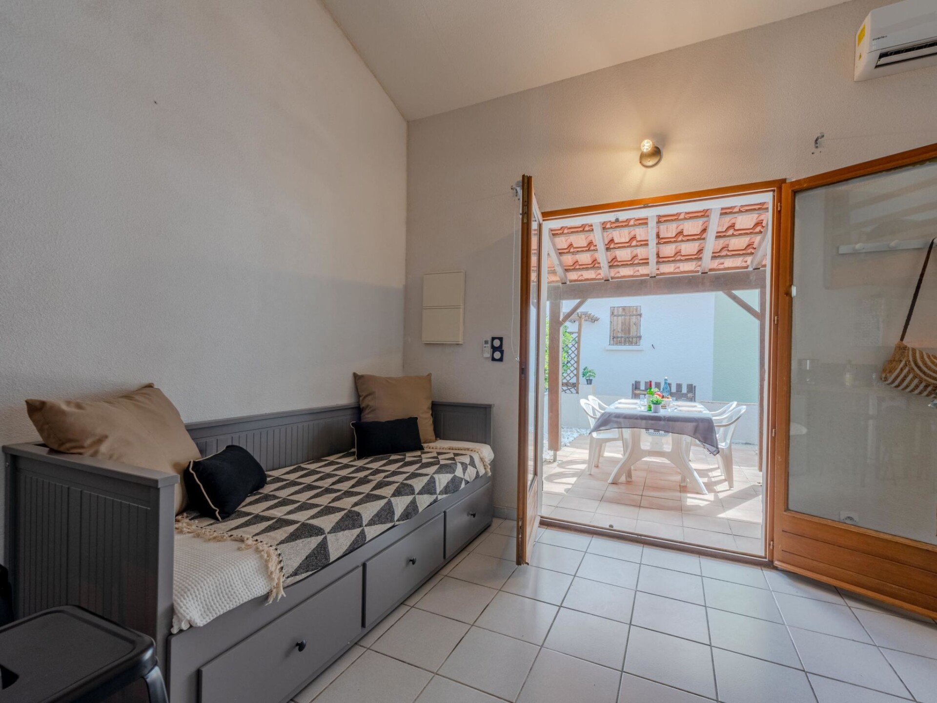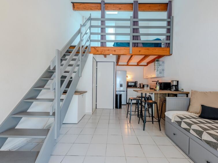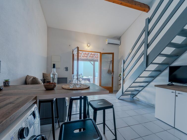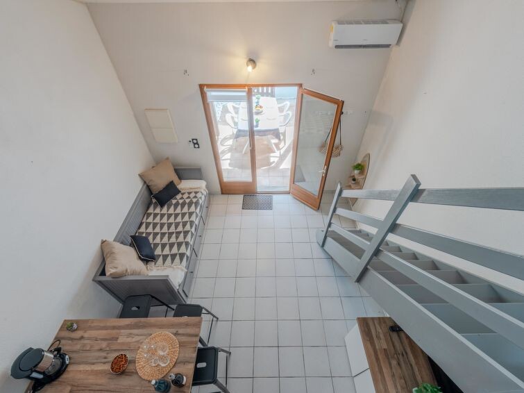 Huis in een rij 1-kamer 25 m2. Woon-/eetkamer met 1 uitschuifbaar bed (2 pers. 2 x 80 cm, lengte 200 cm), TV. Uitgang naar het terras. Kookhoek (mini-oven, 2 keramische glas kookplaten, magnetron, diepvriezer, elektrische koffiemachine). Douche, aparte WC. Air-conditioning. Bovenverdieping: galerij met 1 2-pers bed (1 x 140 cm, lengte 190 cm). Terras 20 m2. Terrasmeubelen, barbecue. Ter beschikking: wasmachine. Internet (Internet (WiFi), extra). Parkeerplaats. Rookmelders. Aanbod door een particulier volgens art. 155, IV van CGI.