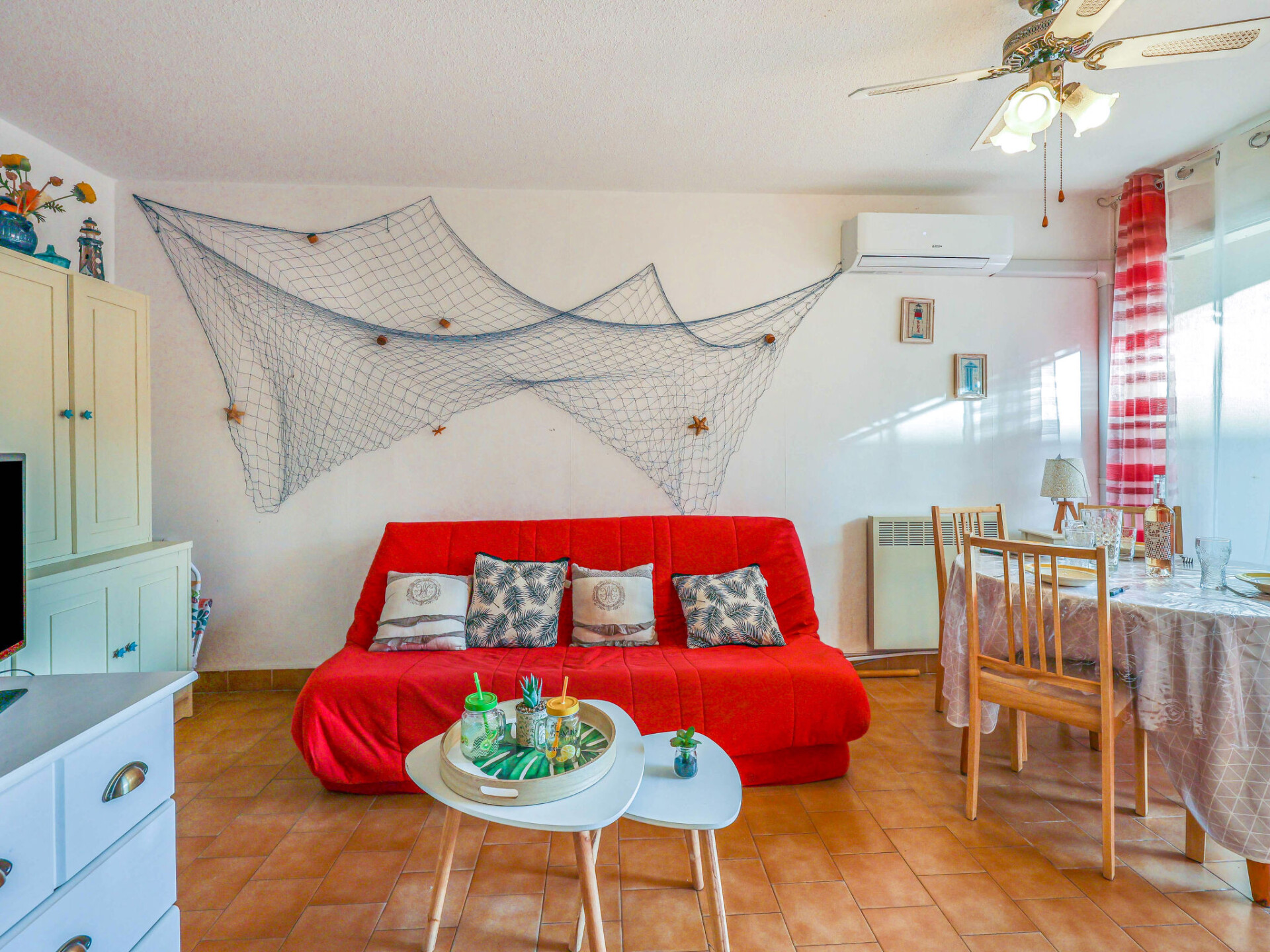 Appartement 2-kamers 25 m2 op de 1e verdieping. Gerenoveerd in 2017, mooi ingericht: woonkamer met panoramavenster met 1 2-pers divanbed (140 cm, lengte 190 cm), TV (Flatscreen TV), air-conditioning. Uitgang naar het terras. 1 kamer met 1 2-pers bed (140 cm, lengte 190 cm). Kookhoek (afwasmachine, 2 inductiekookplaten, magnetron, diepvriezer, elektrische koffiemachine). Bad/WC. Verwarming, elektrische verwarming. Terras 6 m2, overdekt, op het zuiden gelegen. Terrasmeubelen. Uitzicht op het zwembad. Ter beschikking: Internet (Internet (WiFi), extra). Parkeerplaats nr. 313. Geschikt voor families. Niet rokers woning. Rookmelders.