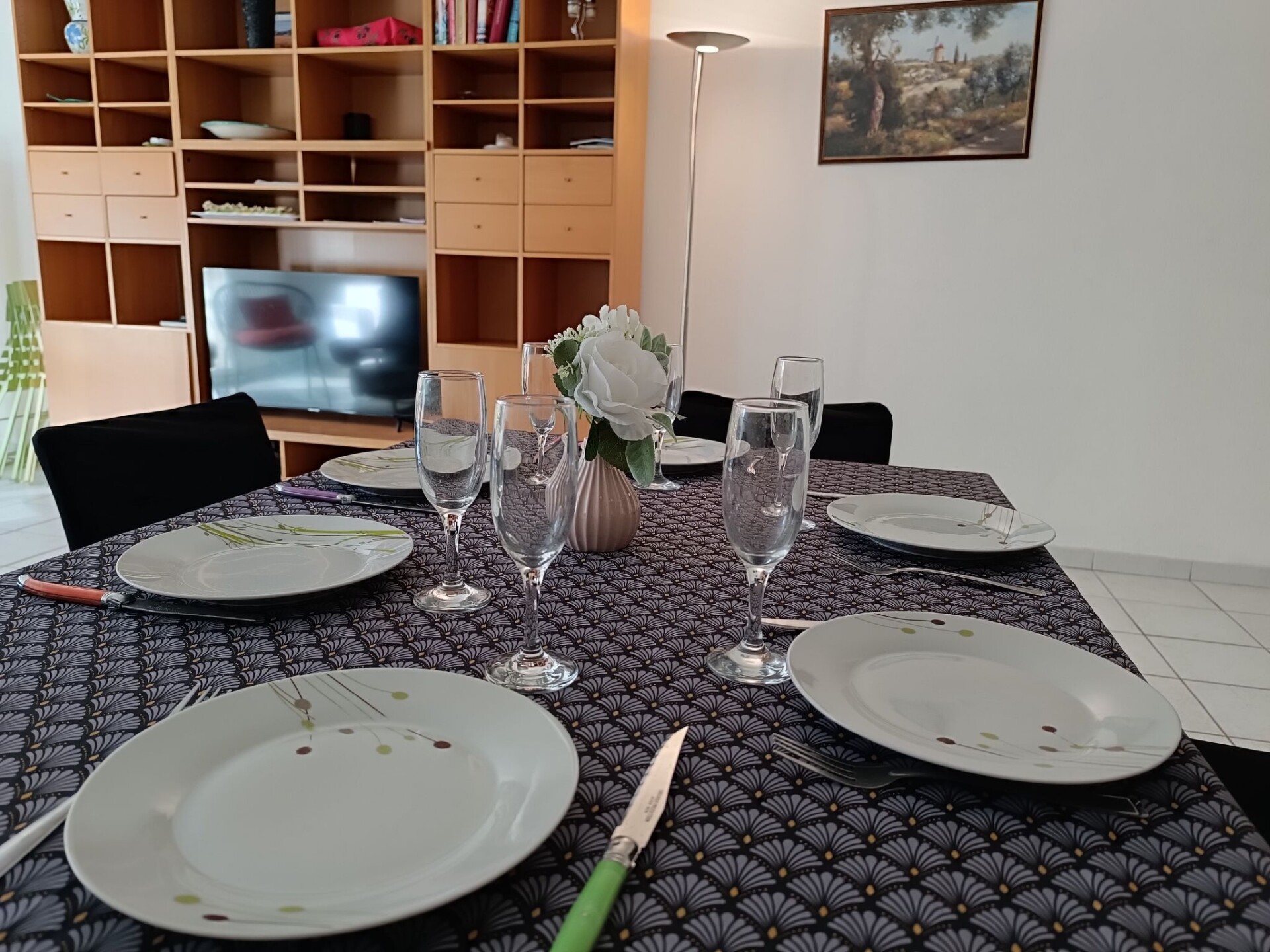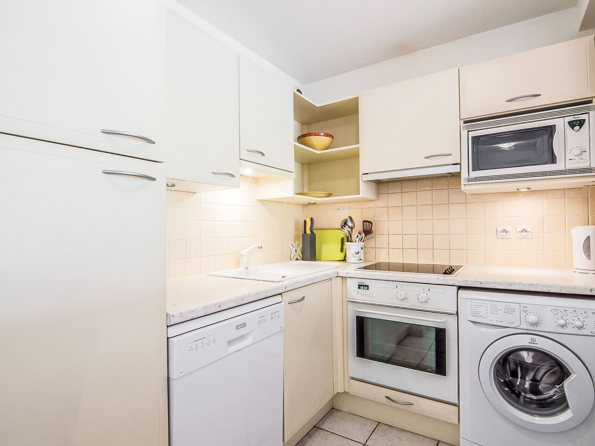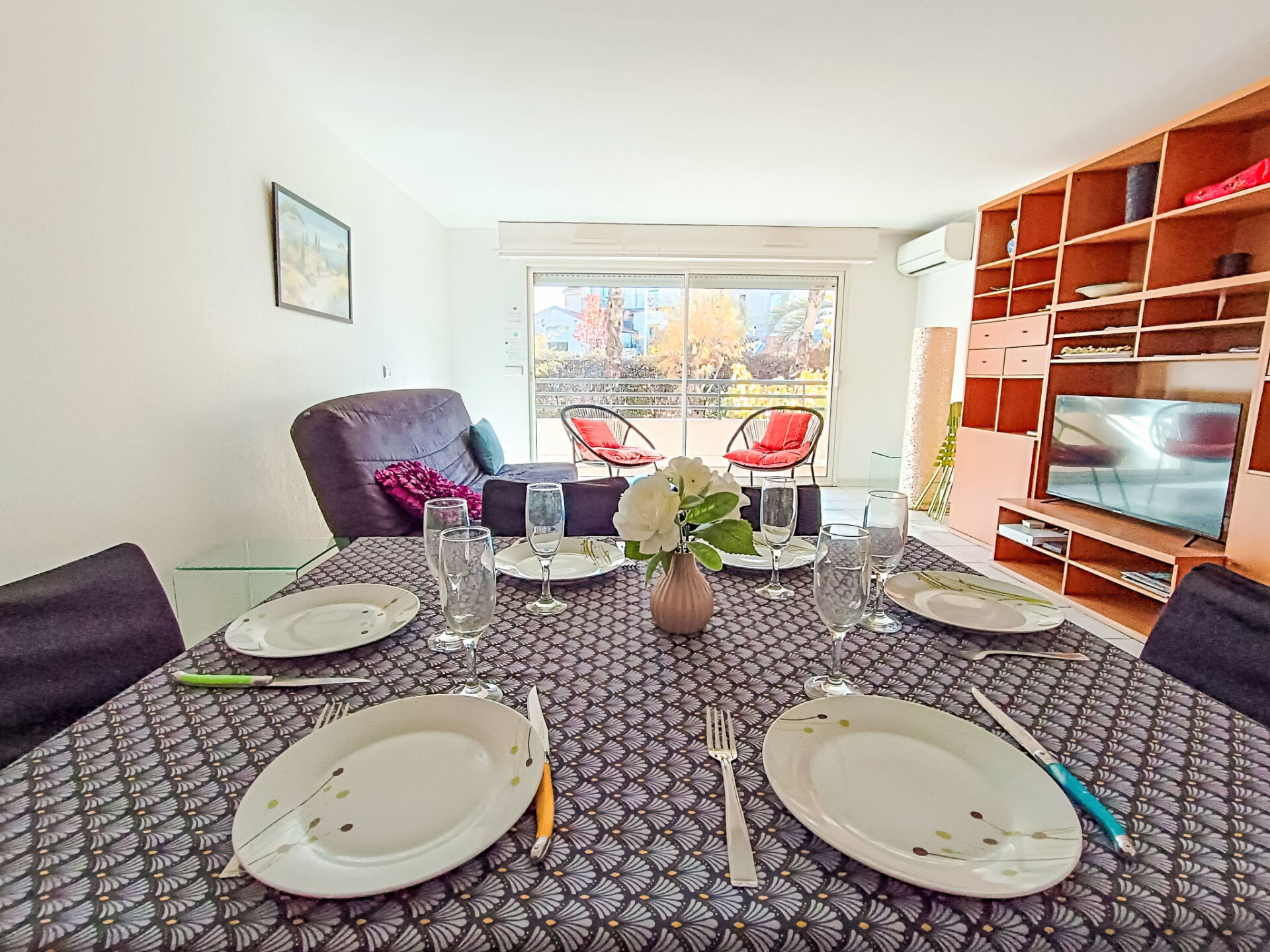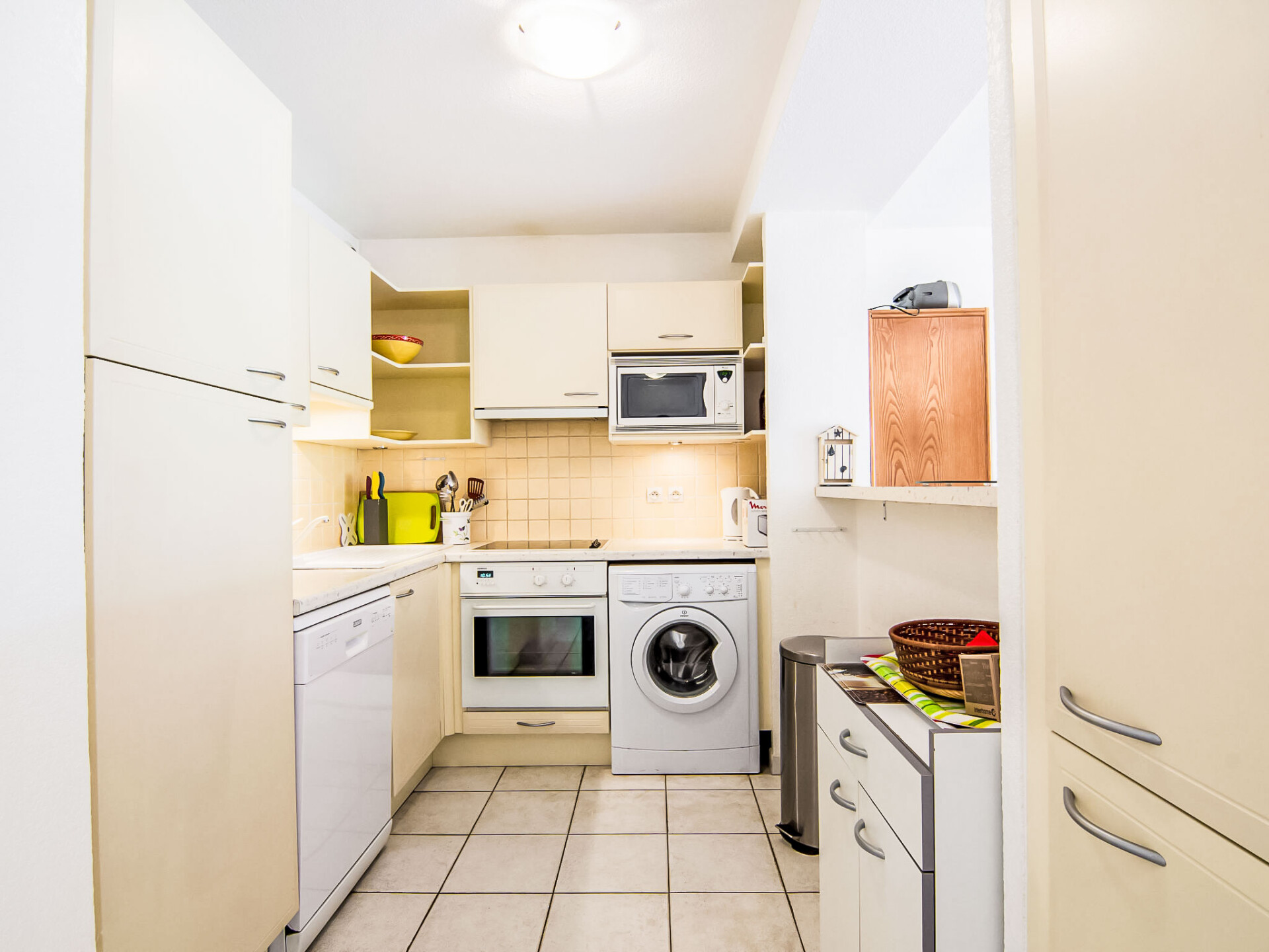 Appartement 3-kamers 72 m2 op de 1e verdieping. Ruim, doelmatig ingericht: hal met elektrische verwarming. Woon-/eetkamer 28 m2 met 1 2-pers divanbed (1 x 140 cm, lengte 190 cm), TV (Flatscreen TV), air-conditioning en elektrische rolluiken. Uitgang naar het terras. 2 kamers, elke kamer heeft 1 2-pers bed (1 x 140 cm, lengte 190 cm), air-conditioning. Open keuken (3-pits kookplaat, oven, afwasmachine, broodrooster, waterkoker, magnetron, diepvriezer, elektrische koffiemachine). Badkamer, aparte WC. Terras. Terrasmeubelen. Ter beschikking: wasmachine, strijkijzer, haardroger. Internet (WiFi, gratis). Garage nr. 2, hoogte 180 cm, breedte 230 cm. Niet rokers woning. Maximaal 1 klein huisdier/hond toegestaan. Rookmelders.