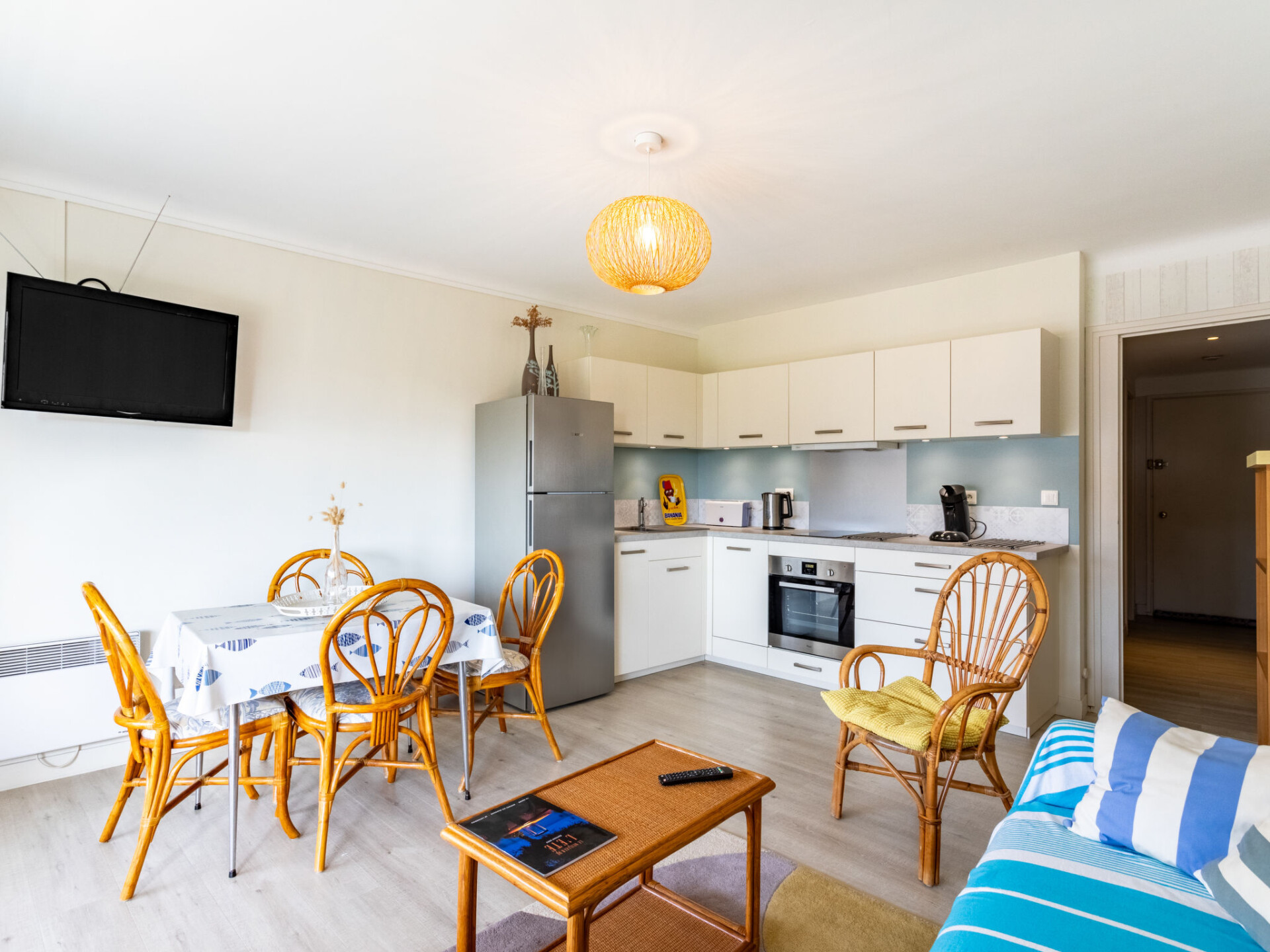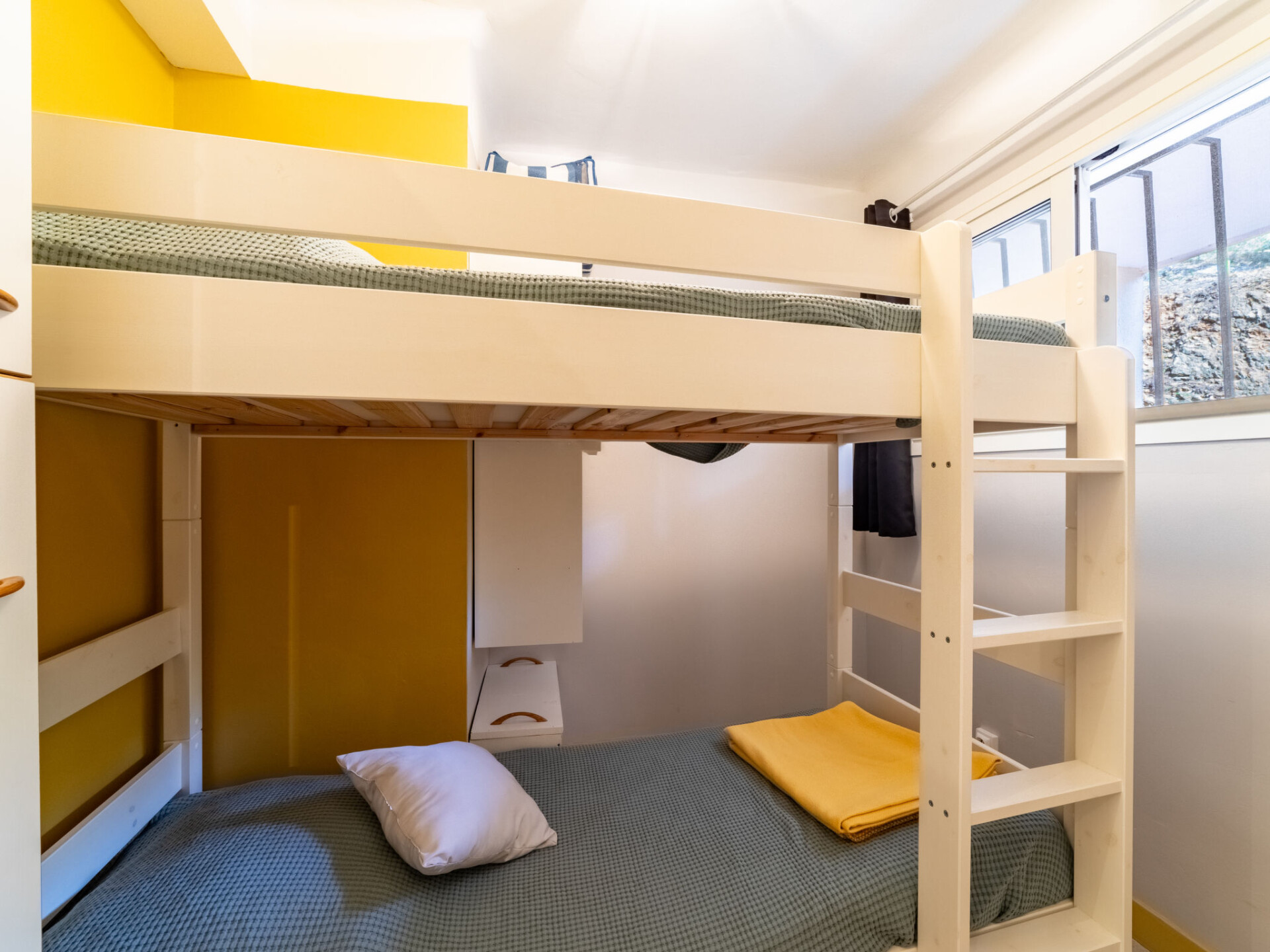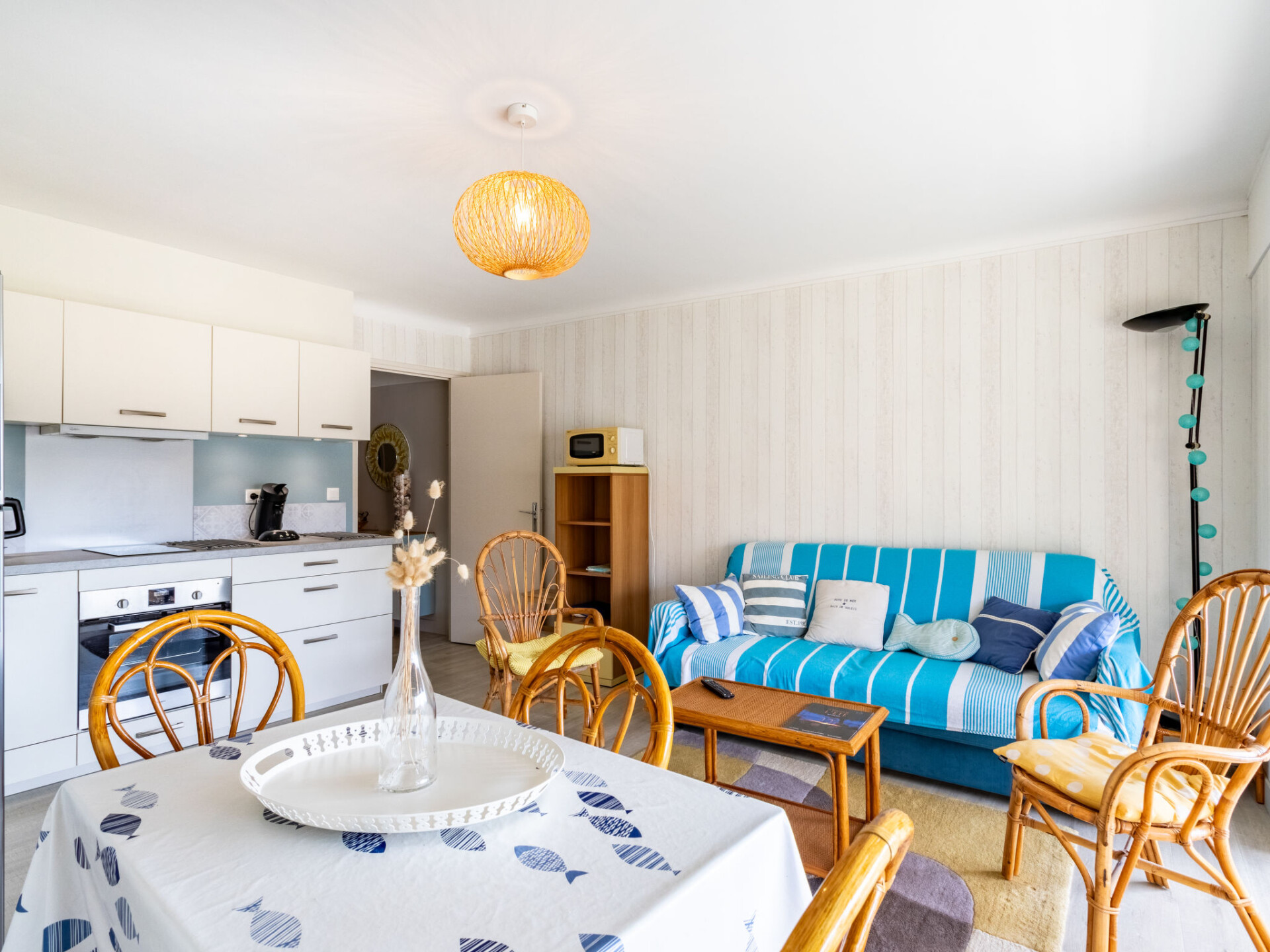 Appartement 3-kamers 45 m2 op de 2e verdieping. Het objekt is geschikt voor 2 volwassenen + 2 kinderen. Comfortabel en mooi ingericht: woon-/eetkamer met eettafel en TV (Flatscreen TV), air-conditioning. Uitgang naar het balkon. 1 kamer met 1 2-pers bed (160 cm, lengte 190 cm). 1 kleine kinderkamer met schuifdeur met 1 x 2 stapelbedden (80 cm, lengte 190 cm). Open keuken (oven, afwasmachine, 2 inductiekookplaten, broodrooster, waterkoker, magnetron, diepvriezer). Douche/WC. Elektrische verwarming. Balkon 6 m2. Balkonmeubilair. Zijdelings uitzicht op zee. Ter beschikking: wasmachine, haardroger. Internet (Internet (WiFi), extra). Niet rokers woning. TV alleen FR. Rookmelders. 83070 000183 QI