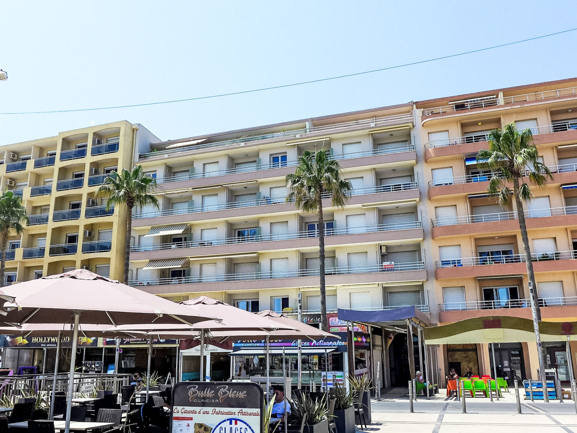 Appartement 4-kamers 54 m2 op de 4e verdieping, op het oosten gelegen. Comfortabel ingericht: woon-/eetkamer met eettafel, TV, Flatscreen TV en air-conditioning. Uitgang naar het terras. 1 kamer met 1 2-pers bed (1 x 140 cm, lengte 190 cm), air-conditioning. 1 kamer met 2 bedden (90 cm, lengte 190 cm). 1 kamer met 1 bed (90 cm, lengte 190 cm). Kookhoek (oven, afwasmachine, 4 inductiekookplaten, broodrooster, waterkoker, magnetron, elektrische koffiemachine, pads voor de koffiemachine (KRUPS) extra). Douche/WC. Terras 6 m2, op het oosten gelegen. Zeer mooi uitzicht op zee. Ter beschikking: wasmachine, droger, strijkijzer, kinderbed, haardroger. Internet (WiFi). Garage (1 Auto), hoogte 190 cm, breedte 500 cm. Aanbod door een commerciële eigenaar volgens art. 155, IV, CGI
