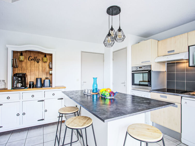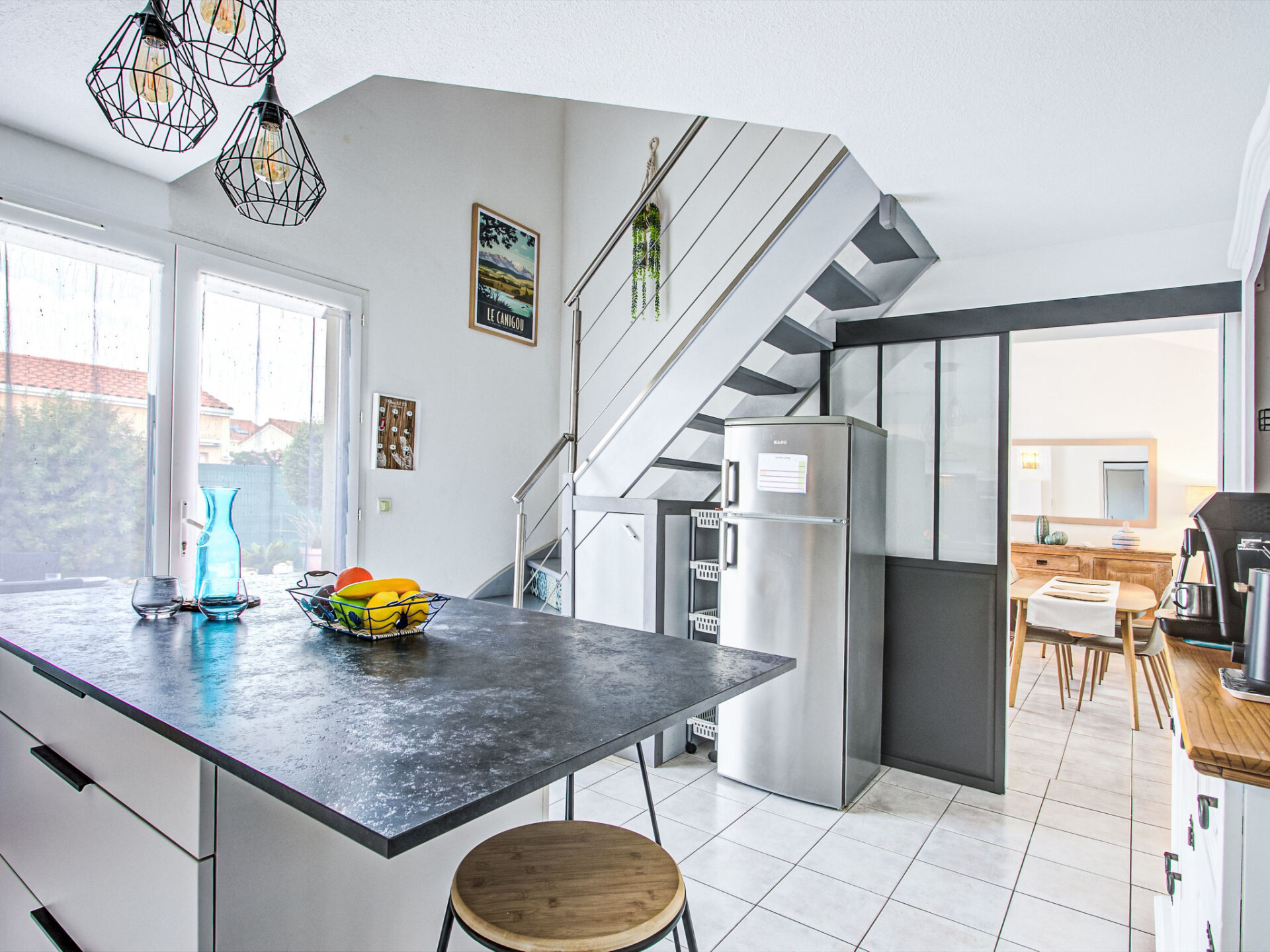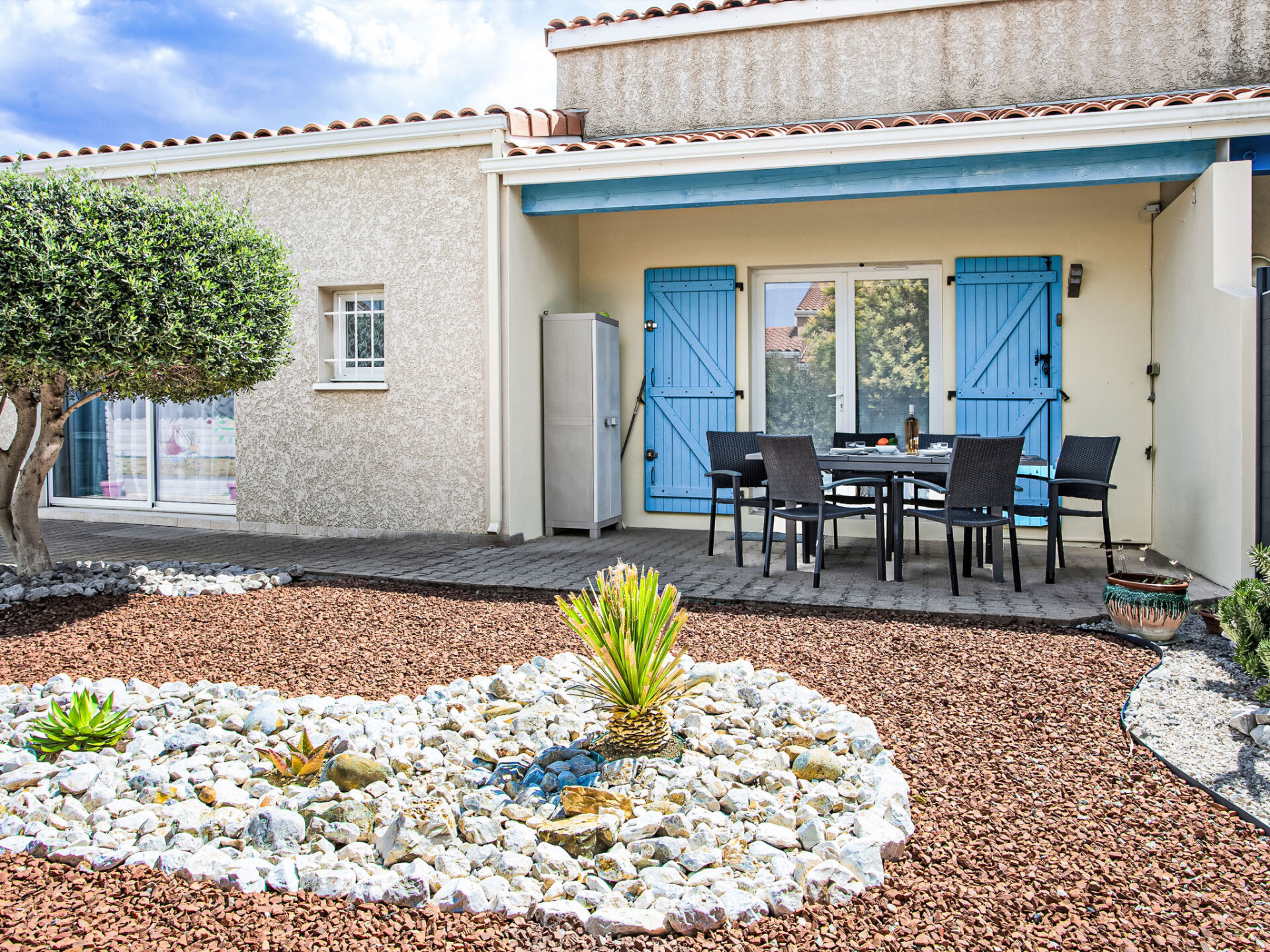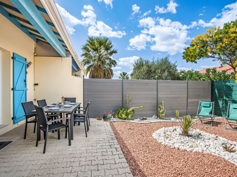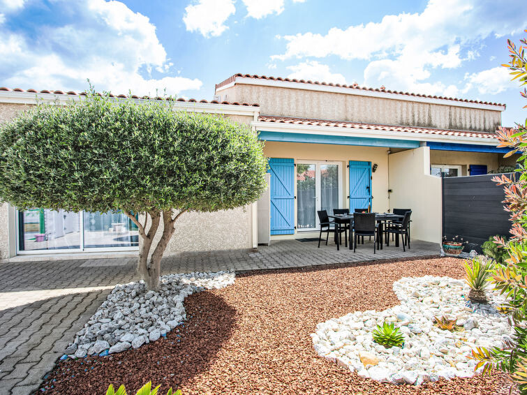 Huis in een rij 3-kamers 73 m2 op 2 verdiepingen, op het zuiden gelegen. Mooi en smaakvol ingericht: woon-/eetkamer met eettafel, TV, air-conditioning en elektrische rolluiken. Uitgang naar de tuin. 1 kamer met 1 2-pers bed (1 x 140 cm, lengte 200 cm), bad/douche/WC. Keuken (4 keramische glas kookplaten, broodrooster, waterkoker, magnetron, elektrische koffiemachine) met eettafel. Bovenverdieping: 1 kamer met 1 2-pers bed (1 x 140 cm, lengte 200 cm), air-conditioning. 1 open kamer met 1 x 2 stapelbedden (90 cm, lengte 190 cm) met bad/douche/WC. Terras 150 m2. Terrasmeubelen. Ter beschikking: wasmachine, strijkijzer, haardroger. Parkeerplaats (omheind, 2 Auto's). Rookmelders. Aanbod door een particulier volgens art. 155, IV van CGI.