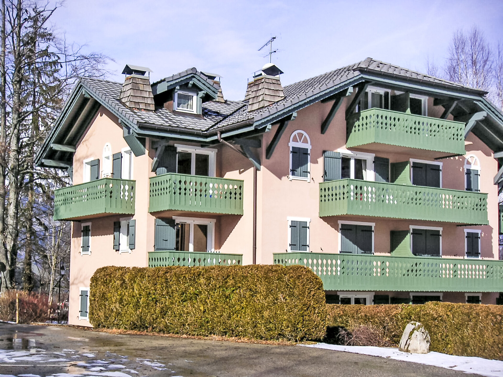 Residentie "Parc du Mont Joly". Aan de rand van de plaats, 800 m van het centrum van St Gervais, rustige, zonnige ligging, 7 km van het skigebied, aan een weg. Voor medegebruik: park 4.000 m2 (omheind). In het complex: berging voor ski's. In de winter sneeuwkettingen aanbevolen. Winkel, bakkerij 500 m, bushalte "Téléphérique" 900 m, treinstation "Saint Gervais les Bains le Fayet" 5.8 km, openluchtzwembad 1.2 km, thermaalbad "Thermes de Saint Gervais" 6.3 km. Tennis 1.2 km, sportcentrum 1.2 km, ski faciliteiten, skipisten 750 m, ijsbaan 700 m. Bekende skigebieden kunnen gemakkelijk worden bereikt: Evasion Mont Blanc. Auto noodzakelijk. Gesloten residentie met een elektrische deur.