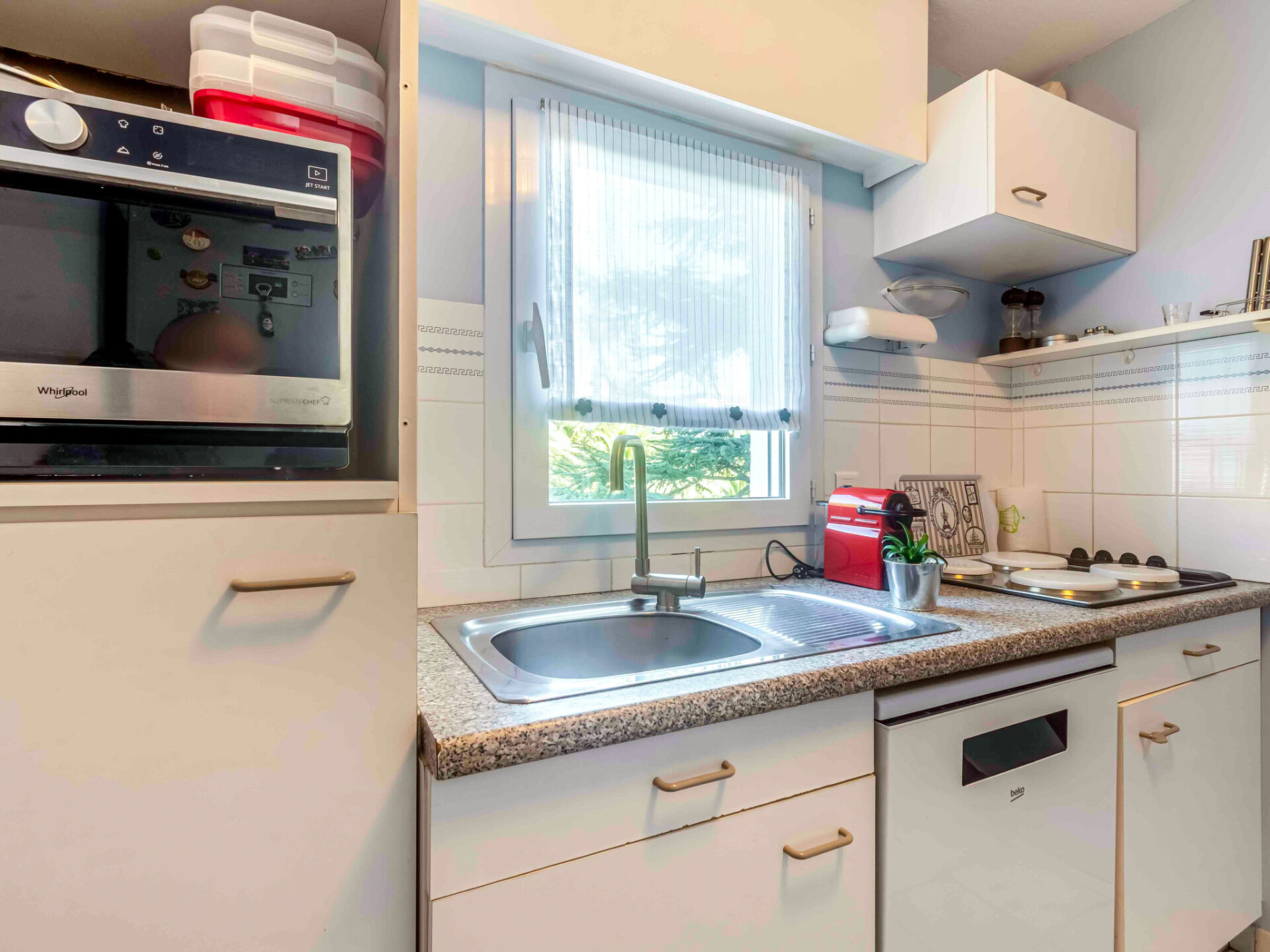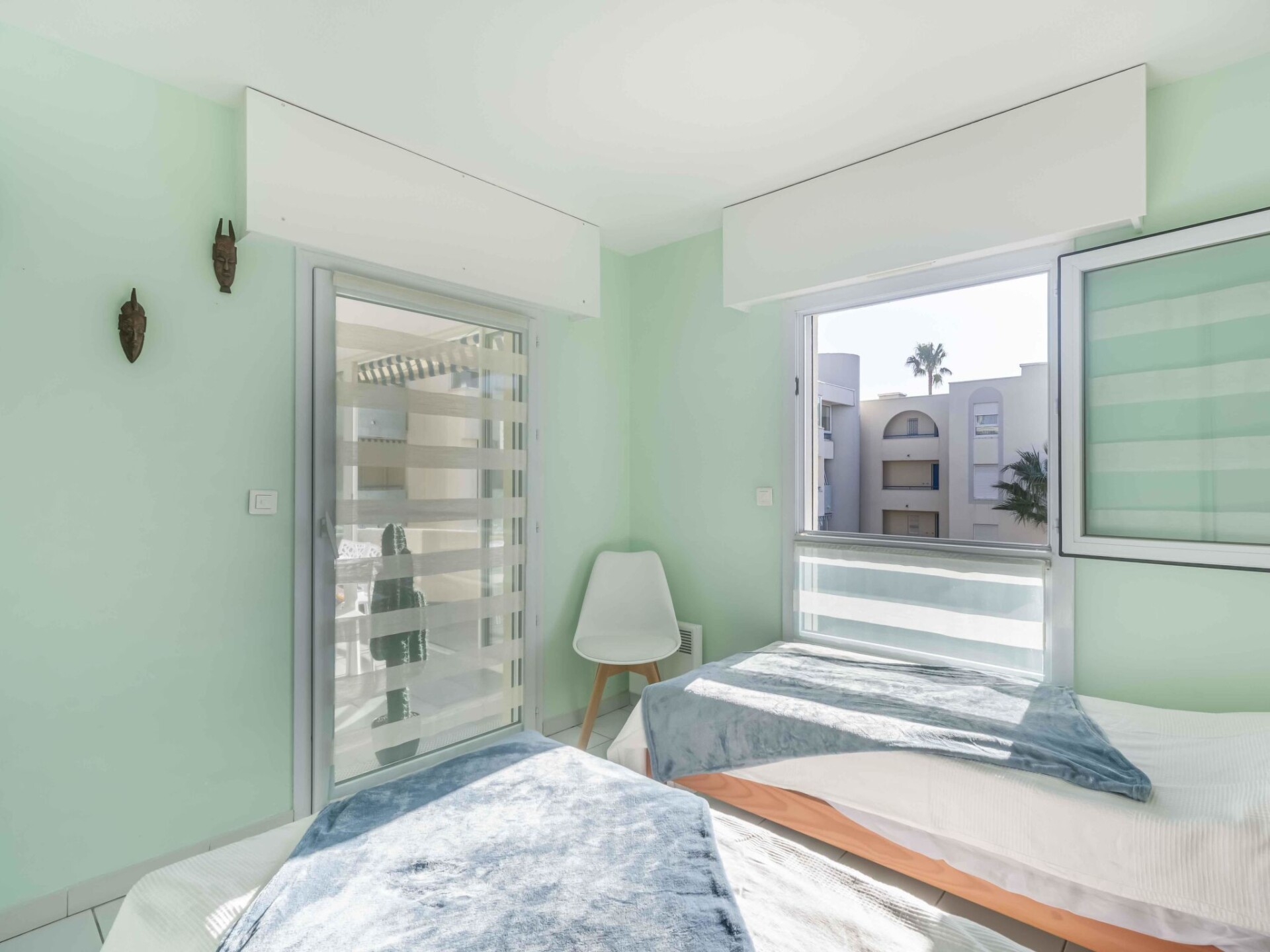 Appartement 3-kamers 70 m2 op de 2e verdieping. Woon-/eetkamer met TV, Flatscreen TV en air-conditioning. Uitgang naar het balkon, op het zuiden. 1 kamer met 1 2-pers bed (1 x 160 cm, lengte 200 cm), TV, Flatscreen TV en air-conditioning. 1 kamer met 2 2-pers bedden (2 x 90 cm, lengte 200 cm), air-conditioning. Keuken (4-pits kookplaat, oven, afwasmachine, broodrooster, waterkoker, magnetron, diepvriezer, elektrische koffiemachine, pads voor de koffiemachine (Nespresso) extra). Douche, bidet, aparte WC. Elektrische verwarming. Terras 10 m2. Balkonmeubilair. Uitzicht op het zwembad. Ter beschikking: strijkijzer. Internet (Internet (WiFi), gratis). Garage nr. 12/13, hoogte 205 cm, breedte 220 cm. Niet rokers woning. TV alleen FR. Rookmelders. Aanbod door een particulier volgens art. 155, IV van CGI. XX