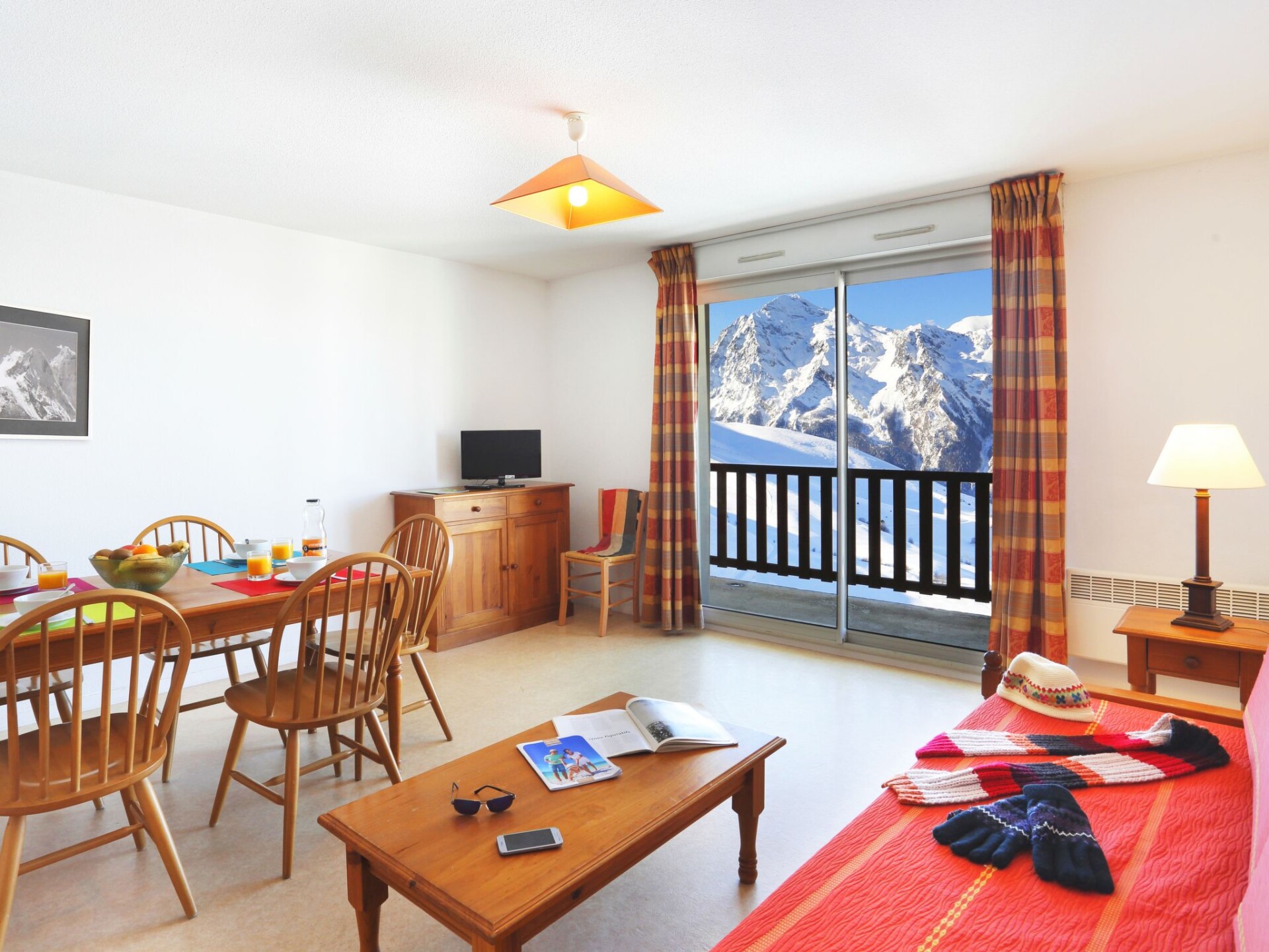 "Le Royal Peyragudes", appartement 1-kamer 29 m2. Woon-/slaapkamer met 1 2-pers divanbed (140 cm, lengte 190 cm), eettafel en TV te huur (Flatscreen TV). Uitgang naar het balkon. Slaapnis met 1 x 2 stapelbedden (80 cm, lengte 190 cm). Kookhoek (afwasmachine, 2 keramische glas kookplaten, broodrooster, magnetron, elektrische koffiemachine). Badkamer, aparte WC. Elektrische verwarming. Klein balkon. Balkonmeubilair. Ter beschikking: strijkijzer, kinderstoel (extra). Internet (WiFi, extra). Niet rokers woning. Maximaal 1 huisdier/hond toegestaan. Rookmelders. De beschrijving betreft een voorbeeld van dit type woning in dit complex. In plaats van een afgesloten slaapkamer bevinden sommige slaapgedeeltes zich in een open ruimte (galerij, nis, etc.).