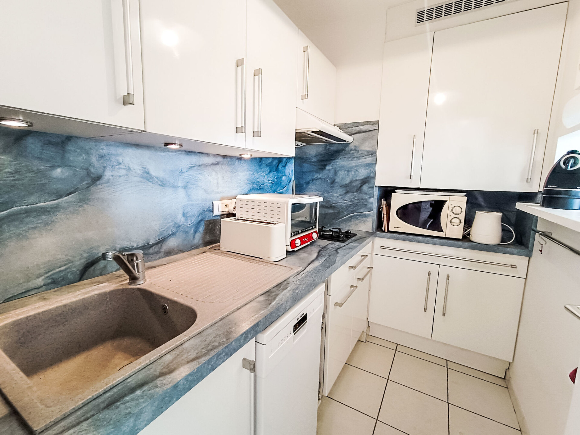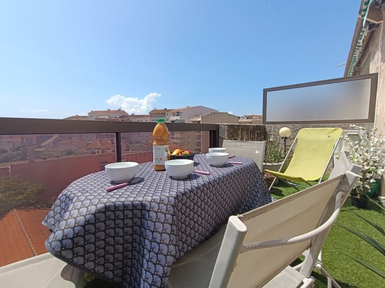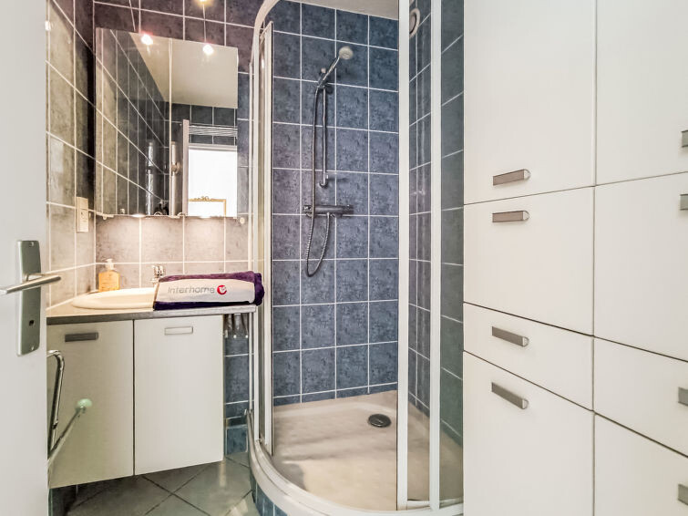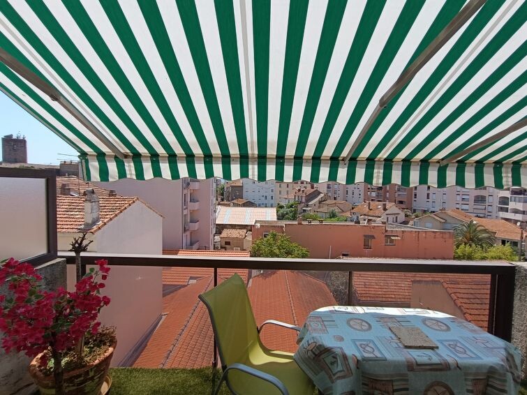 Appartement 2-kamers 33 m2 op de 4e verdieping. Woon-/eetkamer met 1 2-pers divanbed (140 cm, lengte 190 cm), TV (Flatscreen TV), elektrische verwarming en air-conditioning. Uitgang naar het terras. 1 kamer met 1 2-pers bed (1 x 140 cm, lengte 190 cm). Kleine, open keuken (2-pits kookplaat, afwasmachine, waterkoker, magnetron, diepvriezer, elektrische koffiemachine, pads voor de koffiemachine (Nespresso) extra). Douche, aparte WC. Balkon 9 m2, op het zuiden gelegen en op het oosten gelegen. Terrasmeubelen. Ter beschikking: wasmachine, haardroger. Internet (WiFi, extra). Niet rokers woning. Rookmelders. Aanbod door een particulier volgens art. 155, IV van CGI.