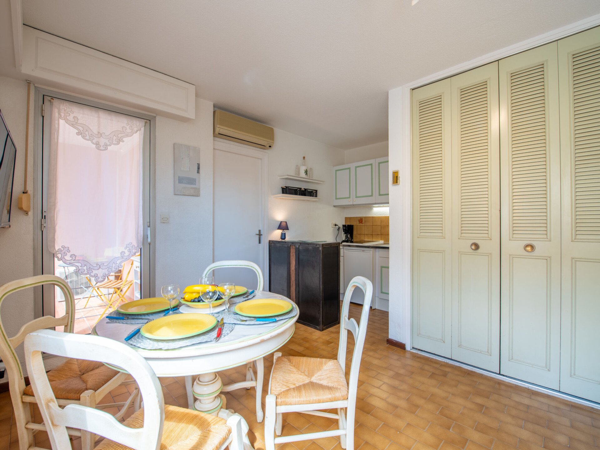 Studio 1-kamer 22 m2 op de 2e verdieping, op het zuiden gelegen. Comfortabel en mooi ingericht: woon-/eetkamer met 1 2-pers divanbed (140 cm, lengte 190 cm), TV (Flatscreen TV). Uitgang naar het balkon. Kookhoek (2 keramische glas kookplaten, broodrooster, waterkoker, magnetron, elektrische koffiemachine). Douche, aparte WC. Elektrische verwarming, air-conditioning, boiler (100 liter). Balkon 5 m2, op het zuiden gelegen. Balkonmeubilair. Ter beschikking: wasmachine, strijkijzer. Internet (WiFi, gratis). Appartement aan de binnenplaats. Maximaal 1 huisdier/hond toegestaan. Rookmelders.