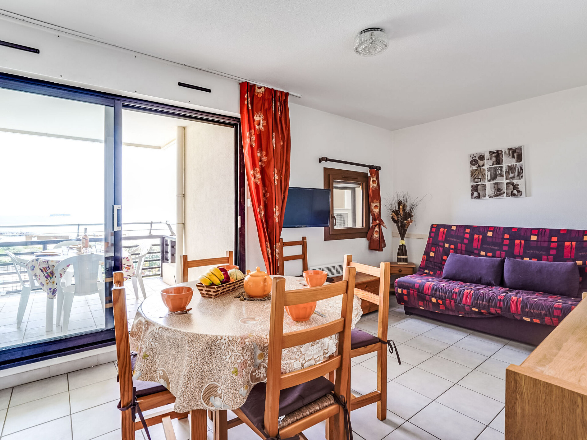 Appartement 2-kamers 40 m2 op de 3e verdieping, op het zuiden gelegen. Gedeeltelijk gerenoveerd in 2019, comfortabel ingericht: woon-/eetkamer met panoramavenster op het zuiden met 1 2-pers divanbed (140 cm, lengte 190 cm), Flatscreen TV. Uitgang naar het terras, op het zuiden. 1 kamer met 1 2-pers bed (140 cm, lengte 190 cm). Cabine, venster naar het binnenplaats met 2 x 1 stapelbedden (80 cm, lengte 190 cm). Open keuken (4-pits kookplaat, mini-oven, oven, afwasmachine, magnetron, elektrische koffiemachine). Badkamer, aparte WC. Elektrische verwarming. Terras 8 m2. Terrasmeubelen. Mooi panoramazicht op zee. Ter beschikking: wasmachine, strijkijzer. Internet (Internet (WiFi), extra). Parkeerplaats nr. B 236/24. Geschikt voor families. Rookvrij huis. Rookmelders. In plaats van een afgesloten slaapkamer bevinden sommige slaapgedeeltes zich in een open ruimte (galerij, nis, etc.).