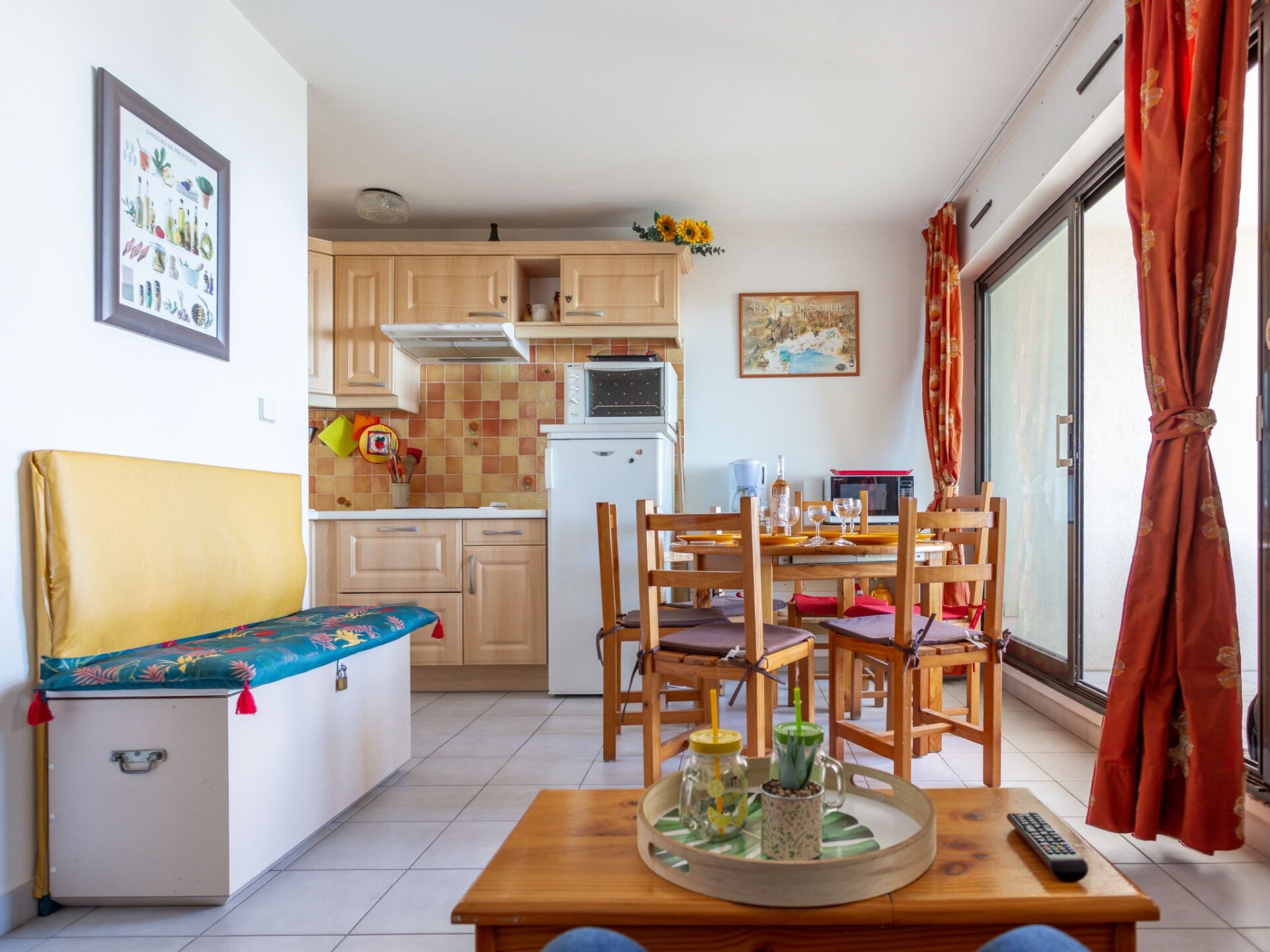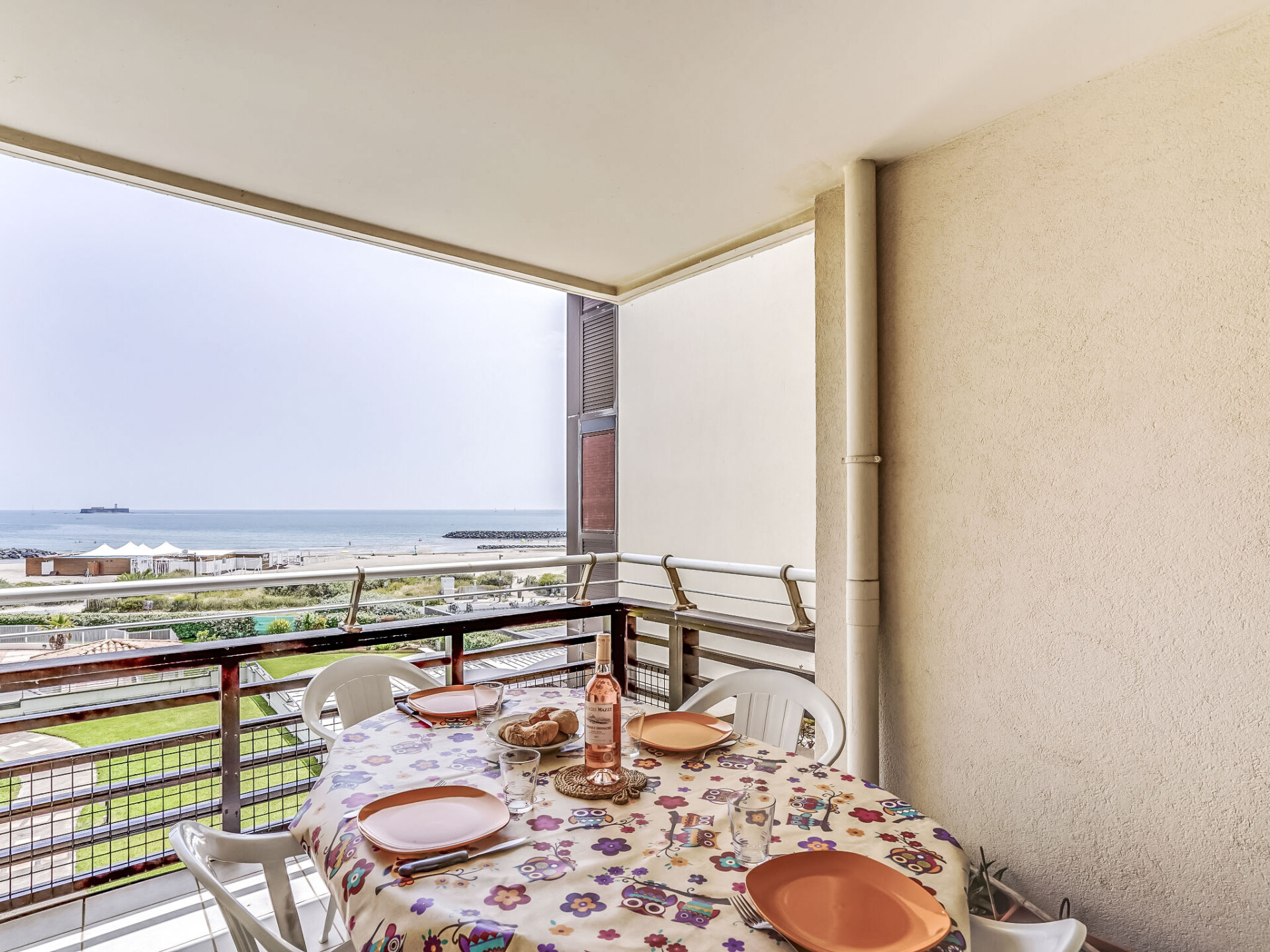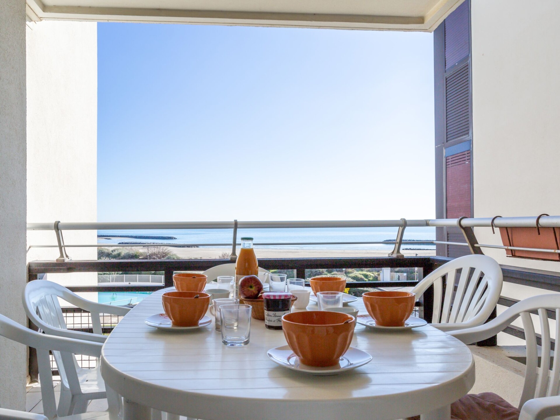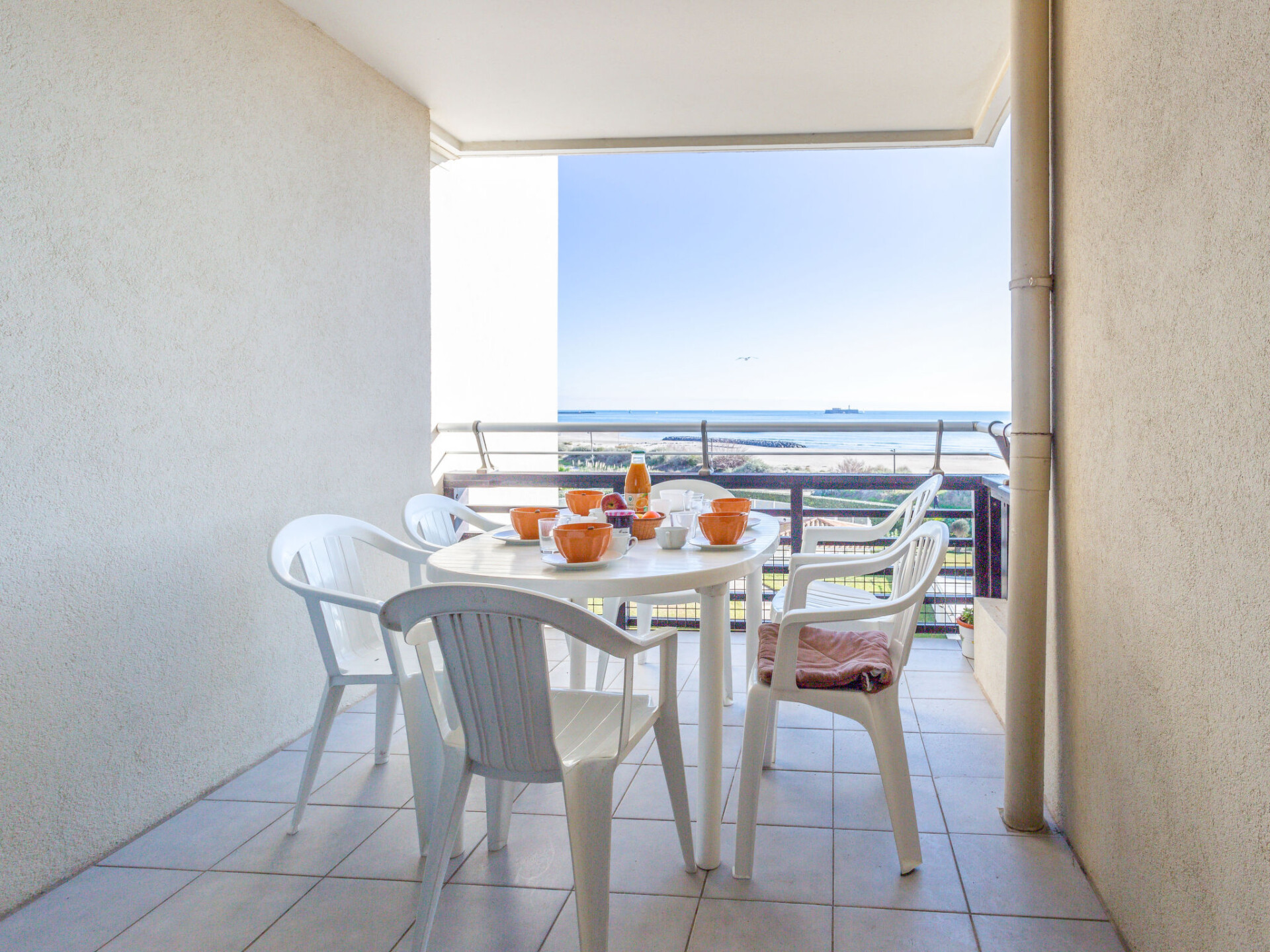 Residentie "Le Sunset/Cap Sud". In de wijk Rochelongue, 100 m van zee, 100 m van het strand. Voor medegebruik: tuin (omheind), openluchtzwembad (12 x 6 m, 40 - 175 cm diepte, seizoensgebonden beschikbaarheid: 01.Mei. - 30.Sep.). Kinderspeelplaats. In het complex: lift. Openbare parkeerplaatsen 50 m in de straat. Winkel, levensmiddelenwinkel, restaurant 350 m, bakkerij 110 m, bushalte "Mail de Rochelongue" 280 m, zandstrand "Rochelongue" 230 m. Jachthaven 3 km, golfterrein (27 holes) 1.5 km, tennis 3 km, manege 1.4 km. Attracties in de buurt: Aqualand 1.7 km, Ile des Loisirs 1.9 km, Musée de l'Ephèbe 3 km, Casino 2.5 km, Luna Park 2.4 km, Accrobranche 4.7 km.