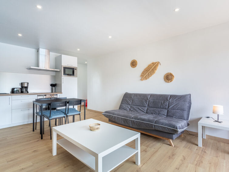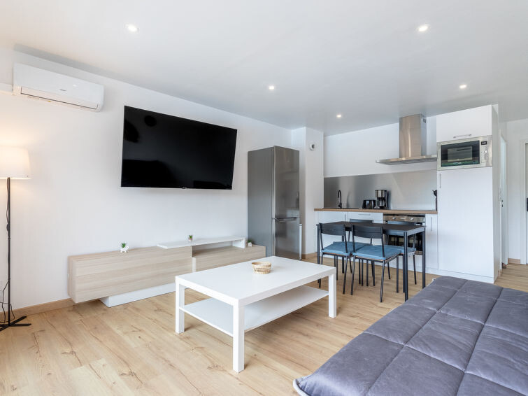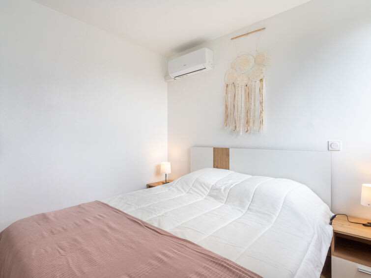 Appartement 2-kamers 37 m2 op de 3e verdieping. Ruim en licht, volledig gerenoveerd in 2024, modern en gezellig ingericht: woon-/eetkamer met 1 2-pers divanbed (140 cm, lengte 190 cm), TV (Flatscreen TV). Uitgang naar het terras. 1 kamer met 1 2-pers bed (160 cm, lengte 200 cm). Open keuken (oven, 3 inductiekookplaten, broodrooster, waterkoker, magnetron, diepvriezer, elektrische koffiemachine). Douche, aparte WC. Elektrische verwarming, air-conditioning. Terras 7 m2. Terrasmeubelen. Uitzicht op het zwembad. Ter beschikking: wasmachine, haardroger. Internet (Internet (WiFi), extra). TV alleen FR. Rookmelders. Aanbod door een particulier volgens art. 155, IV van CGI.