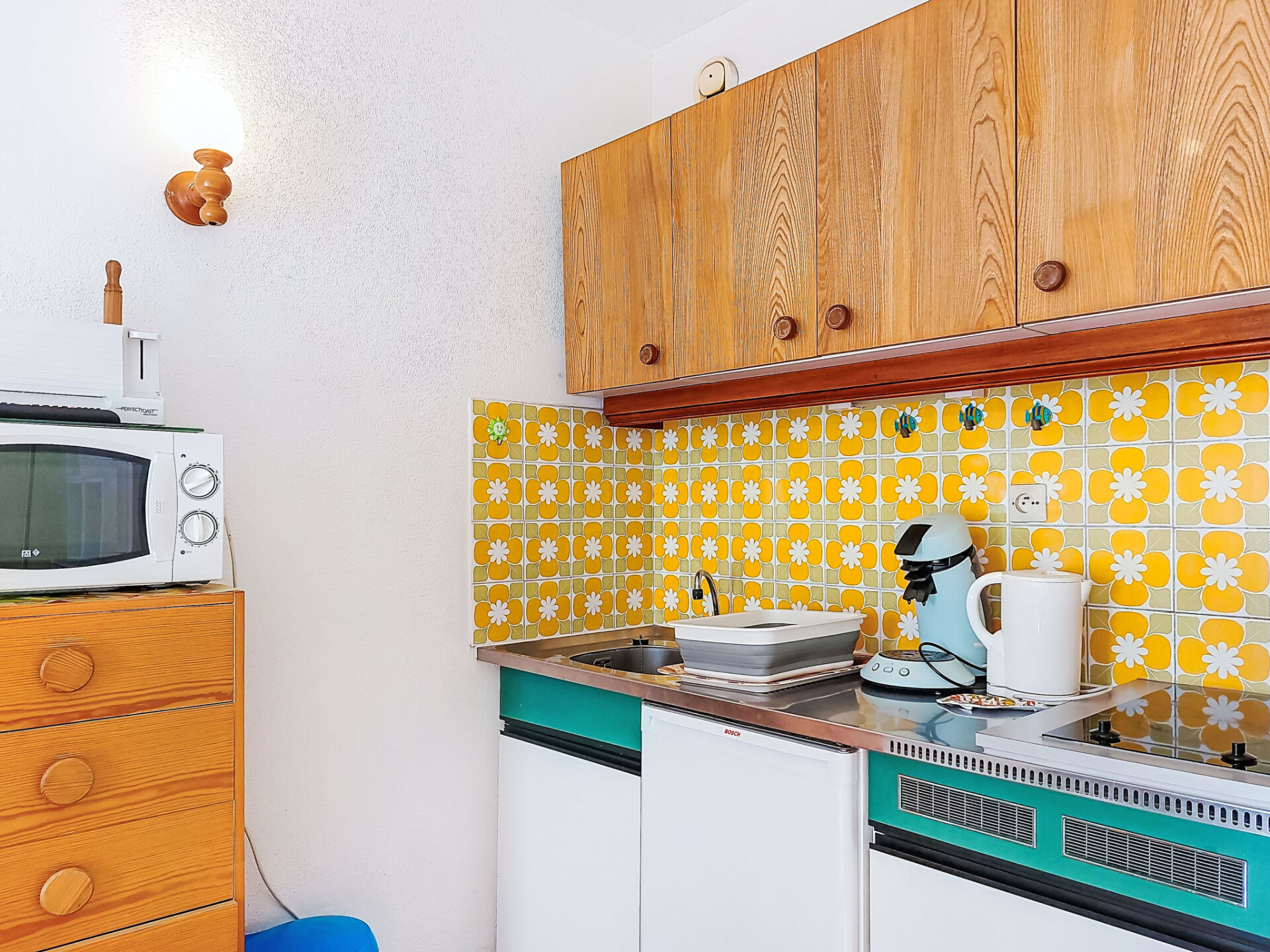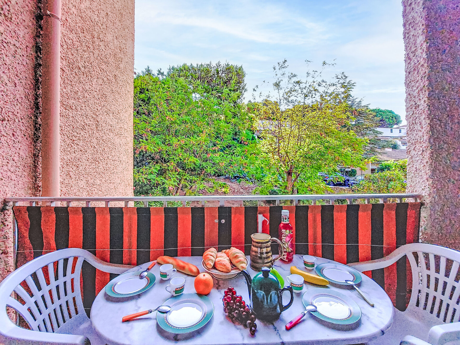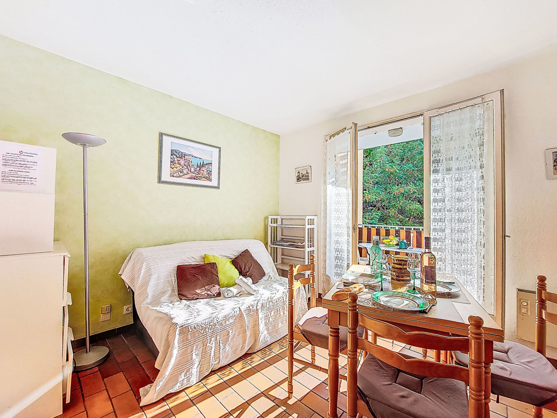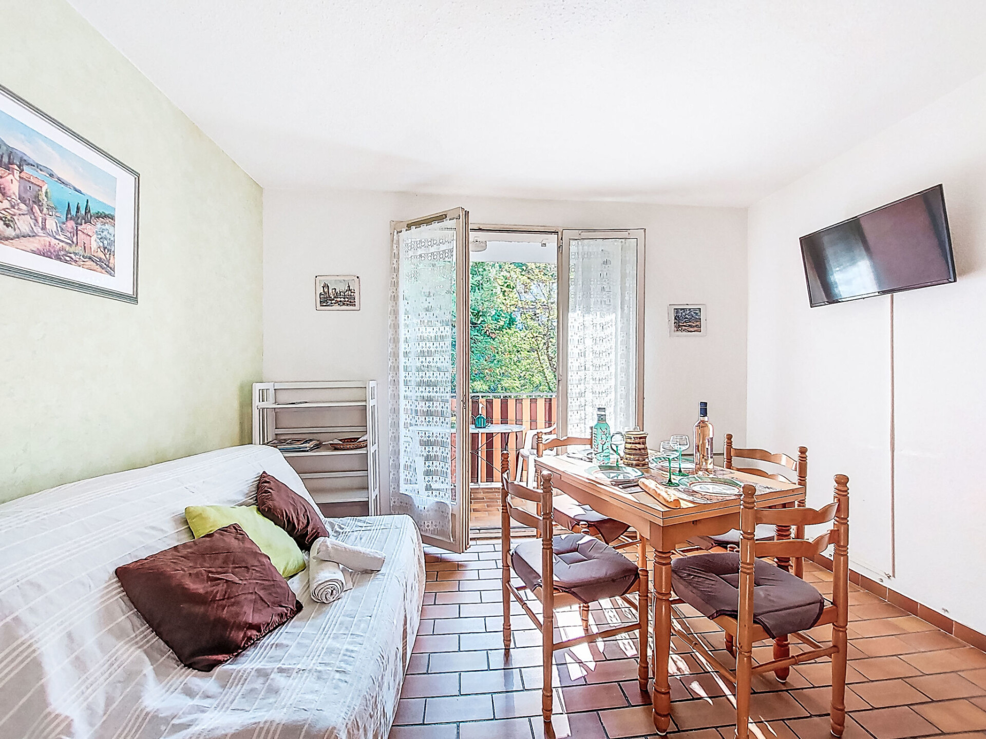 Appartement 1-kamer 22 m2 op de 1e verdieping. Woon-/eetkamer met 1 2-pers divanbed (140 cm, lengte 190 cm), TV. Uitgang naar het terras. Hal, zonder ramen met 1 x 2 stapelbedden (80 cm, lengte 190 cm). Kookhoek (2 keramische glas kookplaten, broodrooster, waterkoker, magnetron, elektrische koffiemachine, pads voor de koffiemachine (Senséo) extra). Douche/WC. Elektrische verwarming. Terras 5 m2, overdekt, op het oosten gelegen. Terrasmeubelen. Uitzicht op de tuin. Ter beschikking: Internet (Internet (WiFi), extra). Koelkast zonder vriesvak. Maximaal 1 huisdier/hond toegestaan. TV alleen FR. Rookmelders. Het appartement is geschikt voor maximum 4 volwassenen en een baby. 83112 000278 6H