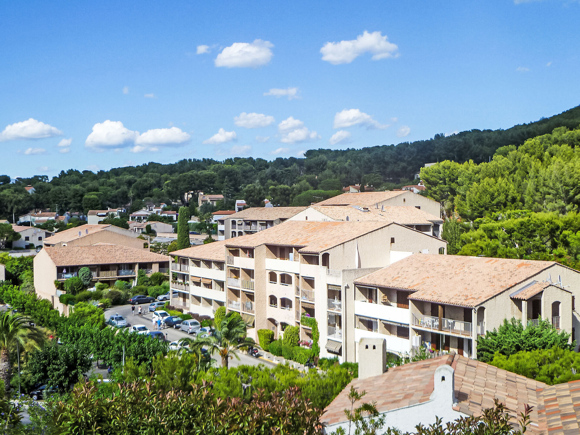 Residentie "Les Aigues Marines", van 3 verdiepingen. In de plaats, 2 km van het centrum van Saint Cyr sur Mer, verhoogde ligging in een woonwijk, 600 m van zee, 600 m van het strand, aan een weg, te midden van groen. Parkeerplaats (beperkt aantal), openbare parkeerplaatsen extra. Levensmiddelenwinkel 200 m, restaurant 500 m, bushalte "Le Viguier" 2.3 km, treinstation "Saint Cyr les Lecques-La Cadière" 3.1 km, zandstrand "La Madrague", stenenstrand 600 m. Jachthaven 500 m, golfterrein (18 holes) 4 km. Attracties in de buurt: Aqualand 3 km, Sentier du Littoral 1 km. Wandelgebied Sainte Baume, Sainte Victoire, Calanques Port-Cros, Porquerolles, Ile verte, Embiez, Figuerolles, Cassis. De sleuteloverdracht vindt plaats bij het agentschap INTERHOME in St Cyr La Madrague. De afgebeelde foto is slechts een voorbeeld. Vergelijkbare accommodaties kunnen worden geboekt.