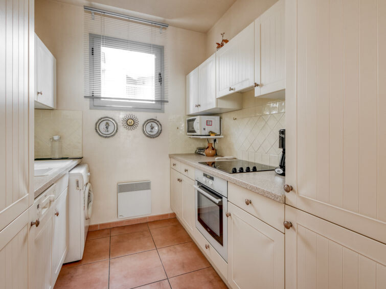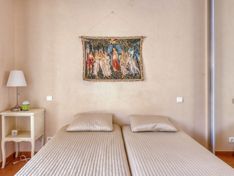 Appartement 2-kamers 45 m2, op de begane grond. Doelmatig en comfortabel ingericht: woon-/eetkamer met 1 2-pers divanbed (140 cm, lengte 190 cm), TV (Flatscreen TV). Uitgang naar het terras. 1 kamer met 2 bedden (80 cm, lengte 190 cm), TV (Flatscreen TV). Uitgang naar het terras. Keuken (oven, 4 keramische glas kookplaten, magnetron, elektrische koffiemachine). Badkamer, aparte WC. Elektrische verwarming. Groot terras 45 m2. Terrasmeubelen. Ter beschikking: wasmachine. Internet (Internet (WiFi), extra). Garage, hoogte 180 cm. 06004196270CM