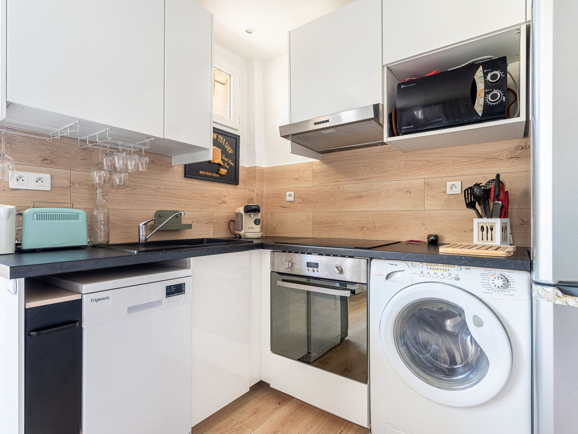 Appartement 2-kamers 33 m2, op verhoogde begane grond. Volledig gerenoveerd in 2024, mooi ingericht: woon-/eetkamer met 1 2-pers divanbed (160 cm, lengte 200 cm), TV (Flatscreen TV). Uitgang naar het balkon. 1 kamer met 1 2-pers bed (160 cm, lengte 200 cm). Kookhoek (afwasmachine, 1 inductiekookplaten, 4 kookpitten (vlammen), broodrooster, waterkoker, magnetron, elektrische koffiemachine, pads voor de koffiemachine (Tassimo) extra). Douche/WC. Elektrische verwarming, air-conditioning. Balkon 5 m2, op het zuiden gelegen en op het westen gelegen. Balkonmeubilair. Ter beschikking: wasmachine. Internet (WiFi, gratis). Parkeerplaats nr. 3 (1 Auto). TV alleen FR. Rookmelders, geen lift. Aanbod door een particulier volgens art. 155, IV van CGI.