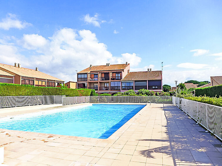 Residentie "Les Amandines". In de plaats, 1 km van het centrum, 2 km van zee. Voor medegebruik: openluchtzwembad (9 x 19 m, 100 - 200 cm diepte, seizoensgebonden beschikbaarheid: 01.Jun. - 30.Sep.). Parkeerplaats. Winkel 100 m, supermarkt 500 m, restaurant, bar 100 m, bushalte 50 m, zandstrand "du Grazel", strandbad 200 m. Tennis 800 m. Attracties in de buurt: Réserve Africaine de Sigean 29 km. De sleuteloverdracht vindt plaats bij het agentschap Interhome in Narbonne Plage, 10 km. De afgebeelde foto is slechts een voorbeeld.