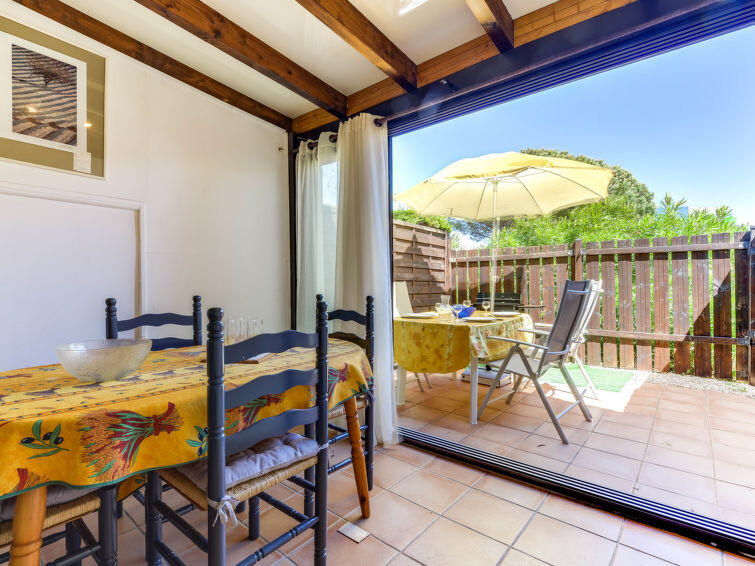 Huis in een rij 1-kamer 27 m2 op 2 verdiepingen. Doelmatig ingericht: woon-/eetkamer met veranda met 1 2-pers divanbed (1 x 140 cm, lengte 190 cm), TV (Flatscreen TV). Uitgang naar het terras. Kookhoek (4-pits kookplaat, oven, magnetron). Bad/WC. Elektrische verwarming, air-conditioning. Bovenverdieping: galerij met dakraam met 1 2-pers bed (1 x 140 cm, lengte 190 cm). Terras 10 m2, op het oosten gelegen. Terrasmeubelen, barbecue (verrijdbaar). Ter beschikking: wasmachine. Internet (WiFi, gratis). Parkeerplaats nr. 325. Woning aan de straatzijde. Maximaal 1 huisdier/hond toegestaan. Rookmelders. In plaats van een afgesloten slaapkamer bevinden sommige slaapgedeeltes zich in een open ruimte (galerij, nis, etc.). Aanbod door een particulier volgens art. 155, IV van CGI.