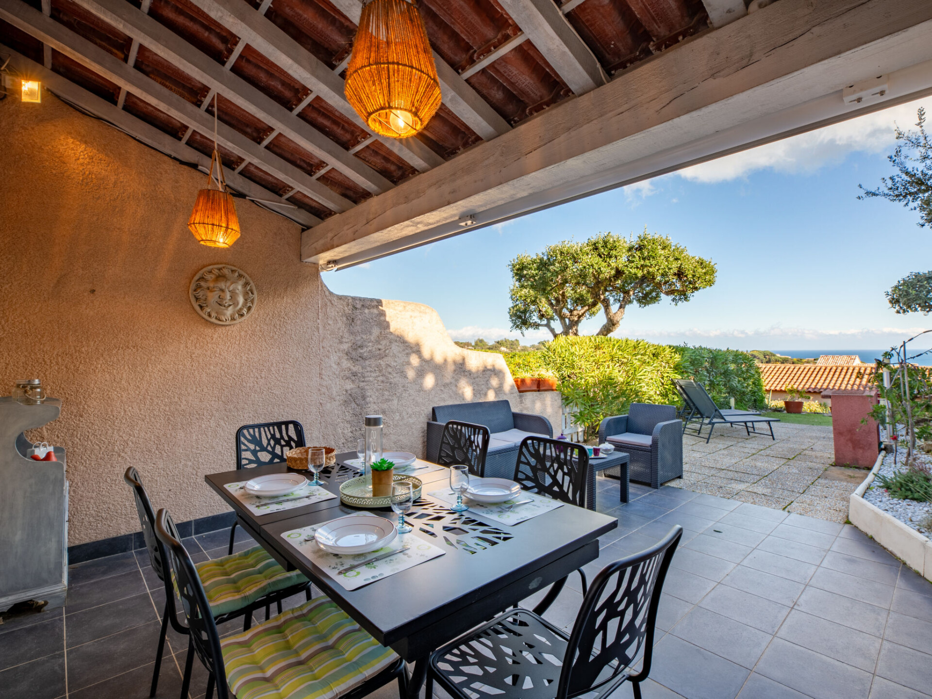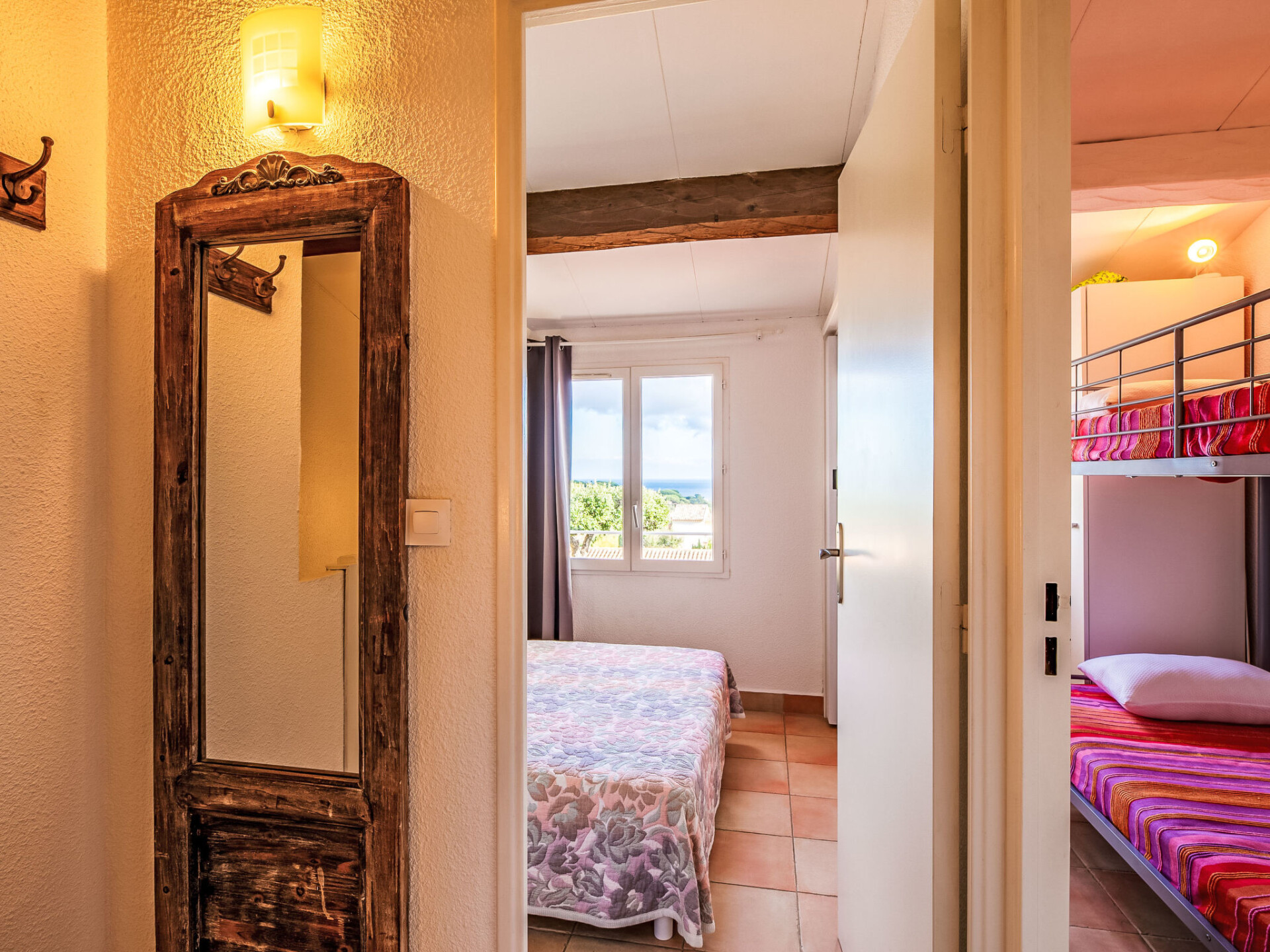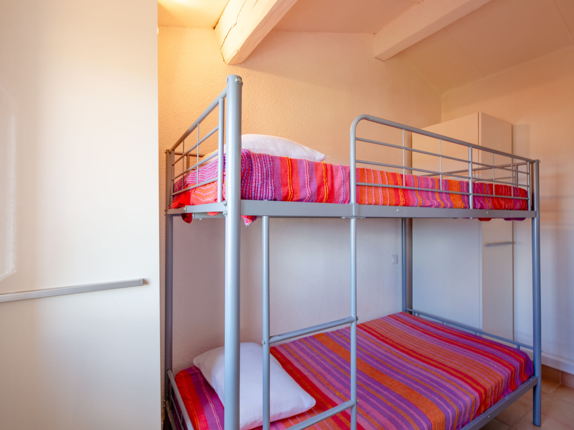 Huis in een rij 2-kamers 36 m2, op het zuiden gelegen. Gezellig ingericht: woon-/eetkamer met 1 2-pers divanbed (1 x 130 cm, lengte 190 cm), TV (Flatscreen TV), elektrische kachel. Uitgang naar het terras, naar de zitplaats in de tuin. Open keuken (mini-oven, afwasmachine, 2 keramische glas kookplaten, broodrooster, waterkoker, diepvriezer, elektrische koffiemachine). Bovenverdieping: (steile trap), 1 kleine kamer met 1 2-pers bed (1 x 140 cm, lengte 190 cm). Kleine cabine 7 m2 met 1 x 2 stapelbedden (90 cm, lengte 190 cm). Douche/WC. Elektrische verwarming, air-conditioning. Terras 45 m2. Terrasmeubelen. Uitzicht op zee. Ter beschikking: wasmachine, strijkijzer, haardroger. Internet (Internet (WiFi), gratis). Parkeerplaats nr. 45. Niet rokers woning. Rookmelders. Aanbod door een particulier volgens art. 155, IV van CGI. 83115005401DP