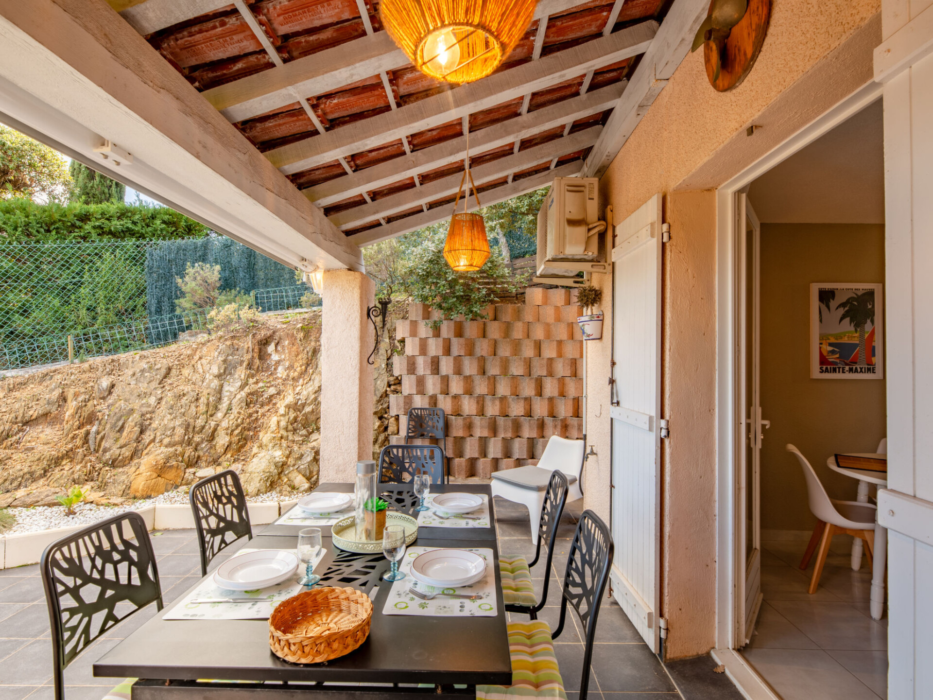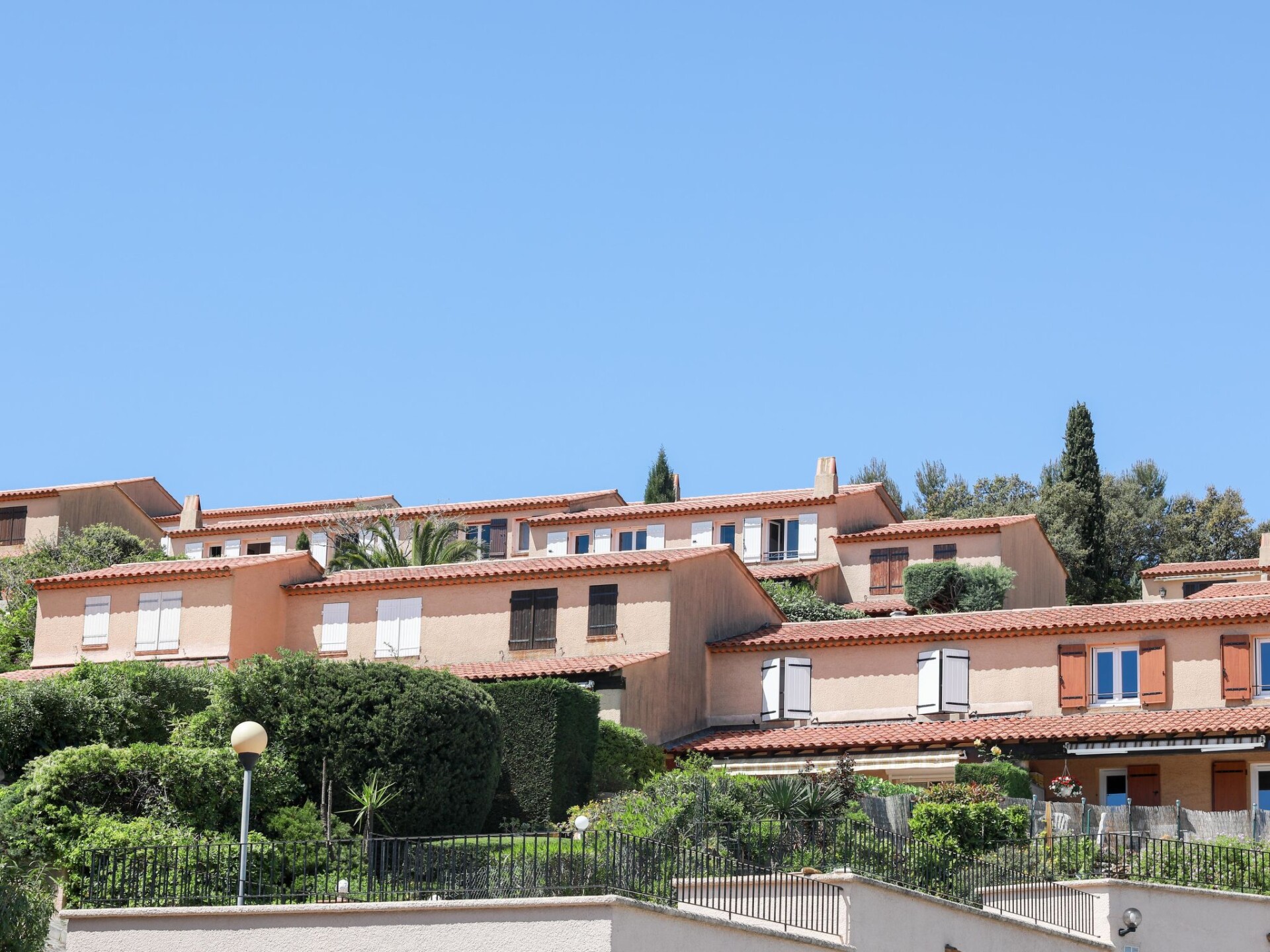 Residentie "Les Bastides de Guerrevieille". Buiten de plaats, 3.5 km van het centrum van Sainte Maxime, rustige, verhoogde ligging op een heuvel, 1.6 km van zee, 1.8 km van het strand. Voor medegebruik: openluchtzwembad (15 x 9 m, 100 - 200 cm diepte, seizoensgebonden beschikbaarheid: 01.Jun. - 30.Sep.). Winkel 3 km, supermarkt 3 km, winkelcentrum 3 km, restaurant 2 km, bakkerij 2.5 km, bushalte 1.5 km, treinstation "Saint-Raphael TGV" 20 km, zandstrand "Plage de la Croisette" 2 km, thermaalbad "Thalasso Les Issambres" 8 km. Jachthaven 4 km, golfterrein (18 holes) 5 km, tennis 2 km. Attracties in de buurt: Aqualand waterpark 7 km, Azur park attractions 12 km, Saint-Tropez/Ramatuelle 14 km, Port-Grimaud 7 km, Gorges du Verdon 95 km, Navette / shuttle boat St-Tropez 15min 4 km. Wandelgebied Massif des Maures 5 km, Massif de l'Esterel 38 km. Auto noodzakelijk. Gesloten residentie met een elektrische deur. De sleuteloverdracht vindt plaats bij het agentschap Interhome in Sainte-Maxime. Vliegveld 70 km van het huis. Vergelijkbare accommodaties kunnen worden geboekt.