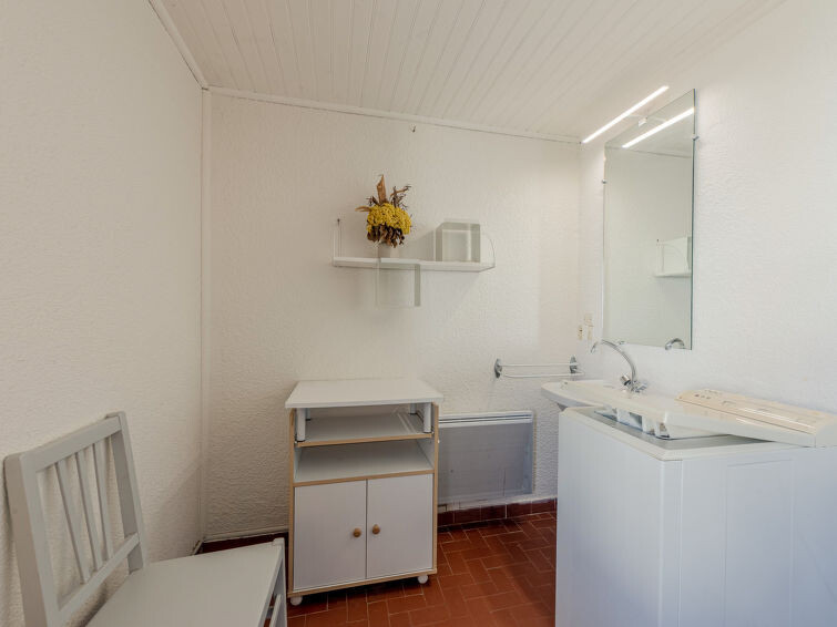 Residentie "Les Brigantins". Aan de rand van de plaats, 3 km van zee, 50 m van het meer, 3 km van het strand, aan een doodlopende weg. Voor medegebruik: Natuurlijke vijver, openbare parkeerplaatsen 80 m. Levensmiddelenwinkel 3 km, supermarkt 5 km, winkelcentrum 4 km, restaurant 2 km, bar 2 km, bakkerij 3 km, bushalte "Le Barcarès" 600 m, treinstation "La Franqui" 16 km, zandstrand 3 km, duikschool 6 km, openluchtzwembad 4 km, fKK-strand 5 km. Jachthaven 7 km, surfschool 1 km, zeilschool 3 km, tennis 3 km, midgetgolf 5 km, manege 9 km. Attracties in de buurt: Aqualand Port Leucate 7 km, Réserve Africaine de Sigean 41 km, Fort de Salses 20 km, Narbonne 55 km, Perpignan 25 km, Barcelone 215 km. Bekende meren kunnen gemakkelijk worden bereikt: Etang de Leucate ou Salses 7 km, Lac de Villeneuve de La Raho 28 km. Wandelgebied Sentier du guetteur 8 km, Station meteorologique de Opoul Perillos 25 km, Sentier du littoral Collioure 40 km. Auto noodzakelijk. Gesloten residentie met een elektrische deur. De afgebeelde foto is slechts een voorbeeld. Vergelijkbare accommodaties kunnen worden geboekt.