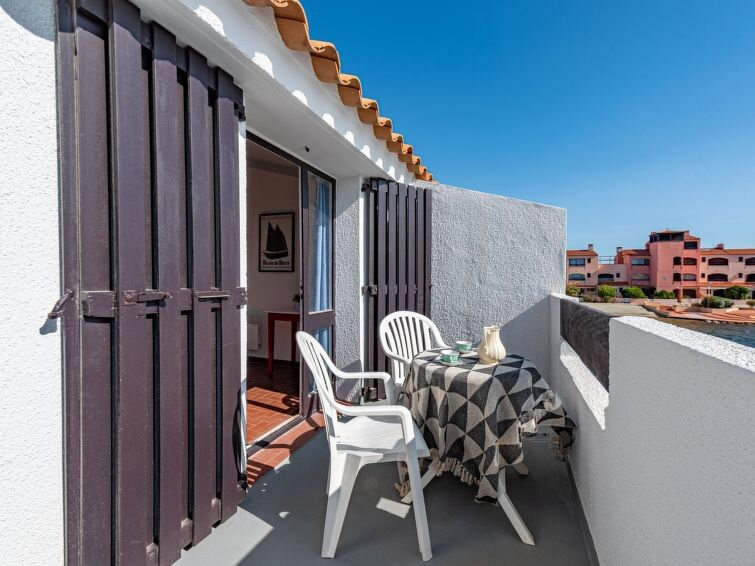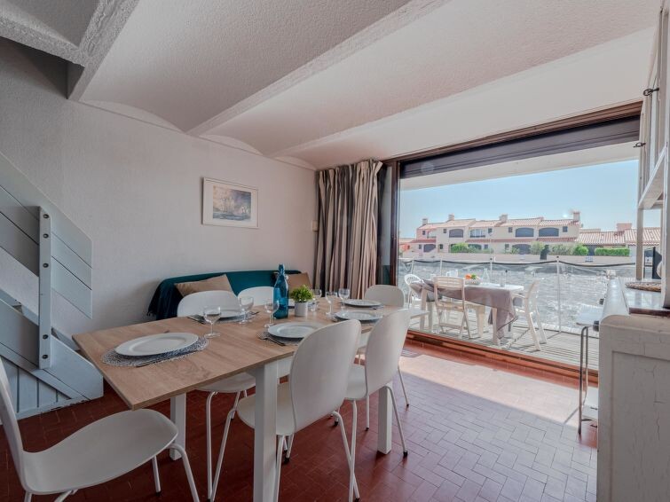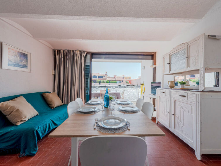 Residentie "Les Brigantins". Aan de rand van de plaats, 3 km van zee, 50 m van het meer, 3 km van het strand, aan een doodlopende weg. Voor medegebruik: Natuurlijke vijver, openbare parkeerplaatsen 80 m. Levensmiddelenwinkel 3 km, supermarkt 5 km, winkelcentrum 4 km, restaurant 2 km, bar 2 km, bakkerij 3 km, bushalte "Le Barcarès" 600 m, treinstation "La Franqui" 16 km, zandstrand 3 km, duikschool 6 km, openluchtzwembad 4 km, fKK-strand 5 km. Jachthaven 7 km, surfschool 1 km, zeilschool 3 km, tennis 3 km, midgetgolf 5 km, manege 9 km. Attracties in de buurt: Aqualand Port Leucate 7 km, Réserve Africaine de Sigean 41 km, Fort de Salses 20 km, Narbonne 55 km, Perpignan 25 km, Barcelone 215 km. Bekende meren kunnen gemakkelijk worden bereikt: Etang de Leucate ou Salses 7 km, Lac de Villeneuve de La Raho 28 km. Wandelgebied Sentier du guetteur 8 km, Station meteorologique de Opoul Perillos 25 km, Sentier du littoral Collioure 40 km. Auto noodzakelijk. Gesloten residentie met een elektrische deur. De afgebeelde foto is slechts een voorbeeld. Vergelijkbare accommodaties kunnen worden geboekt.