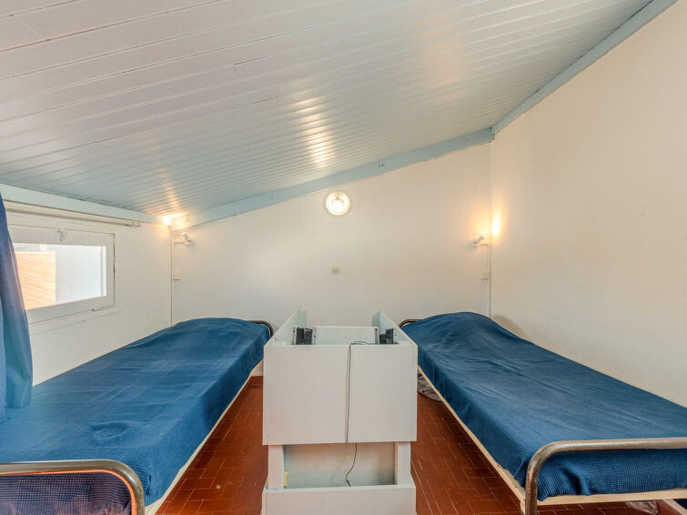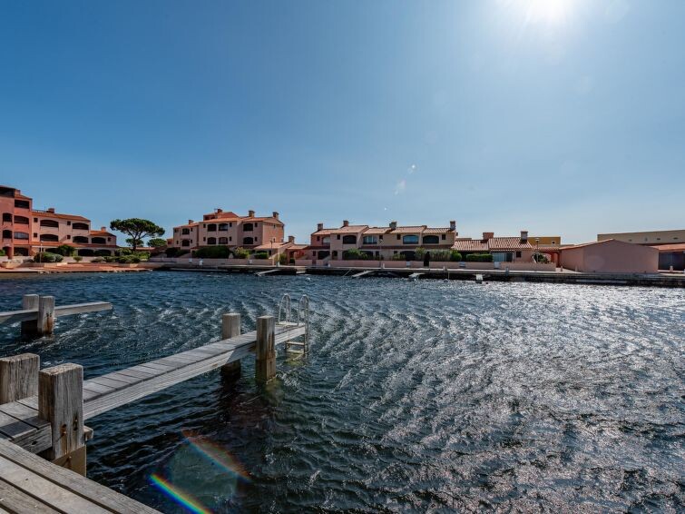 Huis in een rij 3-kamers 60 m2 op 3 verdiepingen. Modern ingericht: woon-/eetkamer met 1 2-pers divanbed en TV-aansluiting. Open keuken (4-pits kookplaat, oven, afwasmachine, magnetron, diepvriezer). Geen verwarmingsmogelijkheid. Bovenverdieping: 1 kamer met 1 2-pers bed (1 x 140 cm). Uitgang naar het balkon. Zitbad, aparte WC. 2e Verdieping: (ladder), 1 kamer met 2 bedden (80 cm, lengte 190 cm), douche. Terras 12 m2, op het oosten gelegen. Terrasmeubelen. Uitzicht op het kanaal. Ter beschikking: wasmachine. Internet (Internet (WiFi), extra). Privé aanlegsteiger voor een boot. Rookmelders. Deze aanlegsteiger ligt voor het huis, met toegang via het terras. Gedurende het seizoen, externe parkeerplaats op 80m. Buiten het seizoen, interne parkeerplaats, dichtbij het huis. Rustige ligging.