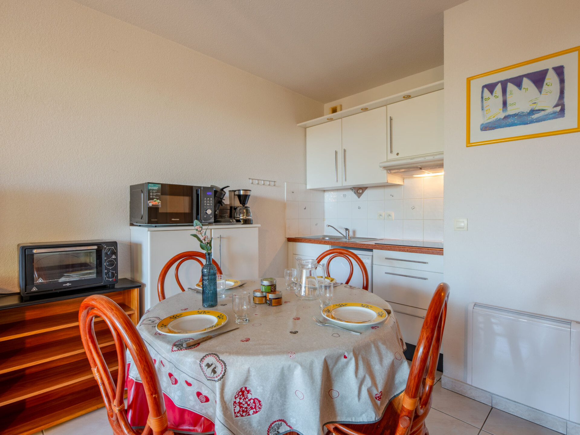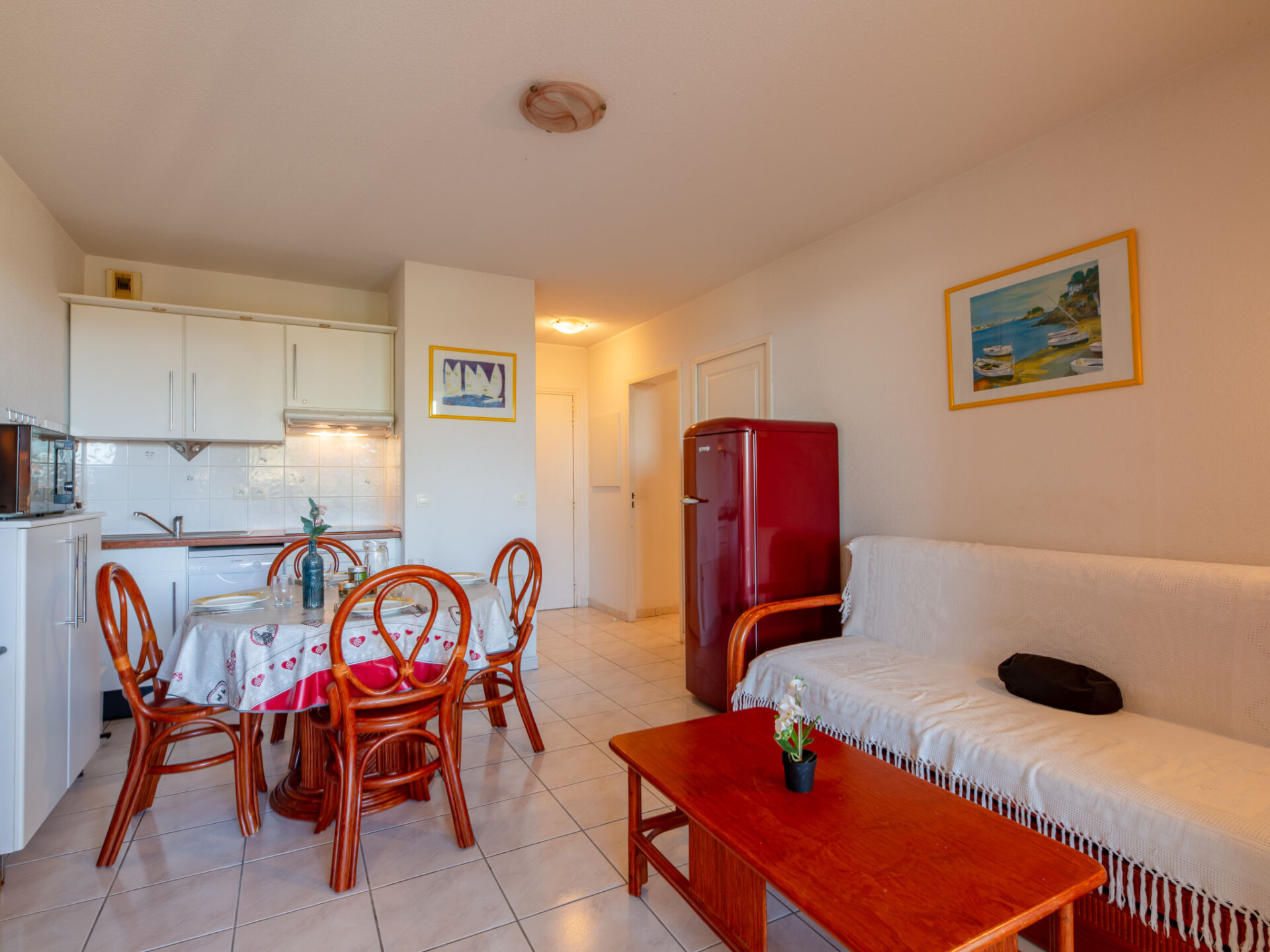 Appartement 2-kamers 34 m2 op de 3e verdieping. Woon-/eetkamer met 1 uitschuifbaar bed (2 pers. 2 x 80 cm, lengte 190 cm), TV (Flatscreen TV), air-conditioning. Uitgang naar het terras. 1 kamer met 1 uitschuifbaar bed (2 pers. 2 x 80 cm, lengte 190 cm), air-conditioning. Uitgang naar het terras. Open keuken (mini-oven, afwasmachine, 3 inductiekookplaten, broodrooster, waterkoker, magnetron, elektrische koffiemachine, pads voor de koffiemachine (SENSEO) extra). Badkamer, aparte WC. Elektrische verwarming. Terras 15 m2 gedeeltelijk overdekt, op het oosten gelegen. Terrasmeubelen. Zijdelings uitzicht op zee. Ter beschikking: wasmachine, strijkijzer, haardroger. Internet (WiFi, extra). Parkeerplaats nr. B34 (overdekt). 1 klein huisdier/hond toegestaan. TV alleen FR. Rookmelders. Aanbod door een particulier volgens art. 155, IV van CGI.