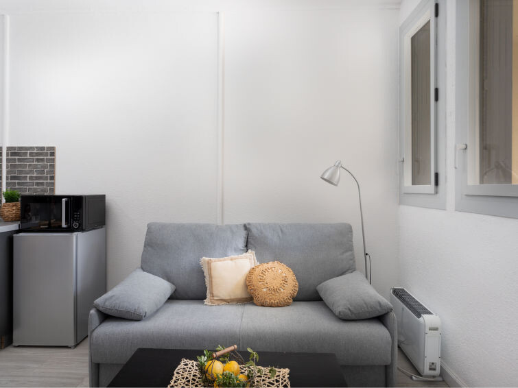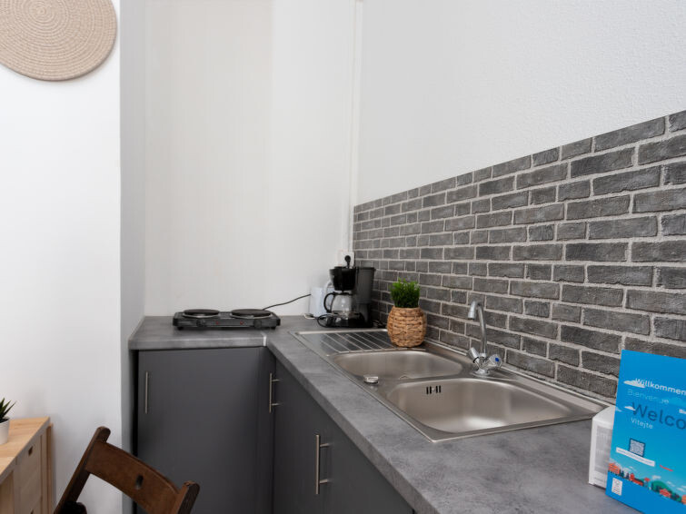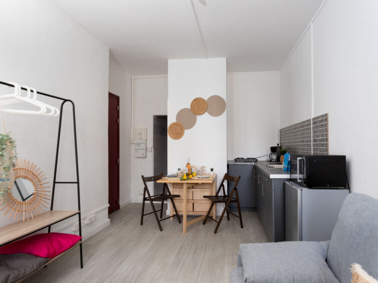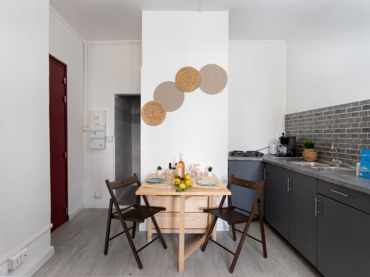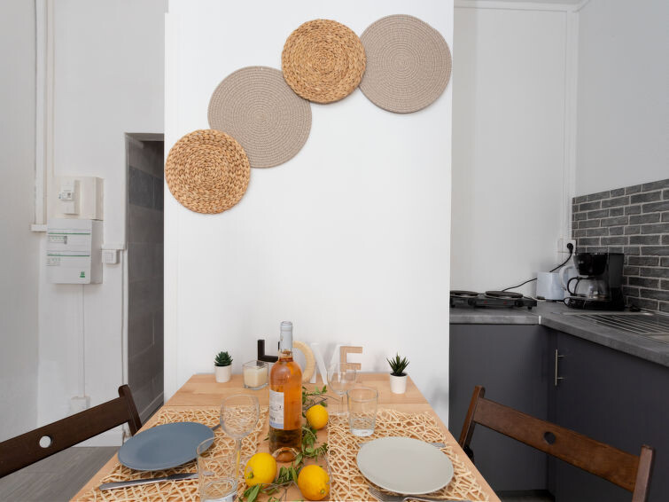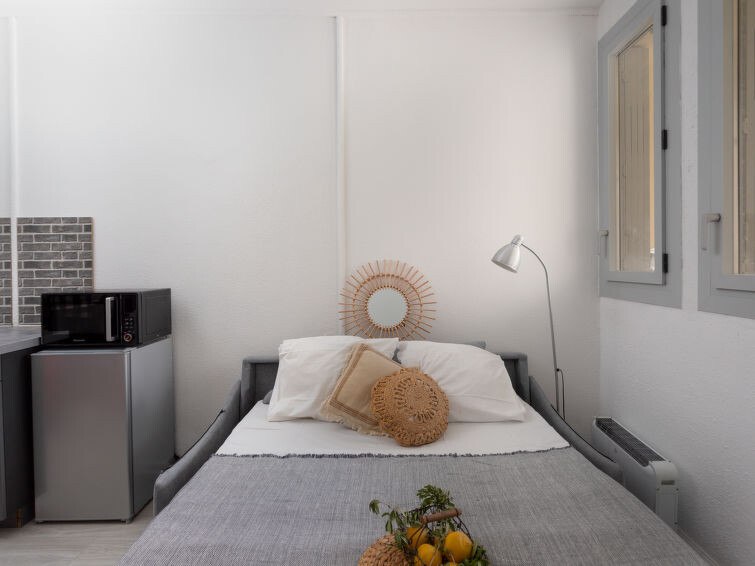 "les Cheops", studio 1-kamer 19 m2 op de 1e verdieping. Woon-/eetkamer met 1 2-pers divanbed (140 cm, lengte 190 cm), TV (Flatscreen TV). Kookhoek (2 keramische glas kookplaten, broodrooster, waterkoker, magnetron, elektrische koffiemachine). Douche/WC. Ter beschikking: Internet (Internet (WiFi), extra). Woning aan de parkeer zijde. Geen parkeerplaats. 1 klein huisdier/hond toegestaan. Rookmelders.