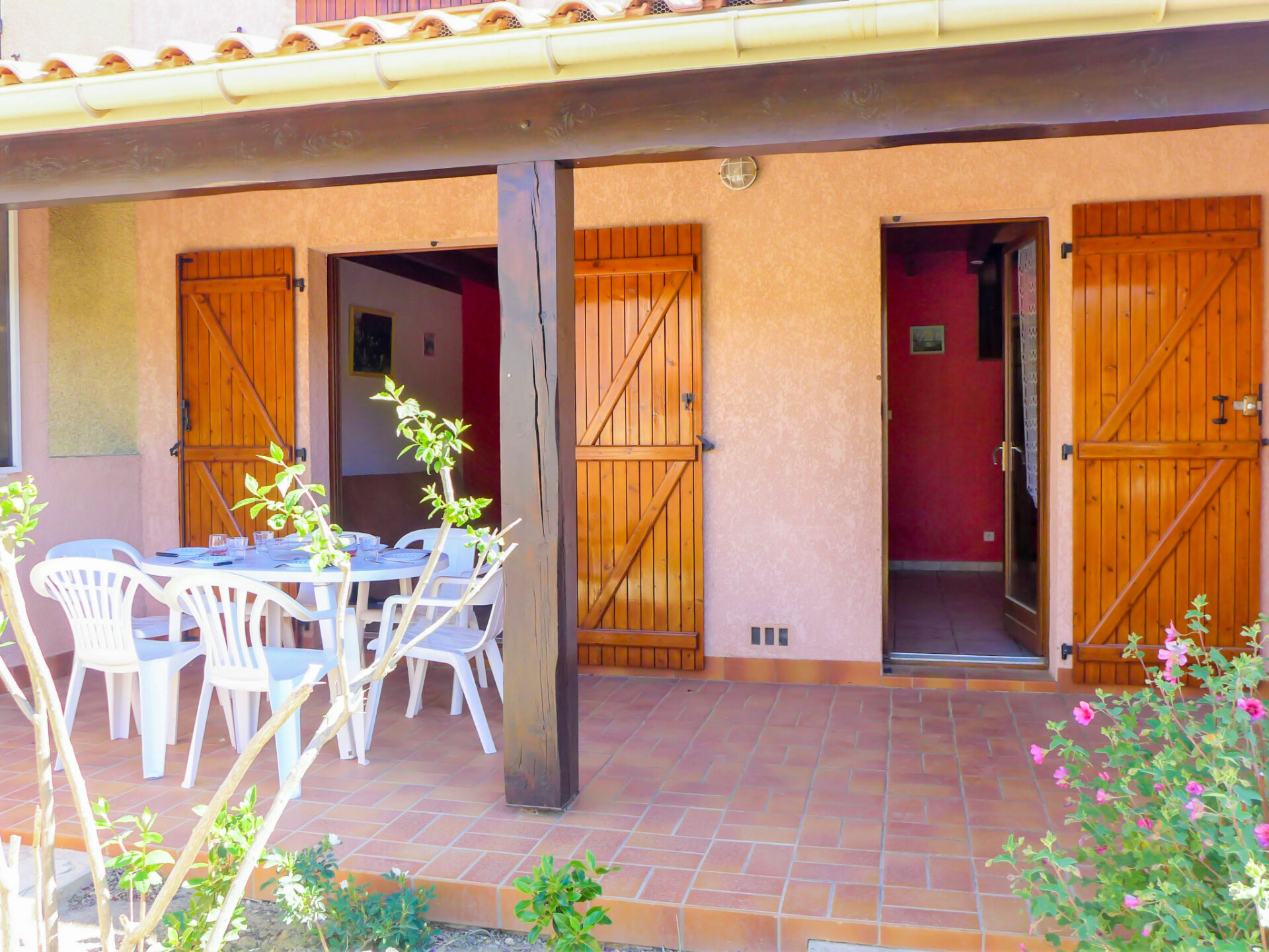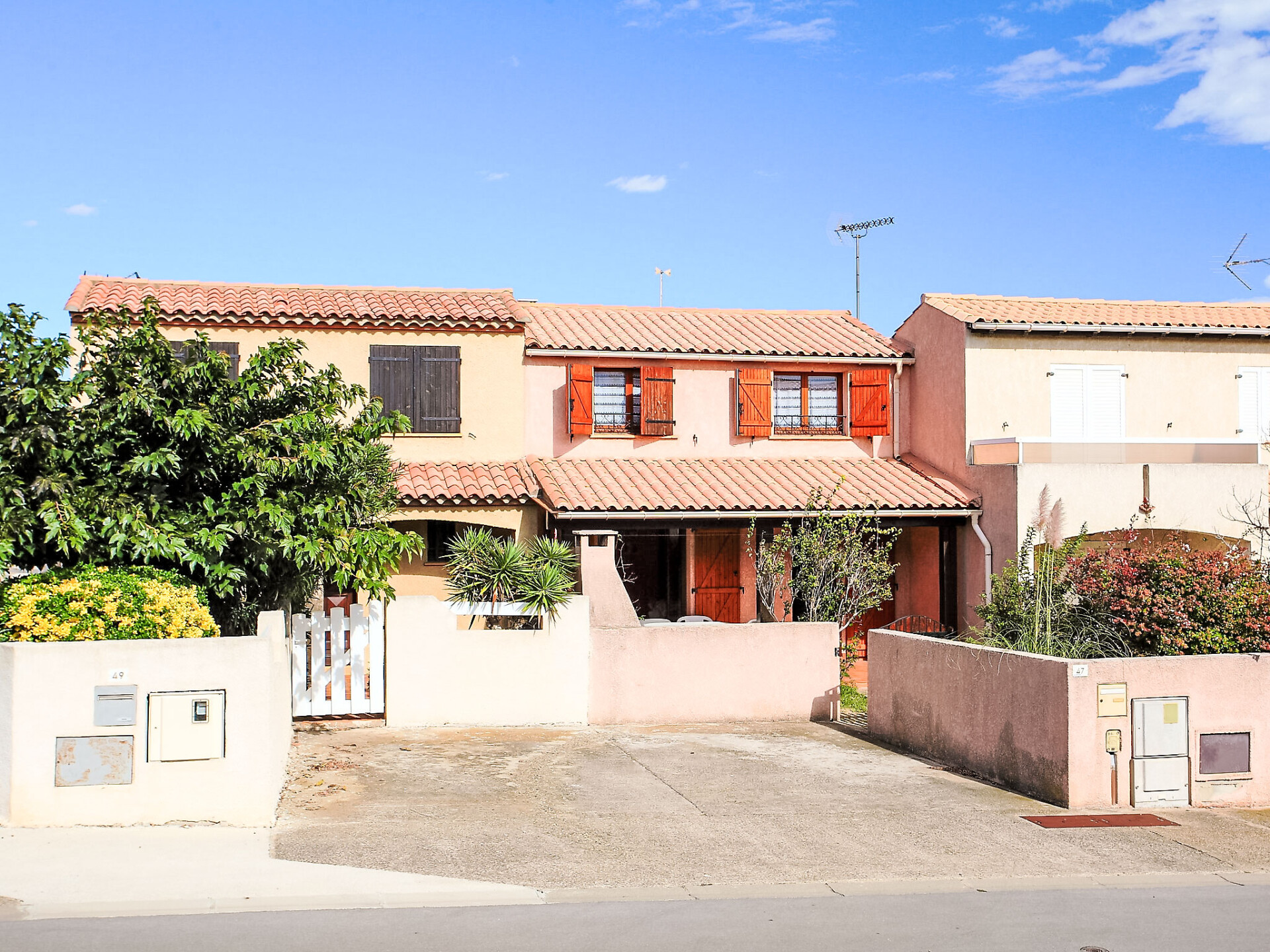 Residentie "Les Colombes". Boven Saint Pierre La Mer, 700 m van het centrum, 800 m van zee. Winkel 800 m, levensmiddelenwinkel 100 m, bushalte 300 m, duikschool 2 km. Jachthaven 2 km, manege 3.5 km. Attracties in de buurt: Réserve Africaine de Sigean 36 km, Cité de Carcassonne 78 km, Espace balnéoludique de Gruissan 11 km. De sleuteloverdracht vindt plaats bij het agentschap Interhome in Narbonne Plage, 3 km.